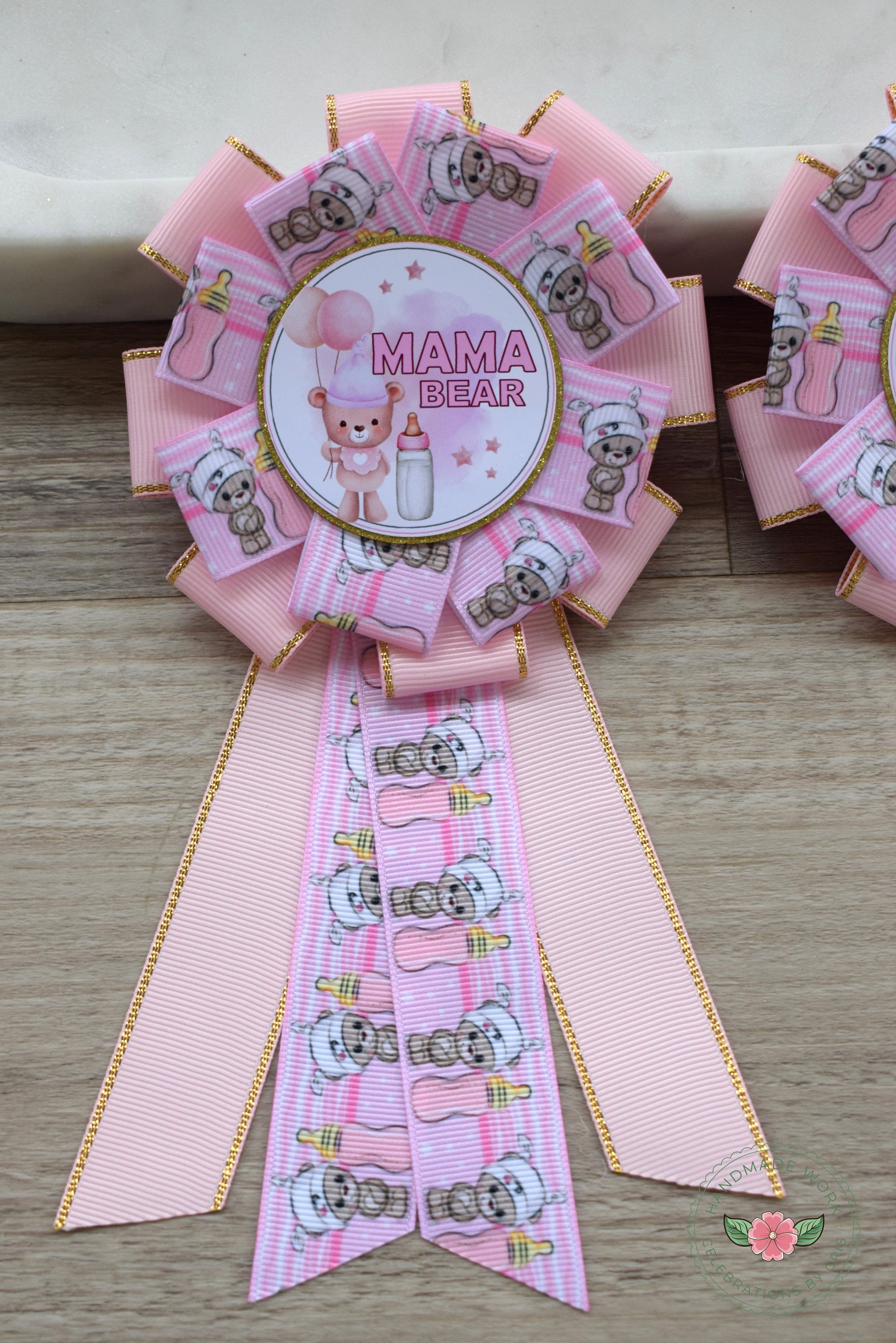 Pink Teddy Bear Baby Shower, Girl Bear Mommy To Be Ribbon Pin, Teddy Bear Daddy To Be Pin