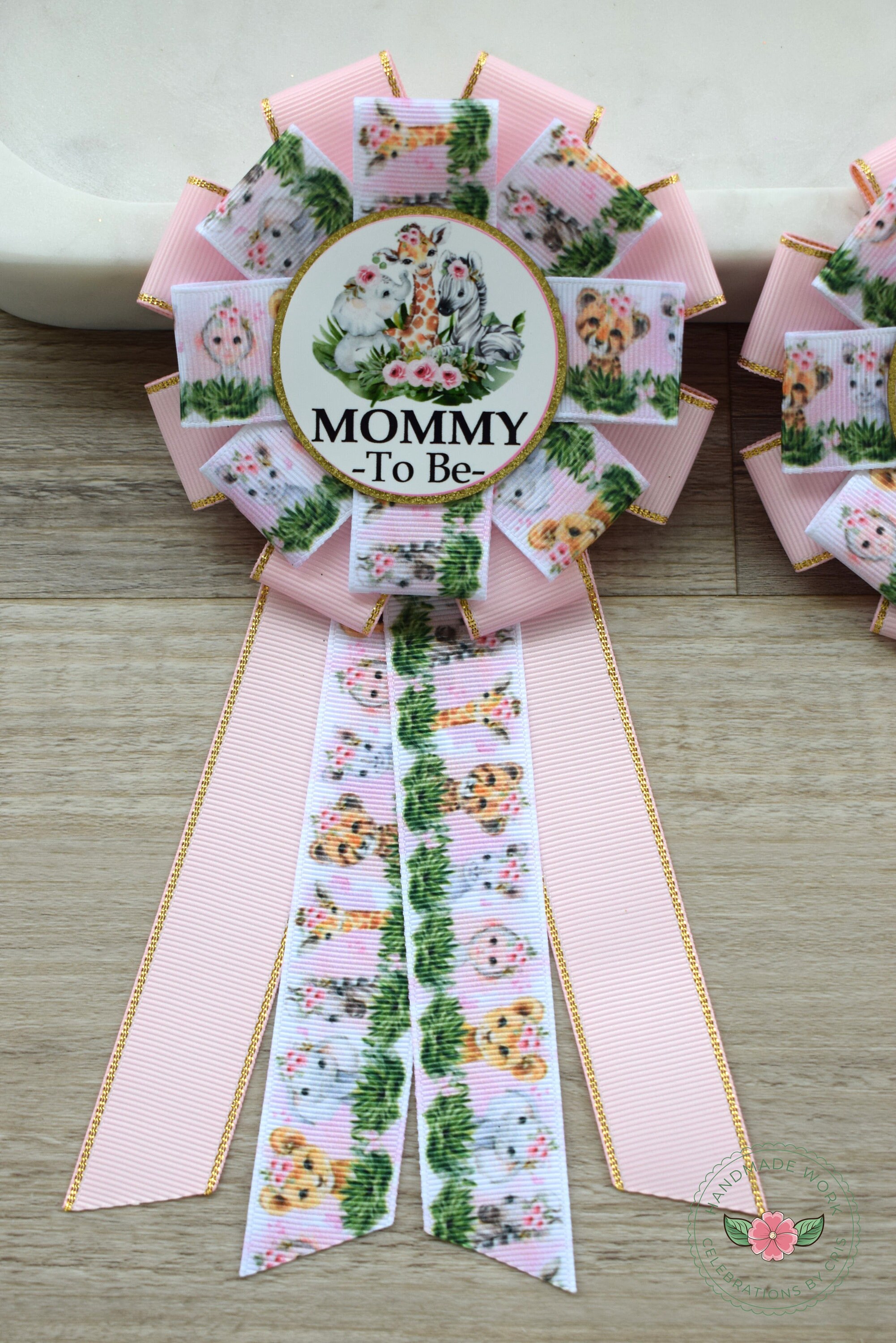 Pink Girl Safari Baby Shower, Safari Animal Floral Mommy To Be Ribbon Pin, Animal Daddy To Be Badge Pin
