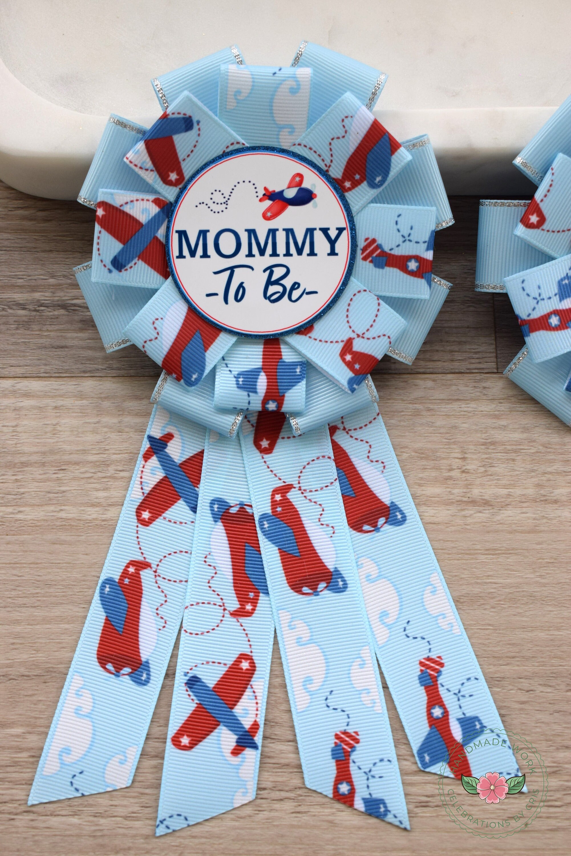 Airplane Baby Shower, Boy Airplane Mommy To Be Ribbon Pin, Up Up and Away Daddy To Be Pin, Fly Airplane Baby Shower