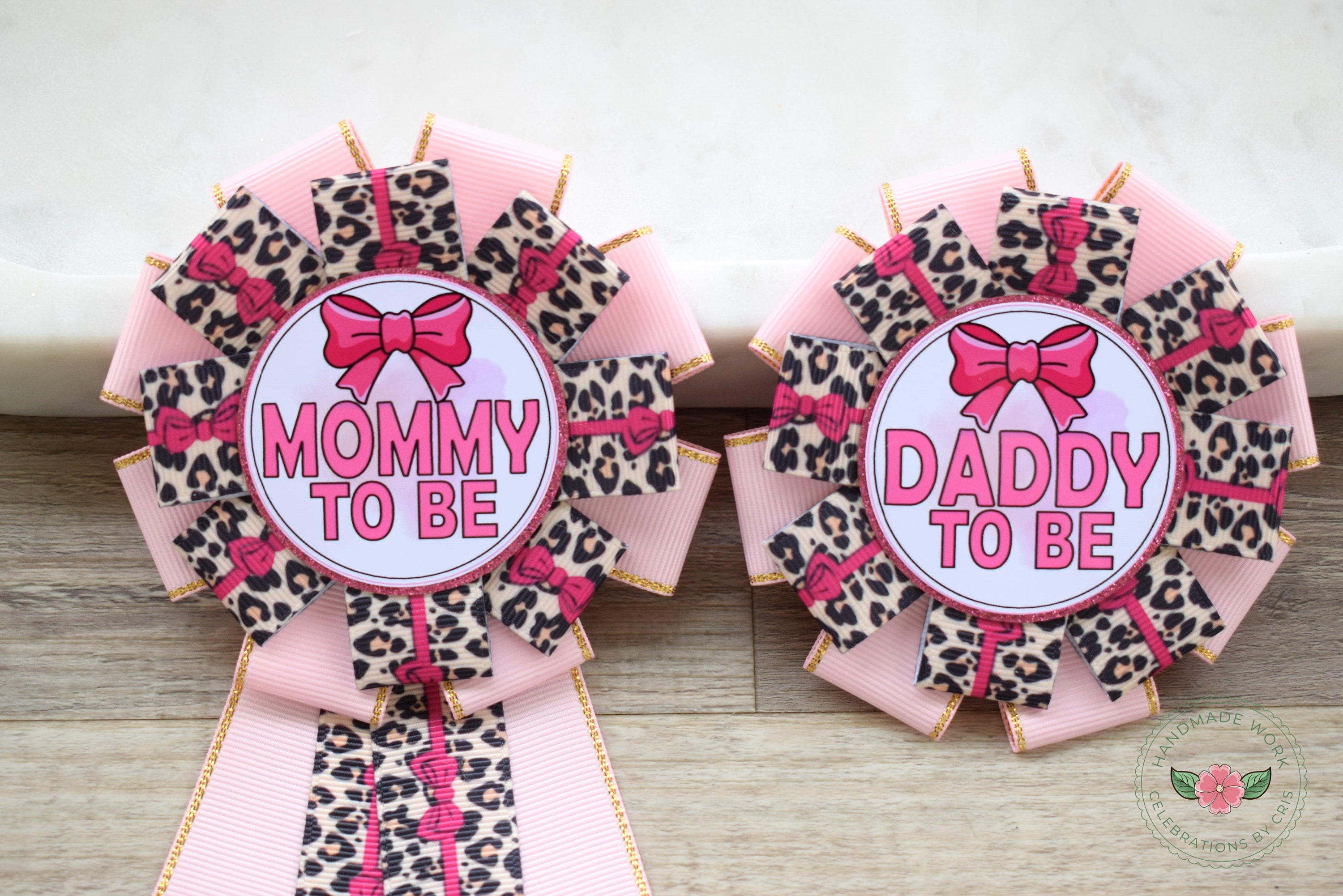Cheetah Baby Shower, Hot Pink Mommy To Be Corsage Pin, Daddy To Be Badge Pin, Baby Shower Pins