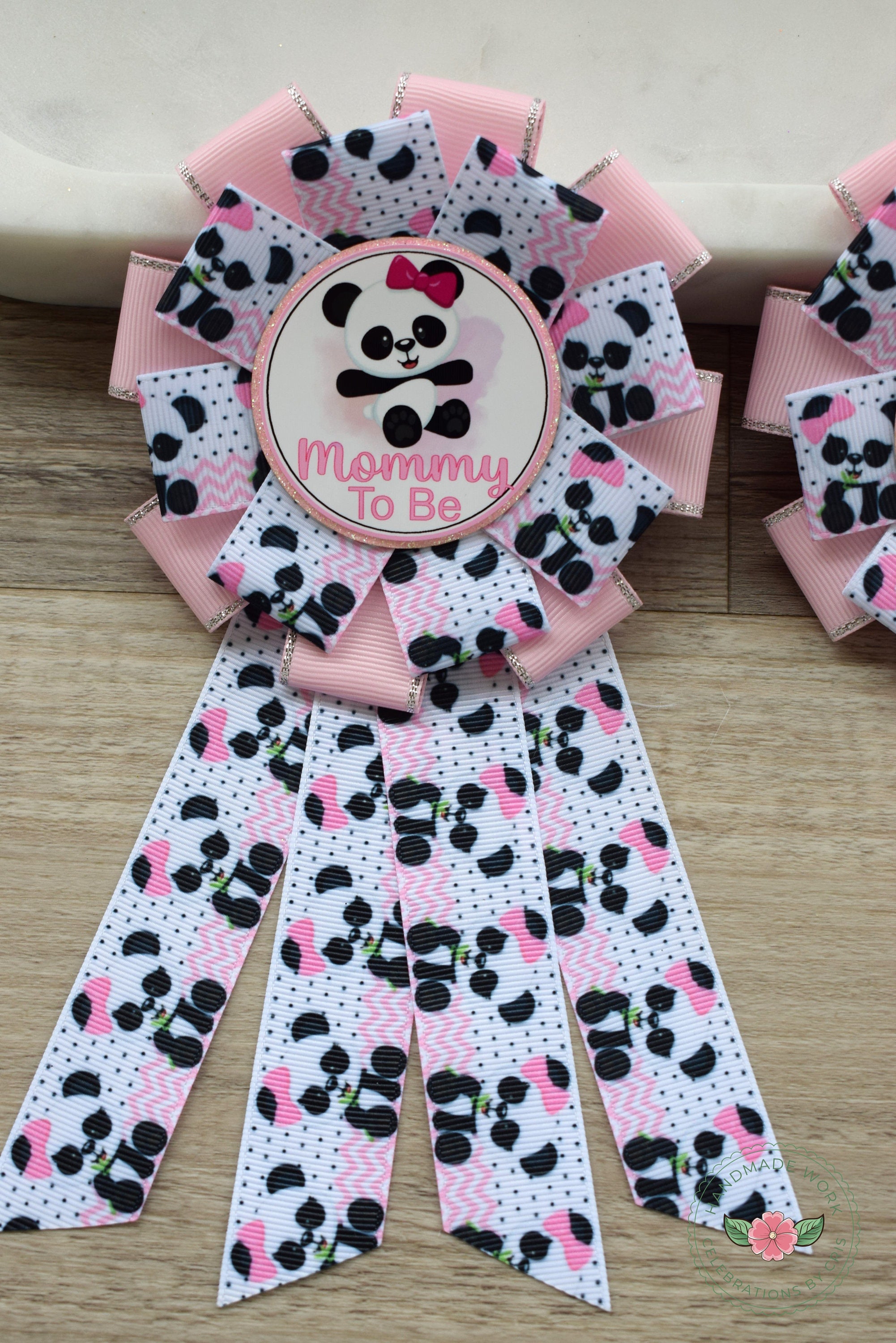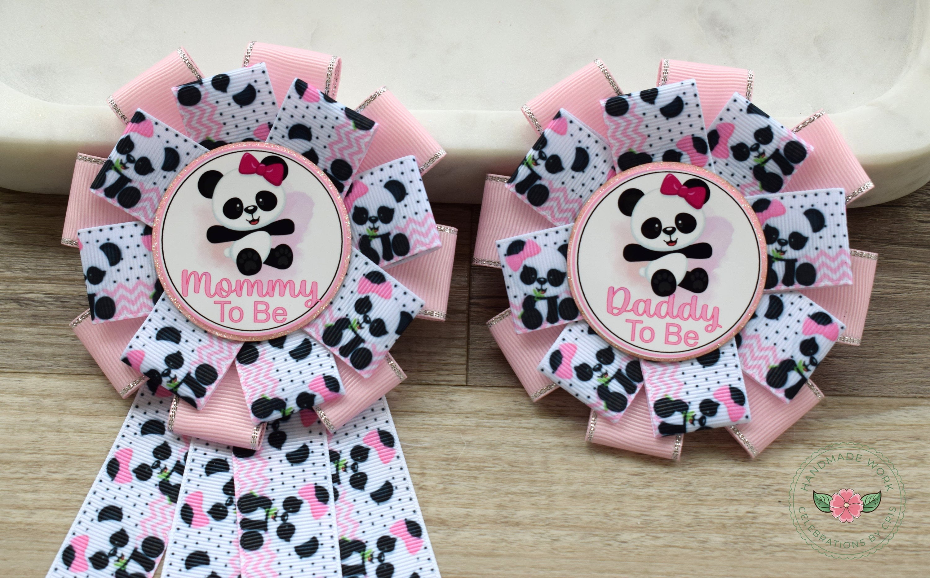 Girl Panda Baby Shower, Pink Panda Mommy To Be Ribbon Pin, Panda Daddy To Be Pin
