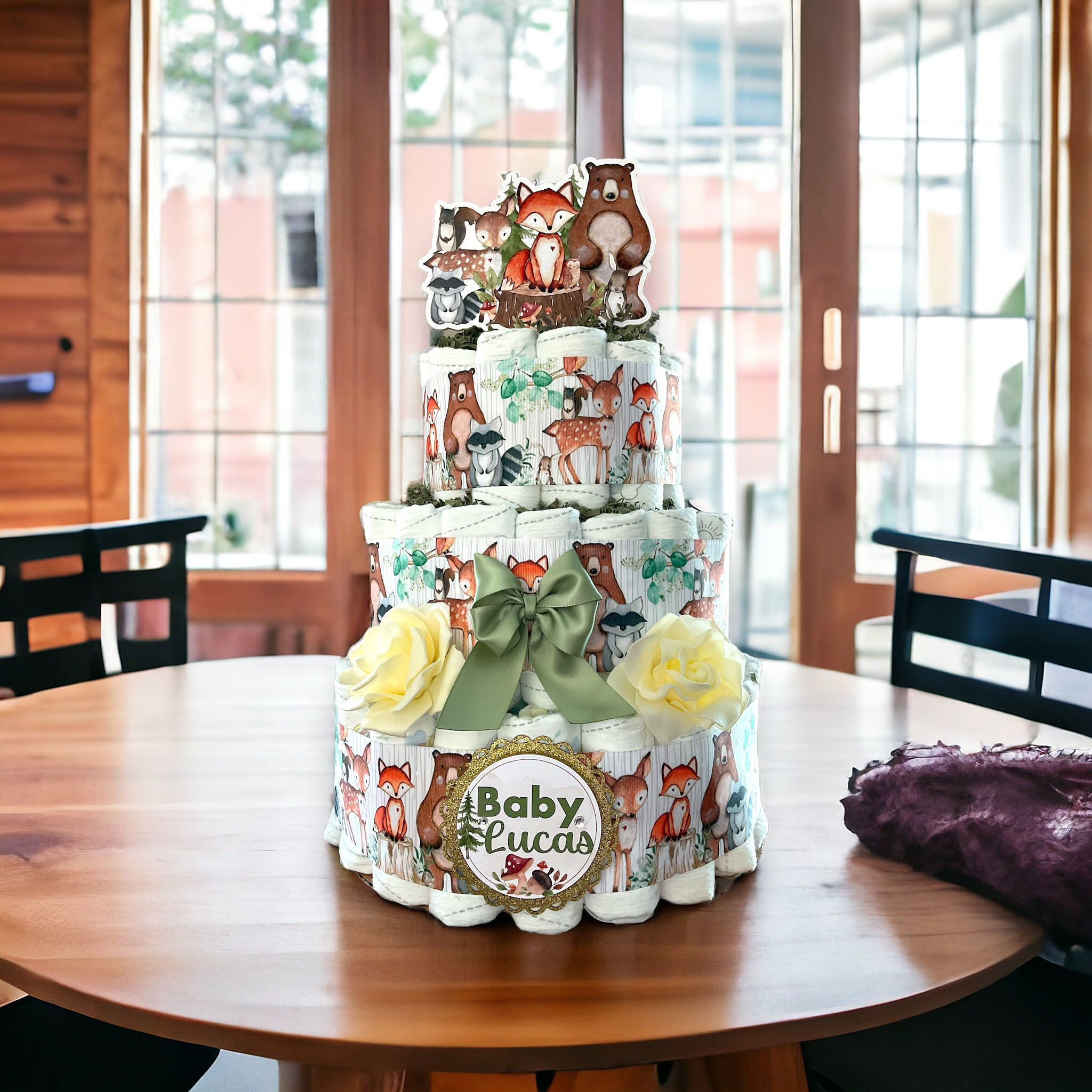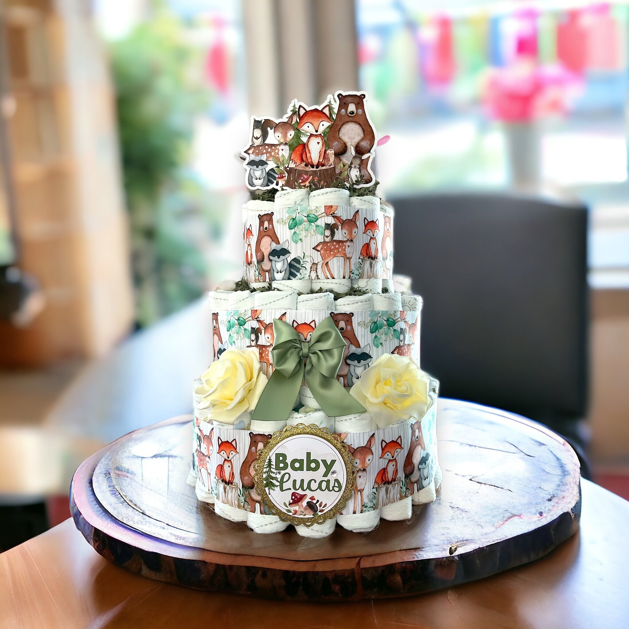 Woodland Animal Diaper Cake Baby Shower, Diaper Cake Centerpieces Decor, Woodland Diaper Cake, Room Nursery Decor, New Mom Gifts