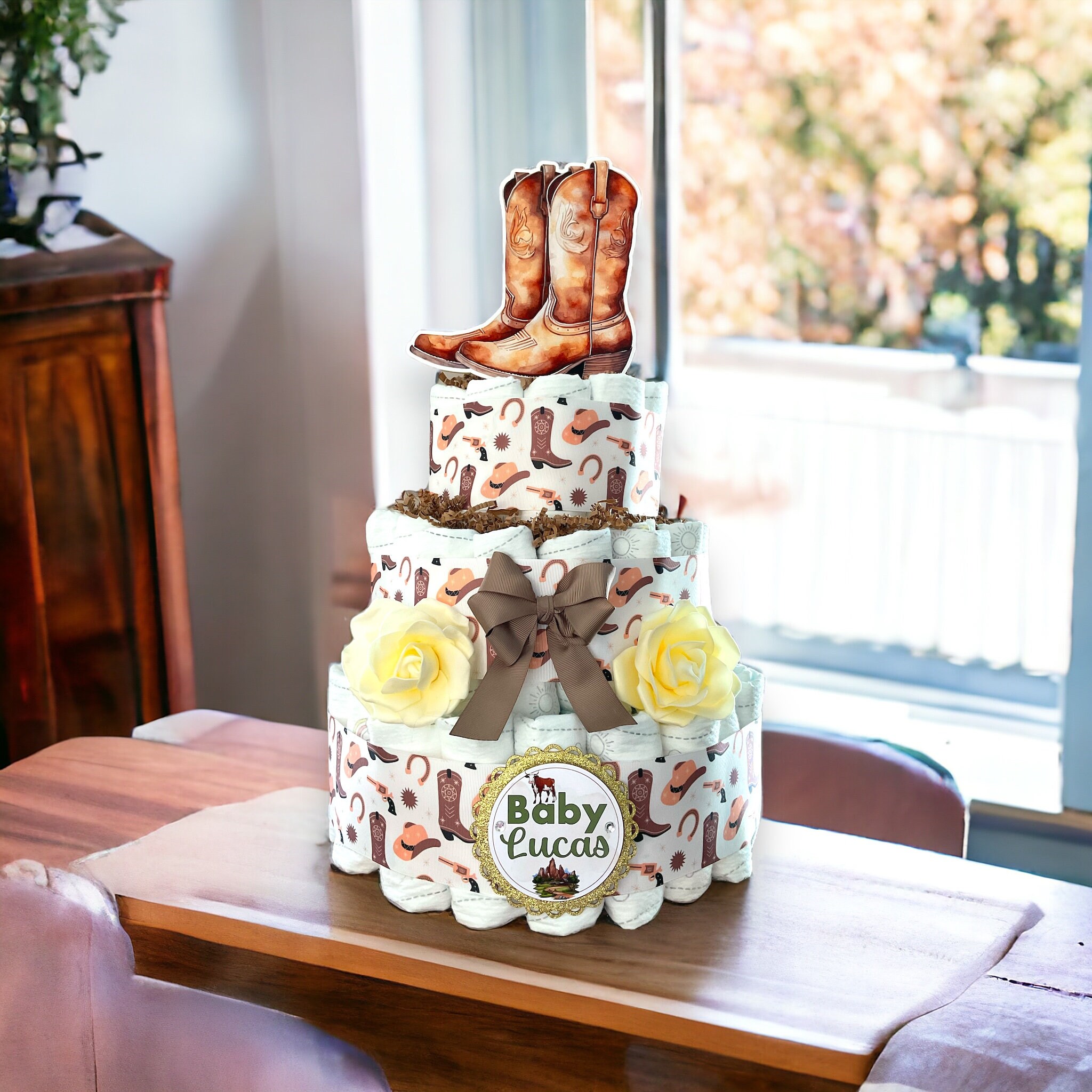 Cowboy Western Diaper Cake Baby Shower, Boots Hat Diaper Cake Centerpieces Decor, Western Baby Shower, Room Nursery Decor, New Mom Gifts