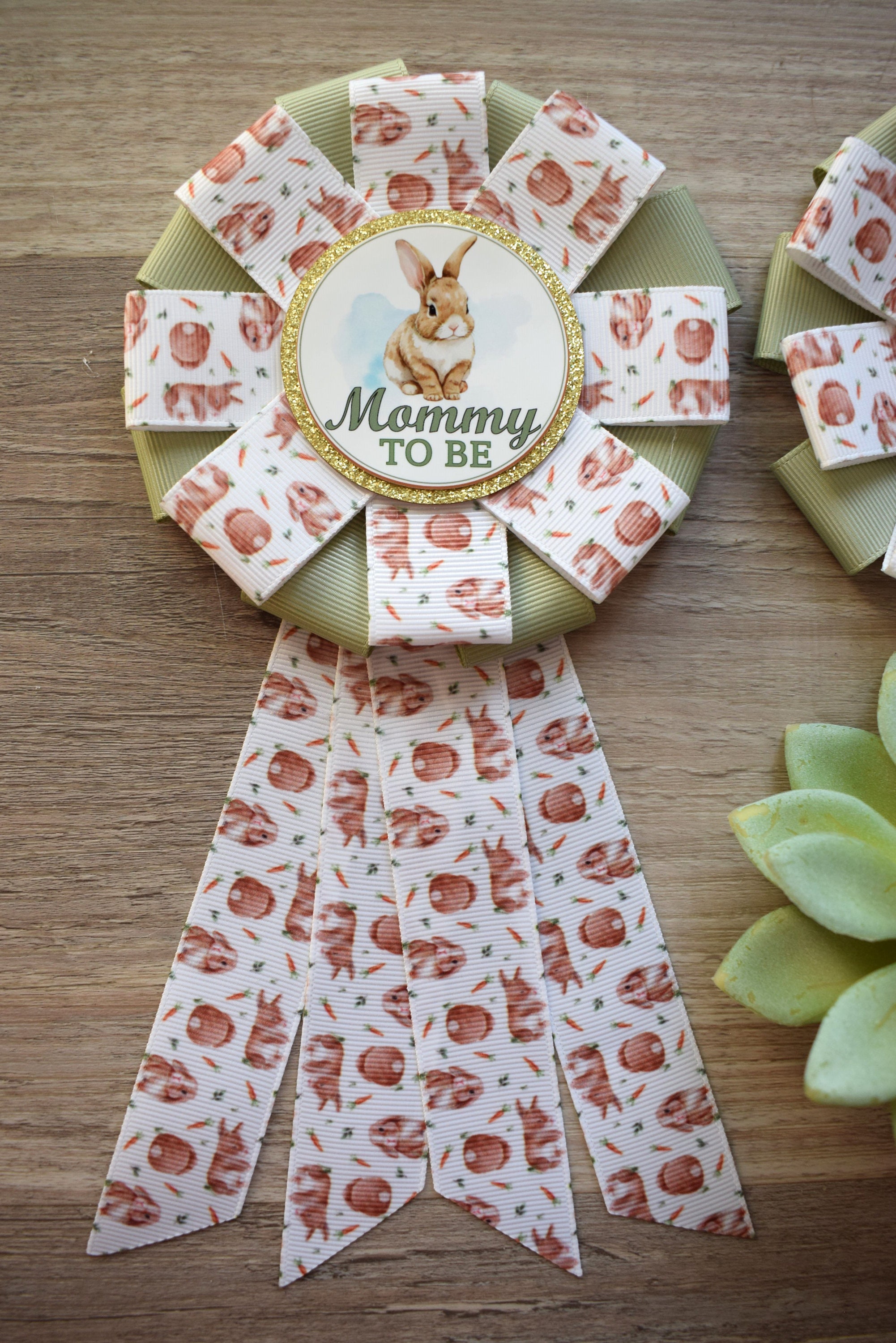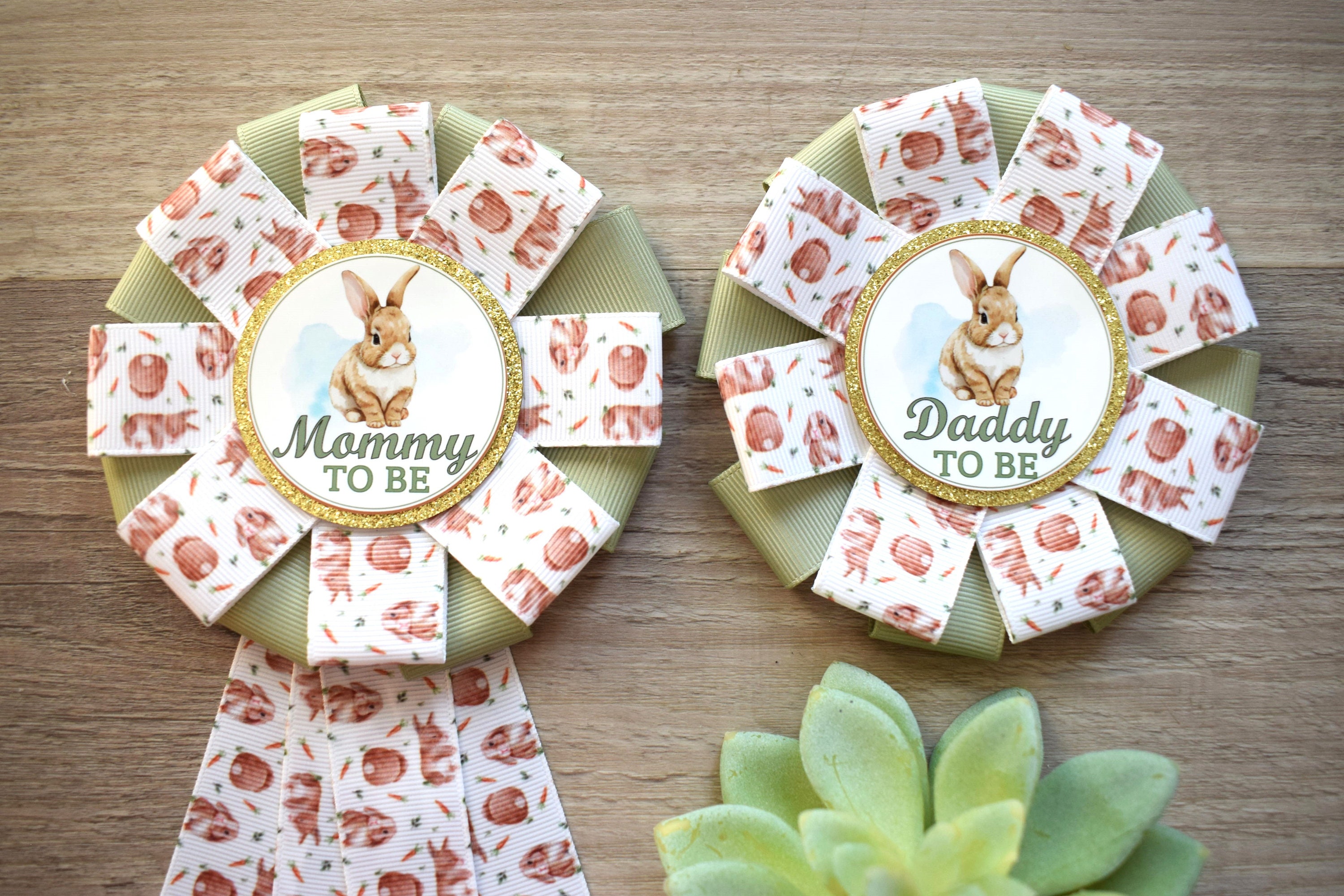 Rabbit Baby Shower, Easter Baby Shower, Bunny Mommy to Be Ribbon Pin, Daddy To Be Pin
