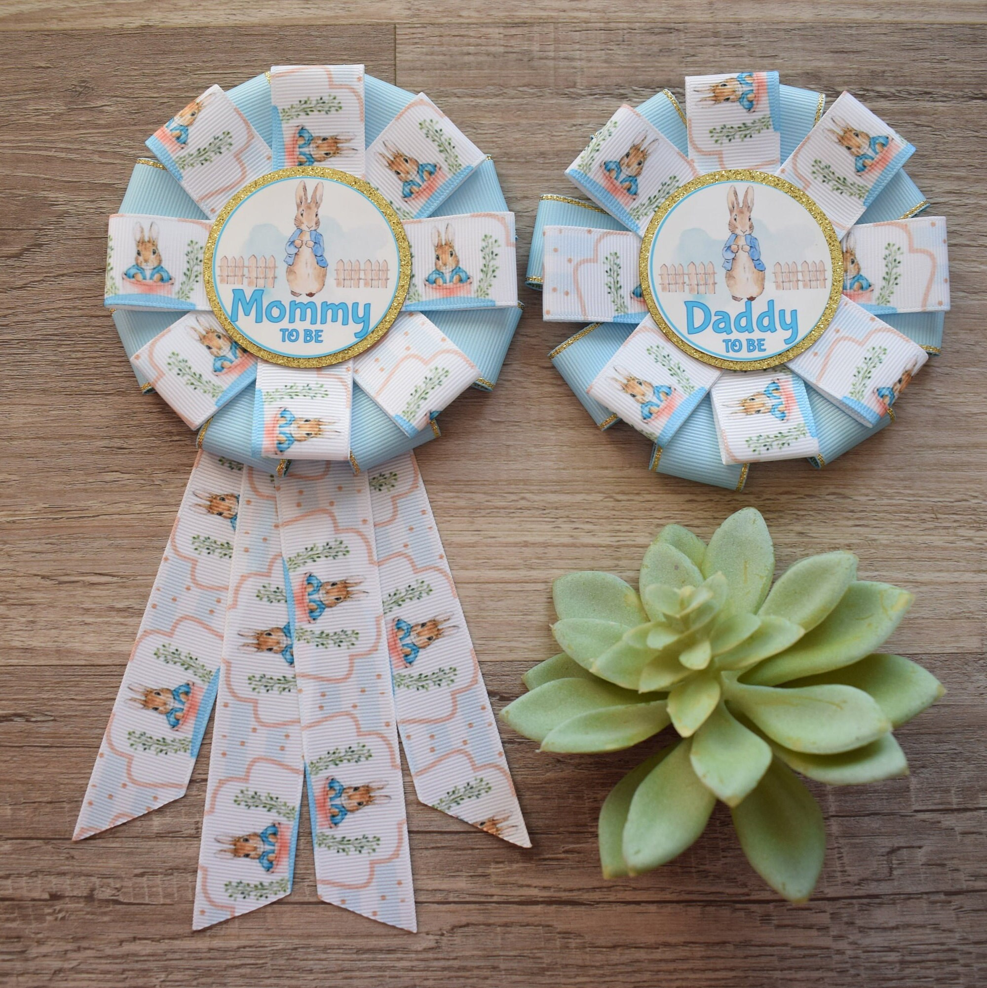 Rabbit Baby Shower, Easter Baby Shower, Bunny Mommy to Be Ribbon Pin, Daddy To Be Pin