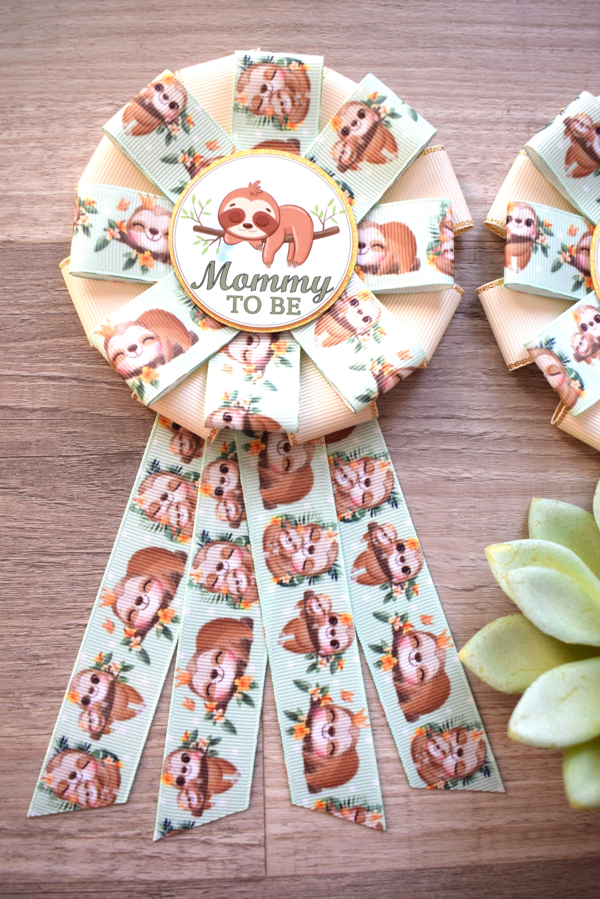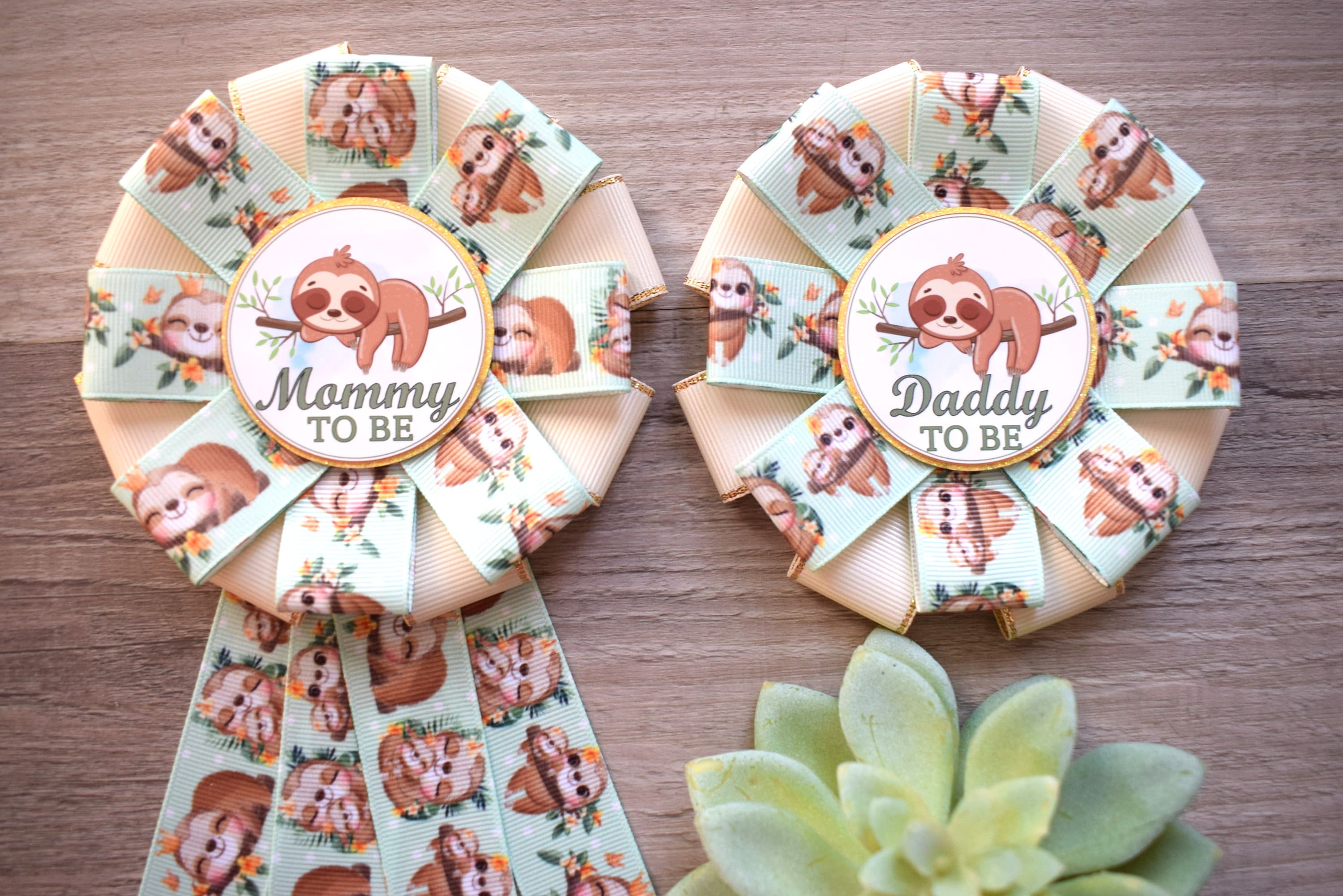Sloth Baby Shower, Sloth Mommy to Be Ribbon Pin, Sloth Baby Shower Pin, Sloth Greenery Daddy To Be Pin