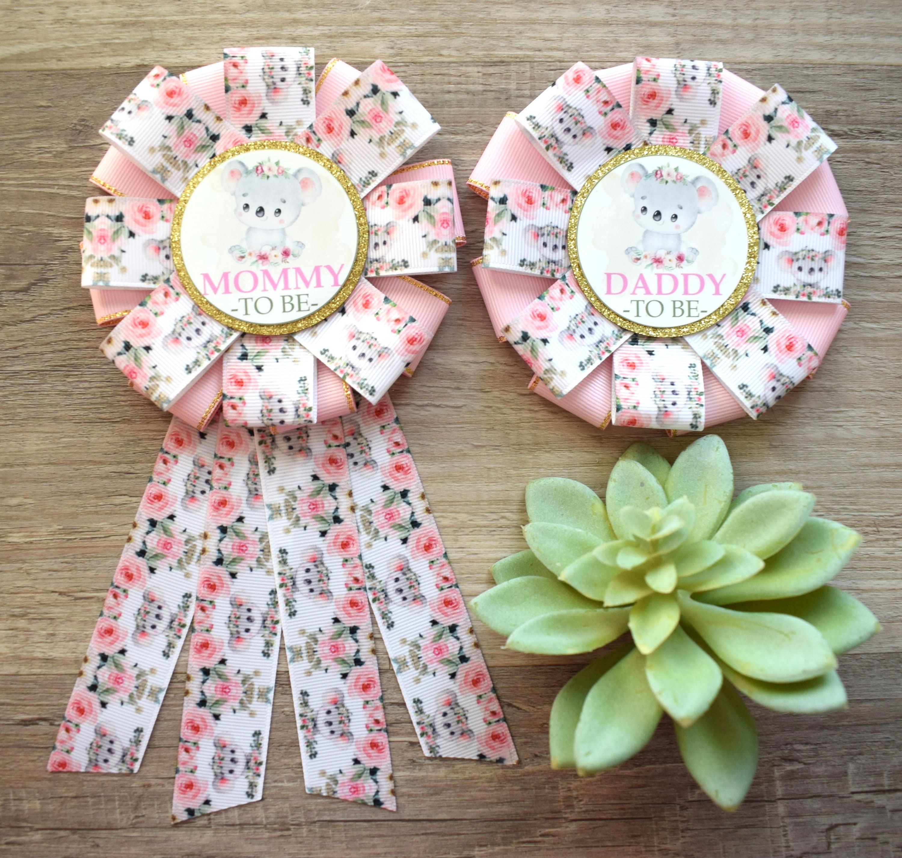 Girl Koala Baby Shower, Girl Koala Mommy To Be Ribbon Pin, Koala Daddy To Be Pin, Koala Baby Shower, Parent's Pins, Custom
