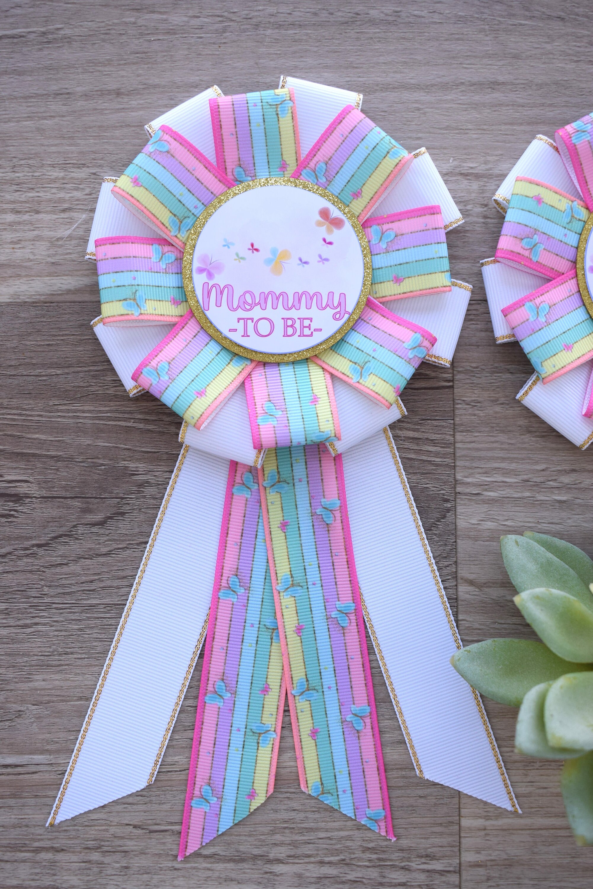 Rainbow Butterfly Baby Shower, Butterfly Mommy To Be Ribbon Pin, Multicolor Daddy To Be Pin, Pink Lavender Butterfly Big Sister, Big Brother