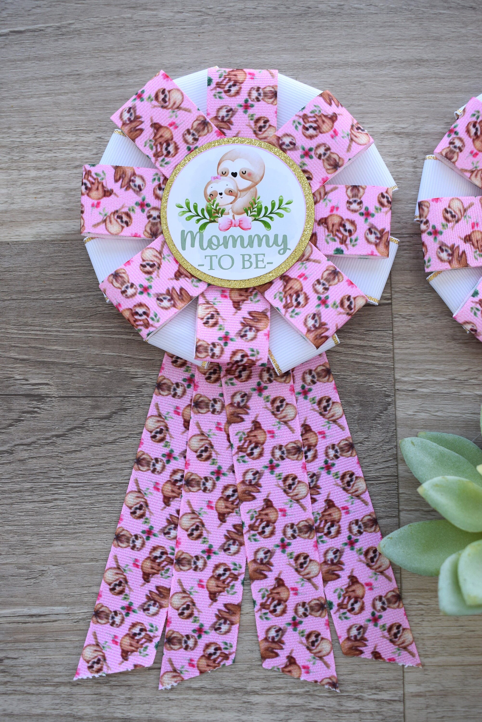 Girl Pink Sloth Baby Shower, Sloth Mommy to Be Ribbon Pin, Sloth Baby Shower Pin, Sloth Greenery Daddy To Be Pin, Parent's To Be Pin