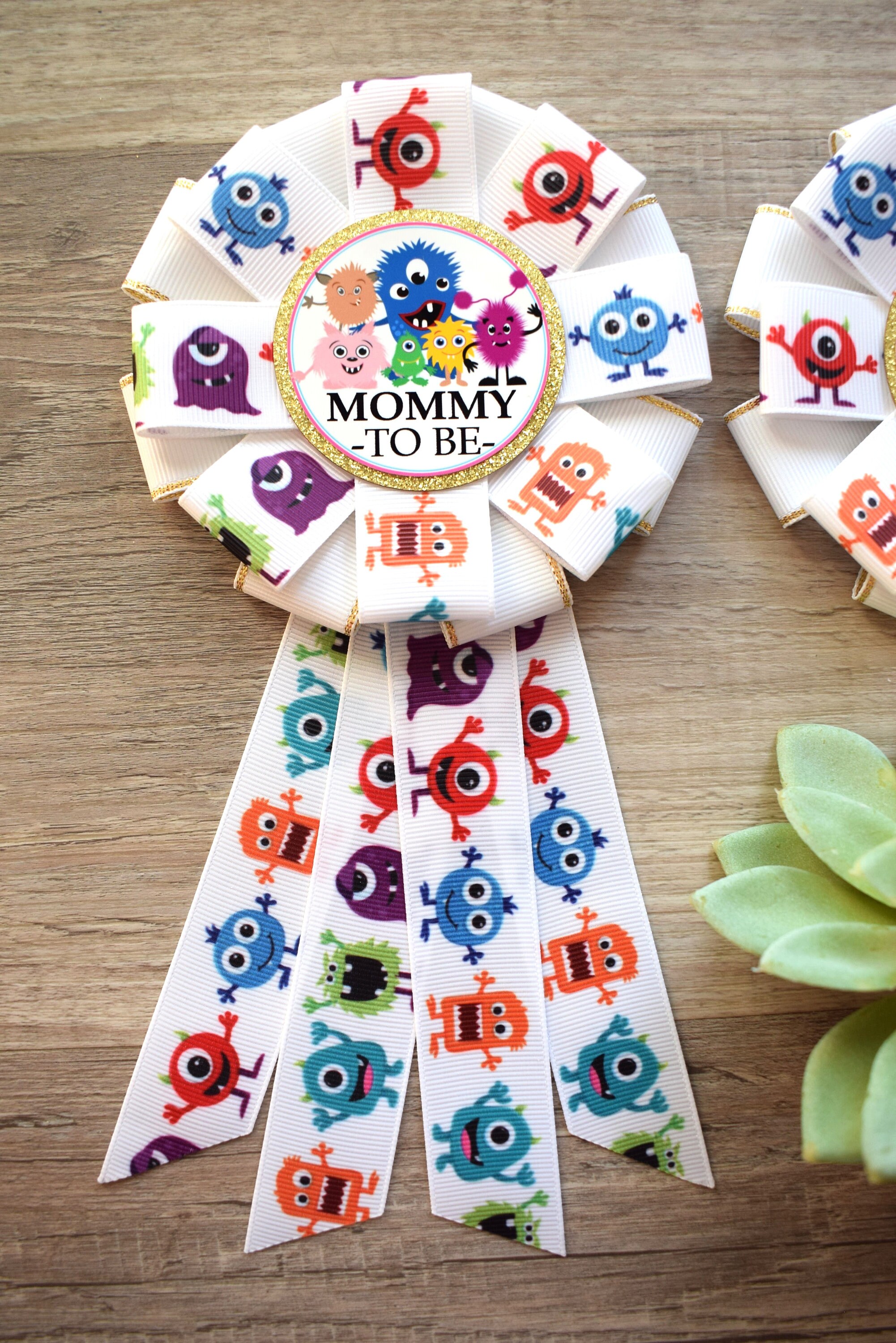 Baby Monsters Baby Shower, Little Monster Mommy To Be Ribbon Pin, Daddy To Be Pin, Parent's To Be Pin, Custom