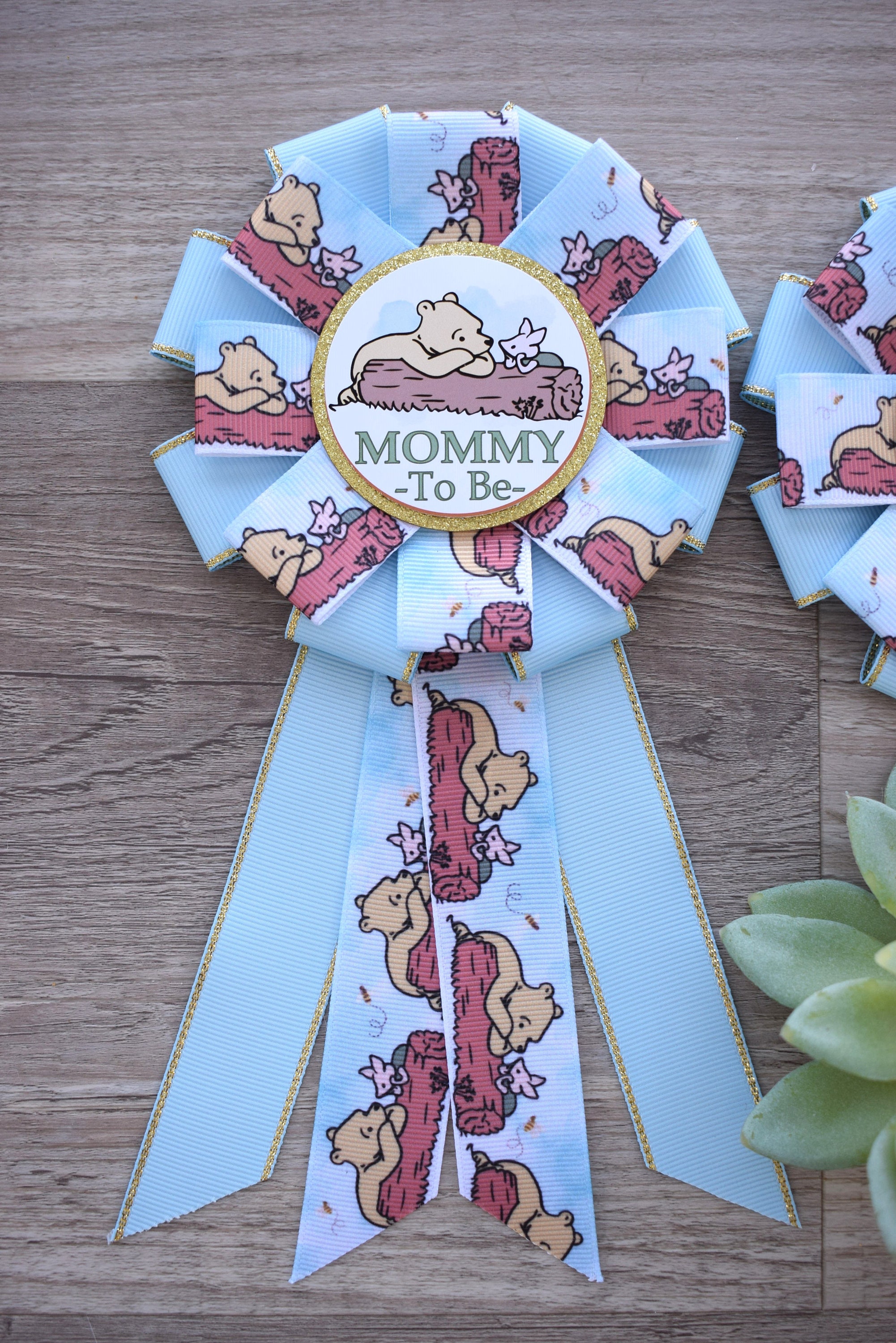 Boy Winnie The Pooh Baby Shower, Blue Winnie the Pooh Mommy To Be Ribbon, Daddy To Be Pin, Winnie the Pooh Family Pins, Parent's To Be Pins