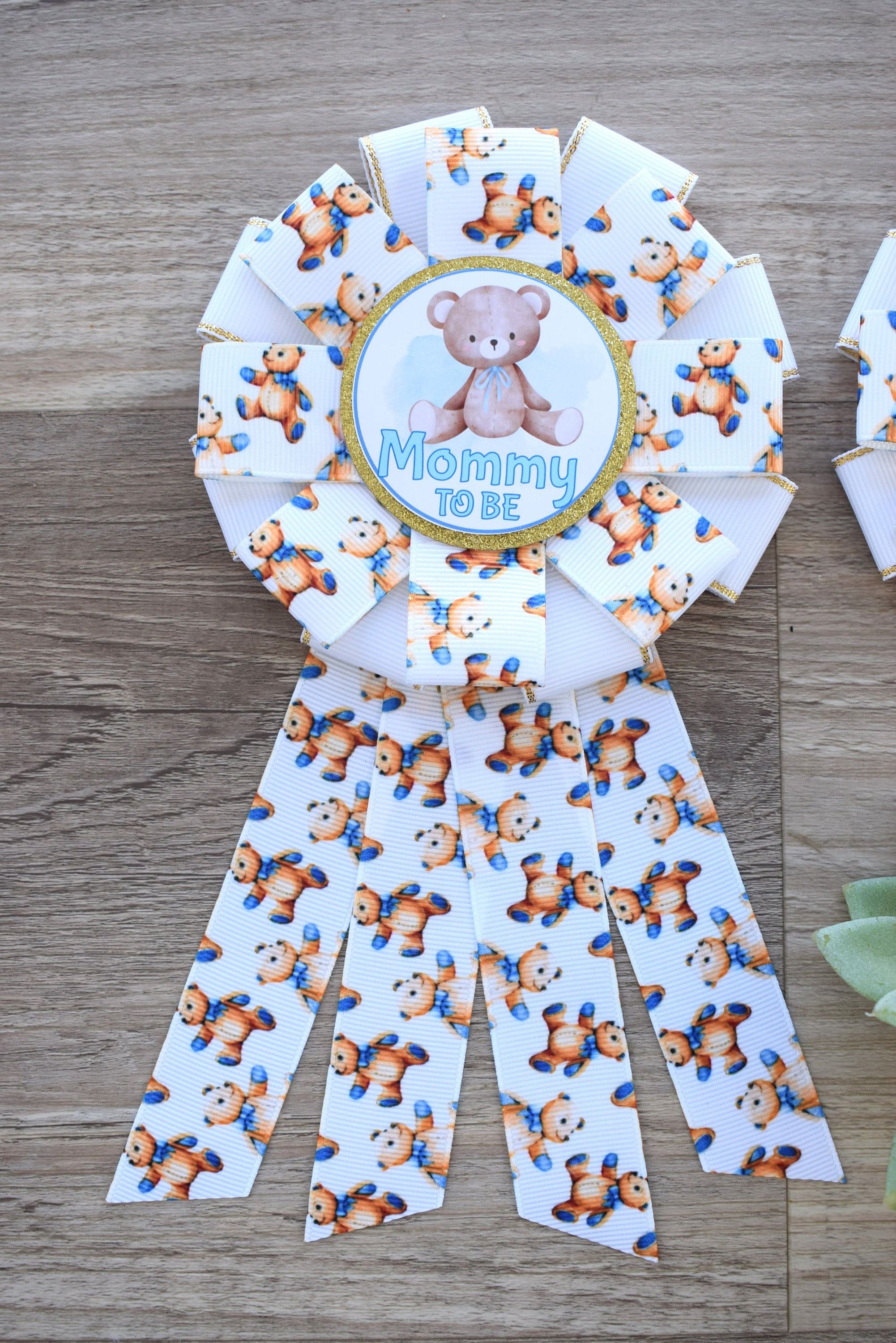 Baby Boy Teddy Bear Baby Shower, Boy Bear Mommy To Be Ribbon Pin, Blue Teddy Bear Daddy To Be Pin, Parent's To Be Pins