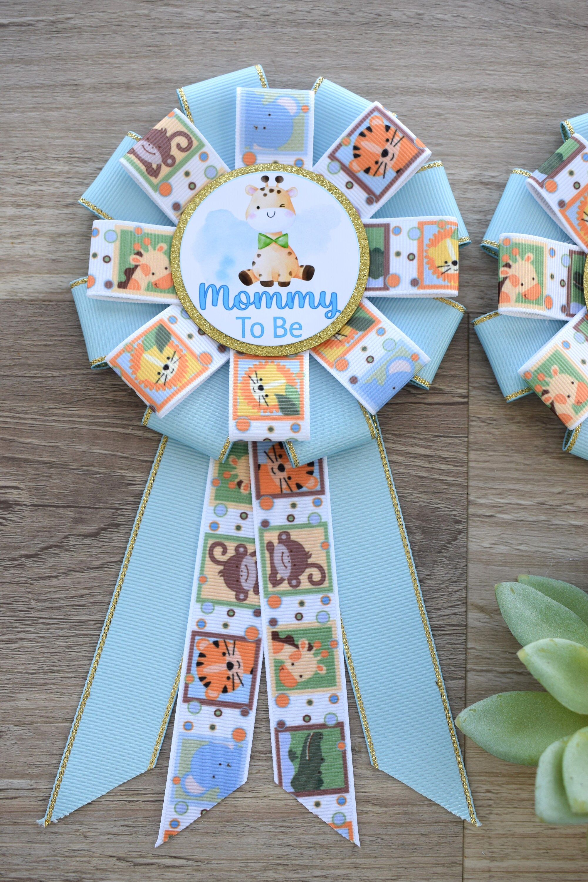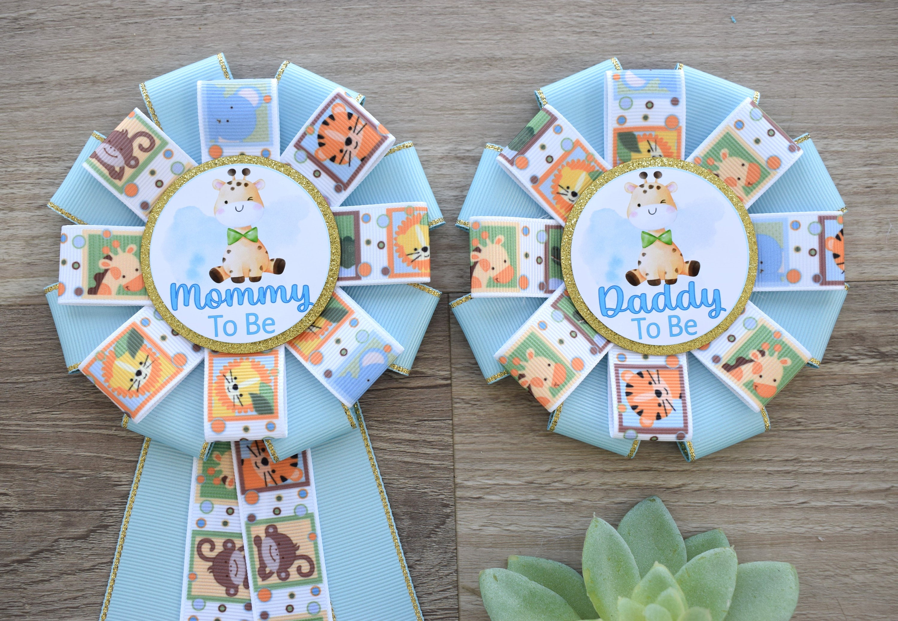 Blue Baby Safari Animal Baby Shower, Safari Animal Mommy To Be Ribbon Pin, Animal Daddy To Be Badge Pin, Parent's To Be Pins