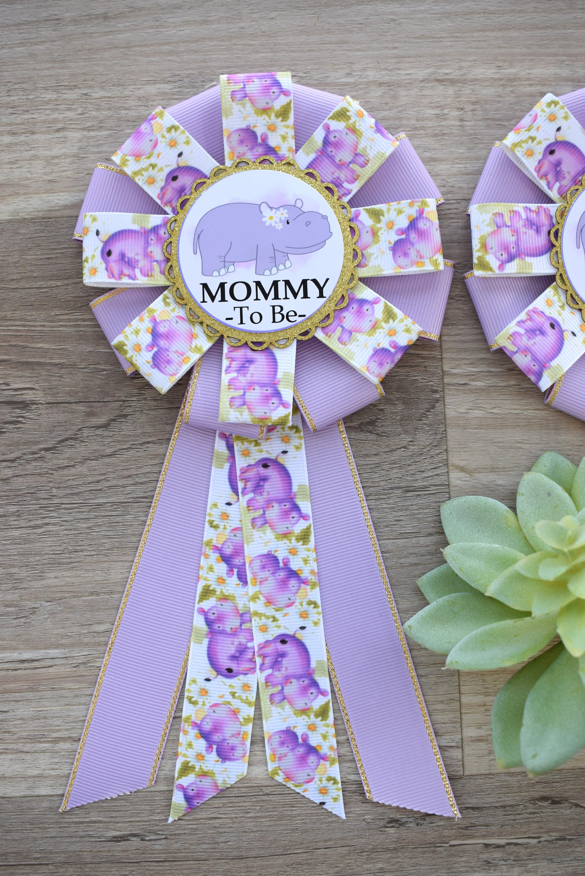 Girl Hippo Baby Shower, Hippo Mommy To Be Ribbon Pin, Hippo Gender Reveal Animal Daddy To Be Badge Pin, Parent's To Be Pin