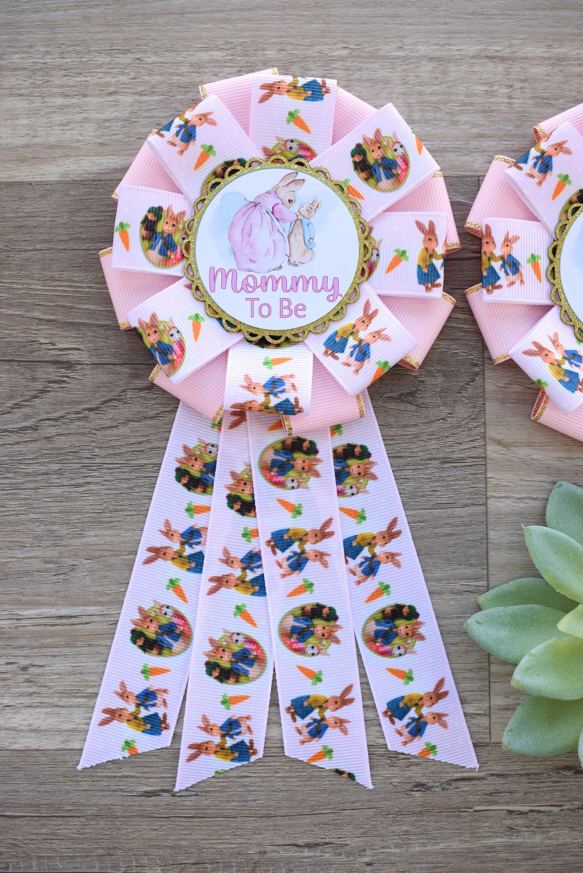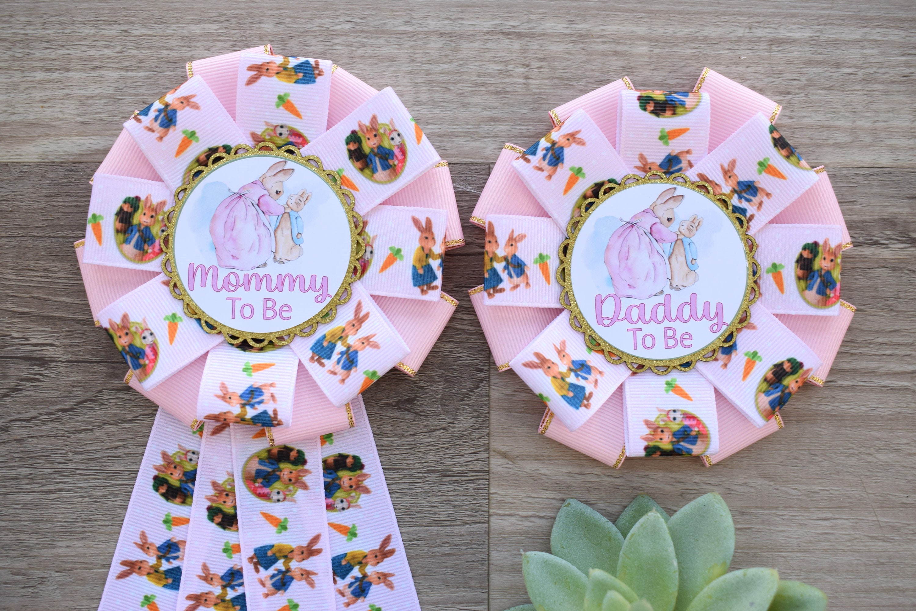 Pink Girl Rabbit Baby Shower, Easter Baby Shower, Girl Bunny Mommy to Be Ribbon Pin, Peter Daddy To Be Pin