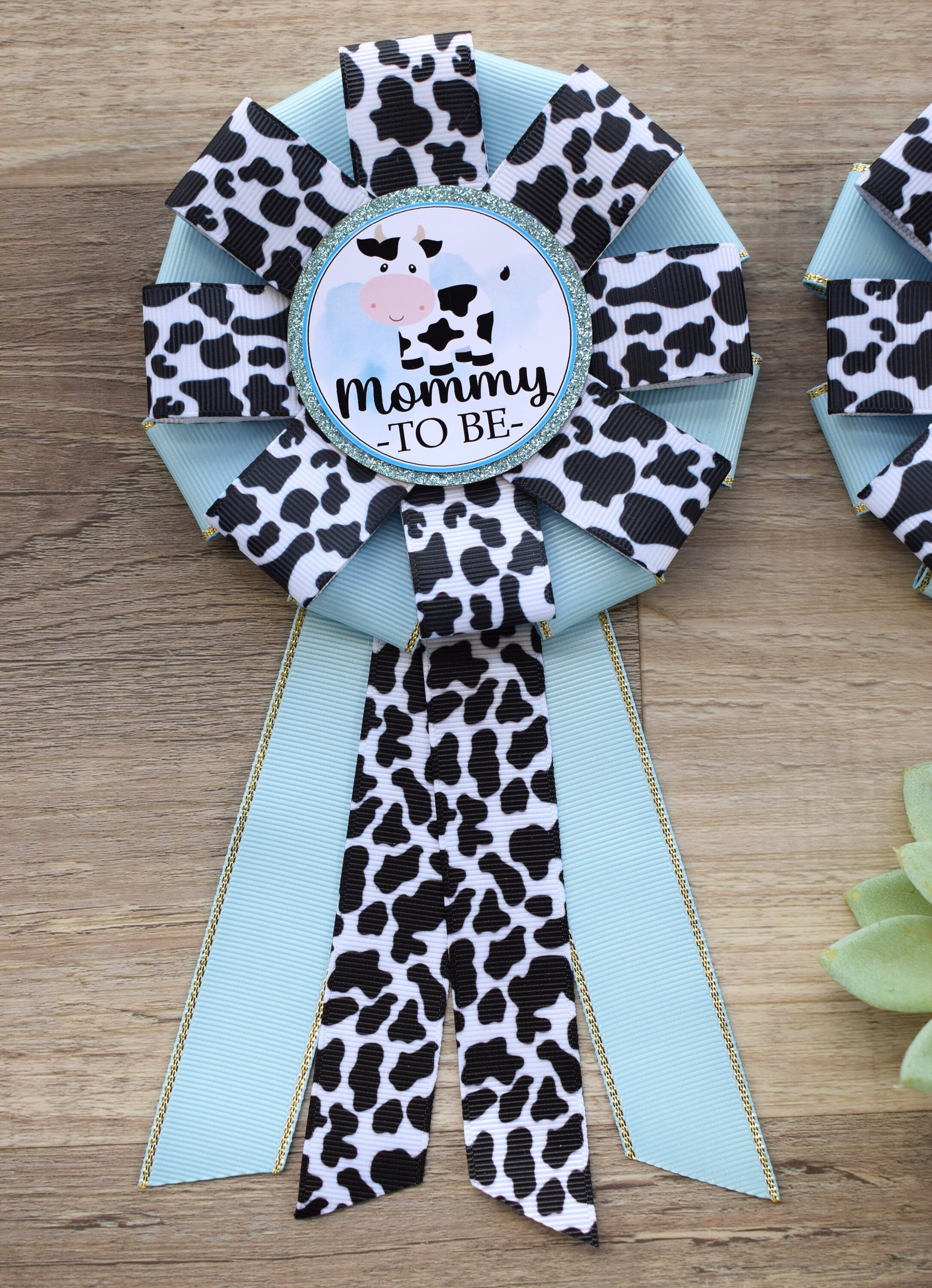 Blue Cow Baby Shower, Boy Cow Mommy To Be Ribbon Pin, Daddy To Be Pin, Pink Corsage Pin, Parent's To Be Pin