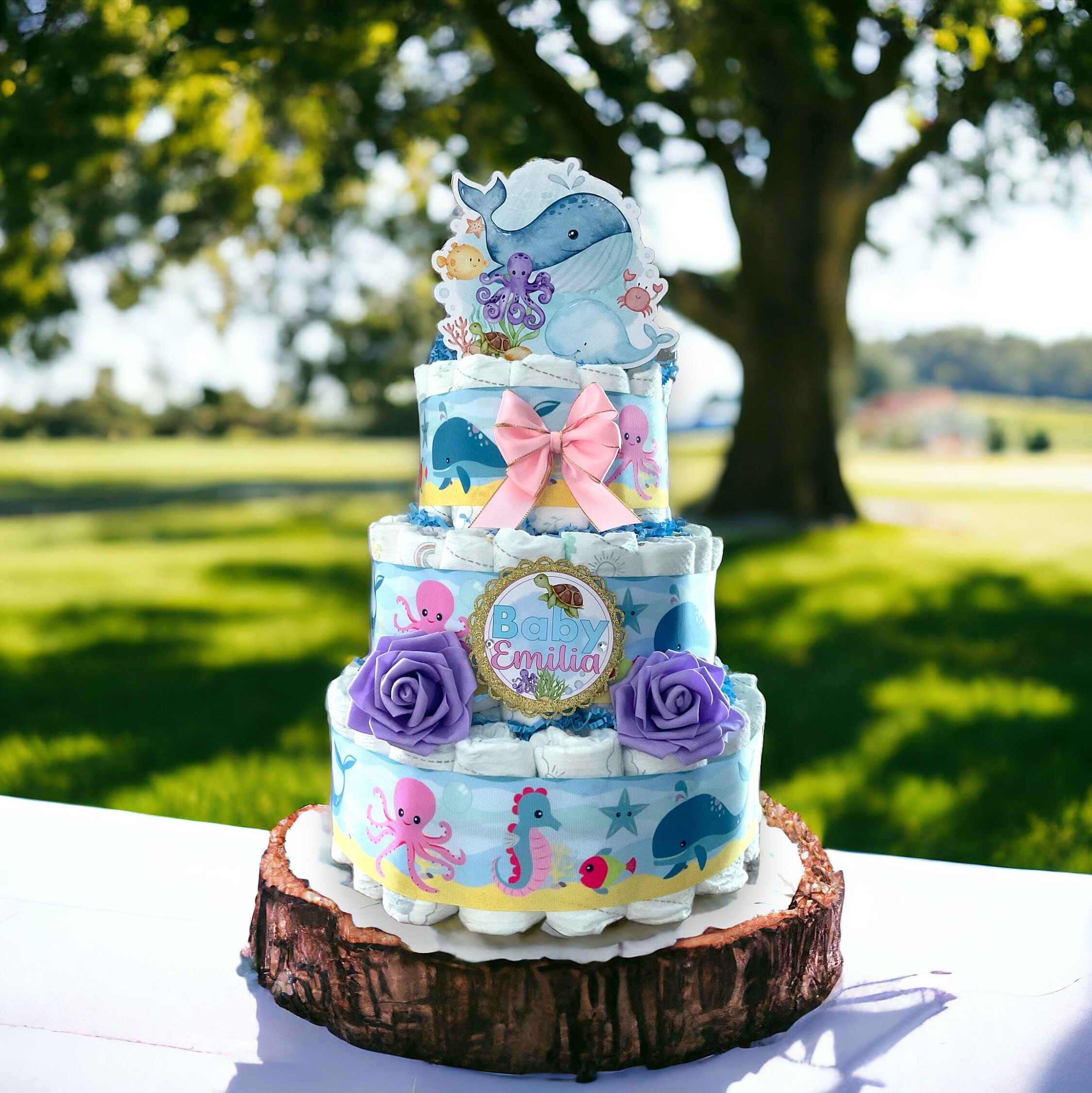 Girl Under The Sea Diaper Cake Baby Shower, Octopus Turtle Baby Shower Centerpieces Decorations, Boy Room Nursery Decor, New Mom Gifts - S00015