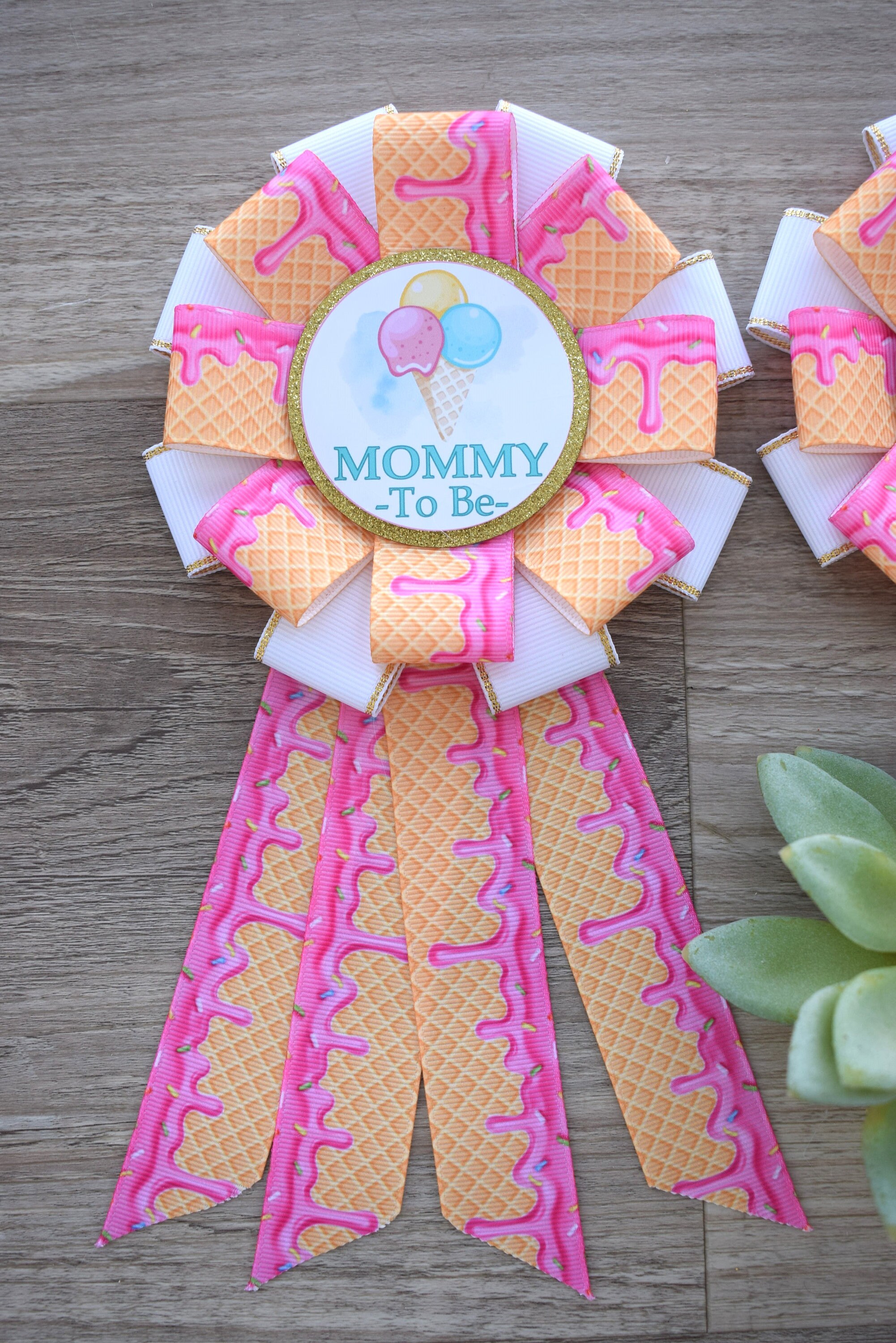 Ice Cream Baby Shower, Ice Cream Mommy to Be Pin, Ice Cream Daddy to Be Corsage Pin, Ice Cream Mommy to Be Ribbon Pin, Custom Pin