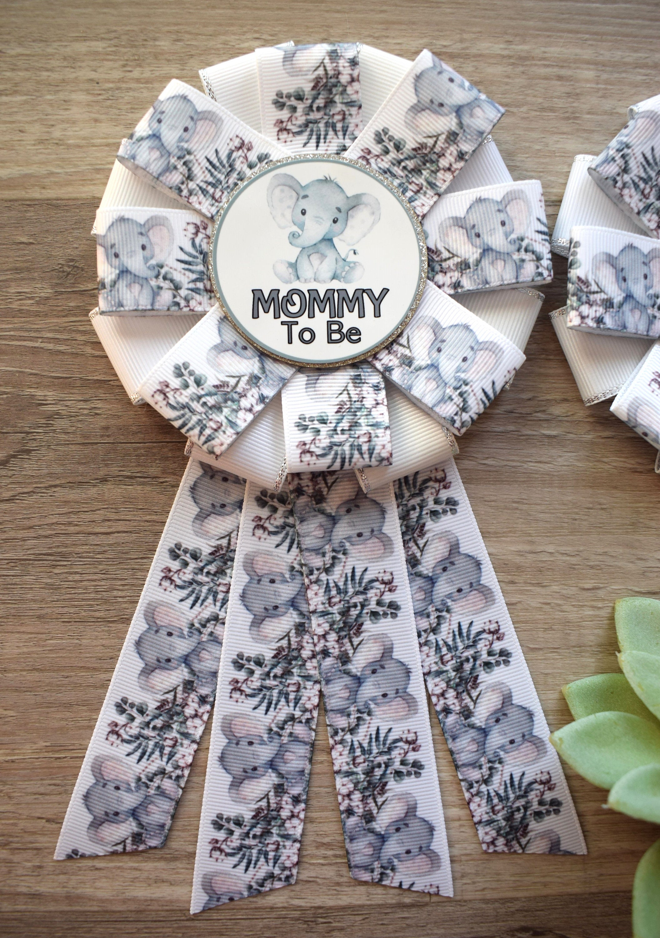 Grey Elephant Baby Shower, Baby White Grey Elephant Mommy To Be Ribbon Pin, Elephant Daddy to Be Badge Pin, Parent's To Be Pin