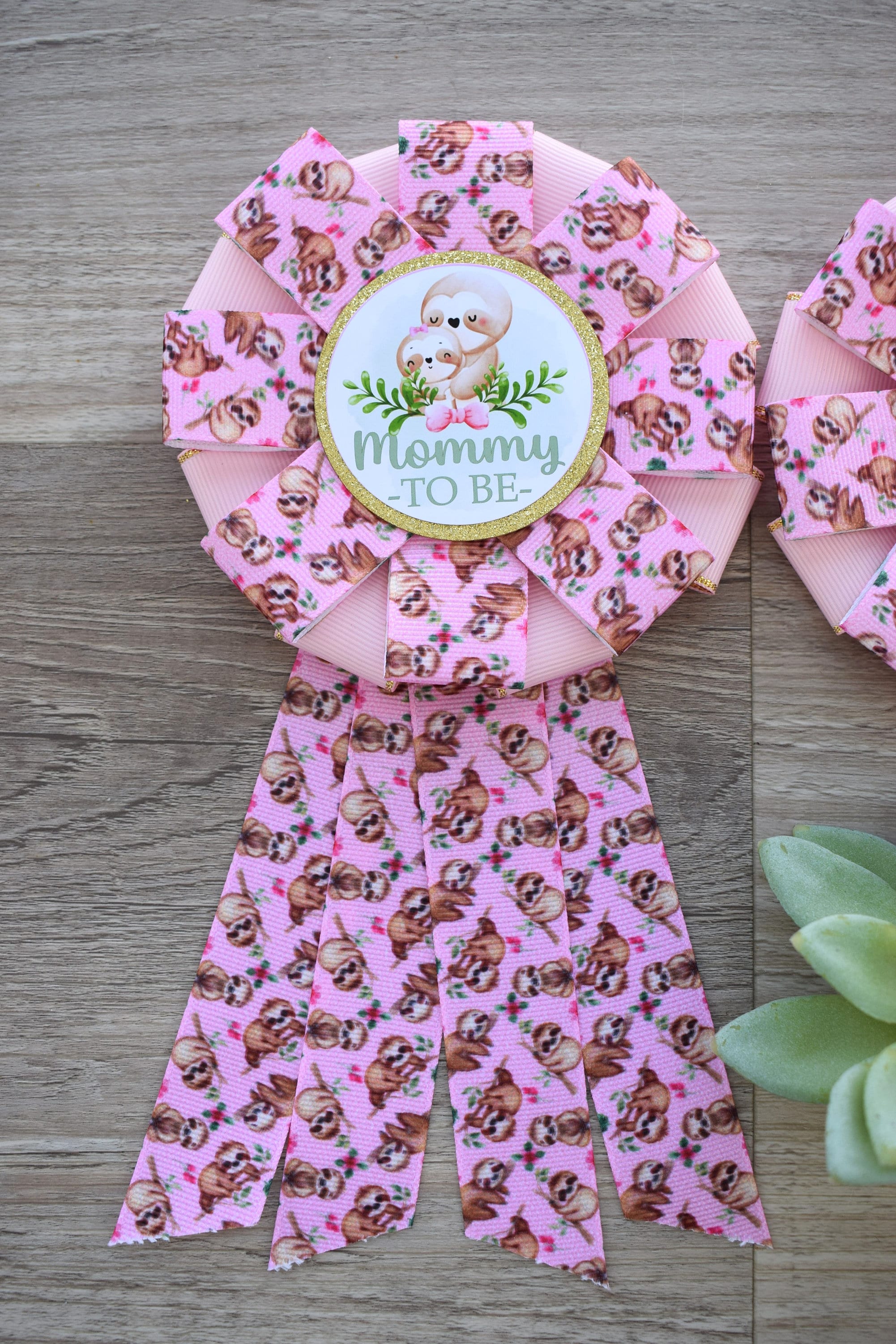 Girl Pink Sloth Baby Shower, Sloth Mommy to Be Ribbon Pin, Sloth Baby Shower Pin, Sloth Greenery Daddy To Be Pin, Parent's To Be Pin