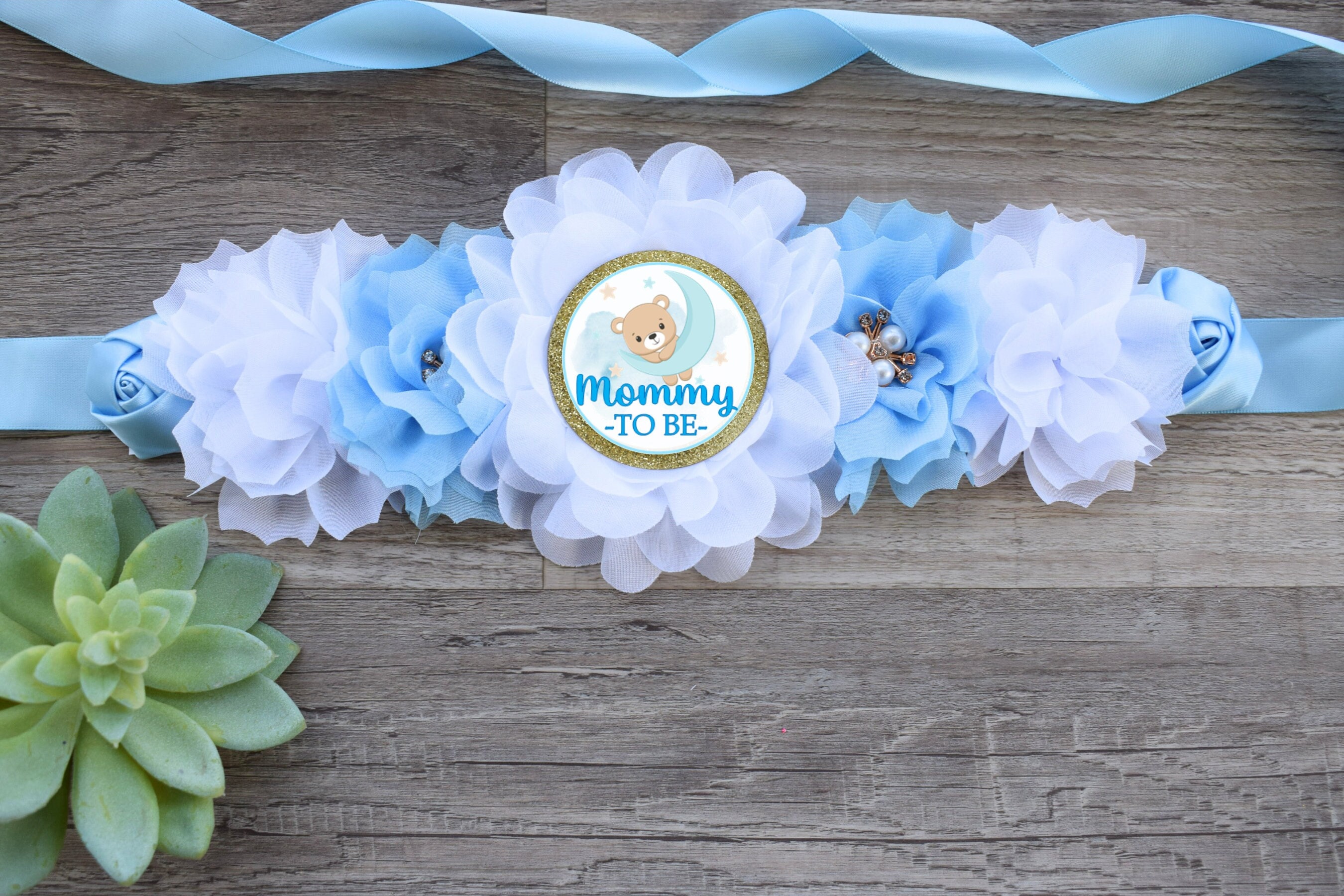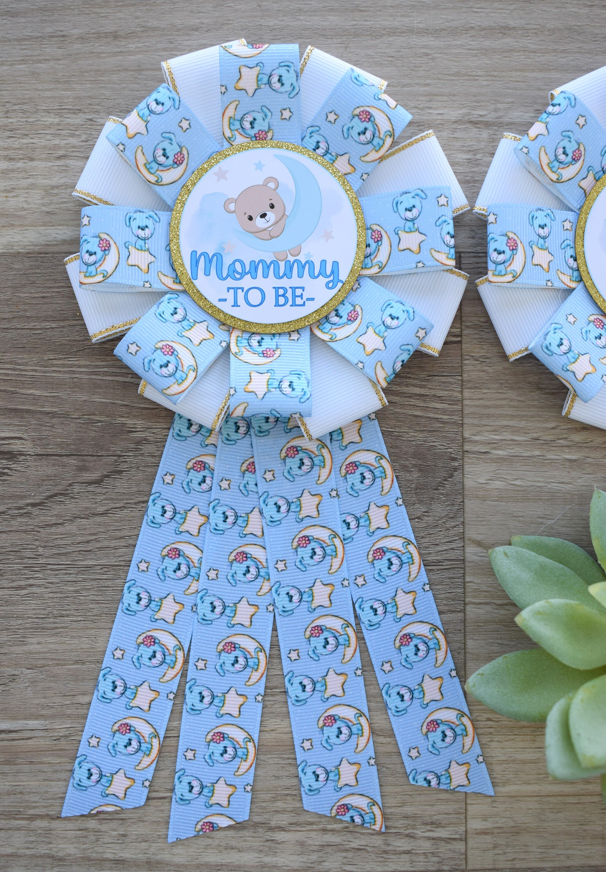 Baby Blue Teddy Bear Baby Shower, Boy Bear Mommy To Be Ribbon Pin, Blue Teddy Bear Daddy To Be Pin, Parent's To Be Pins