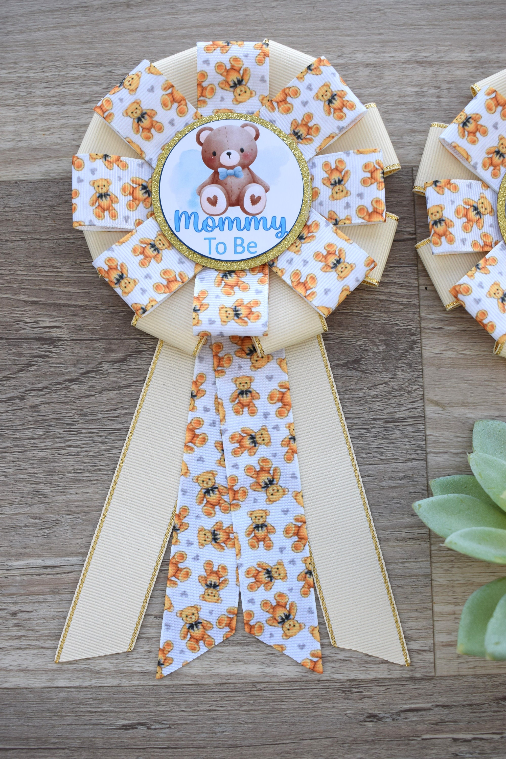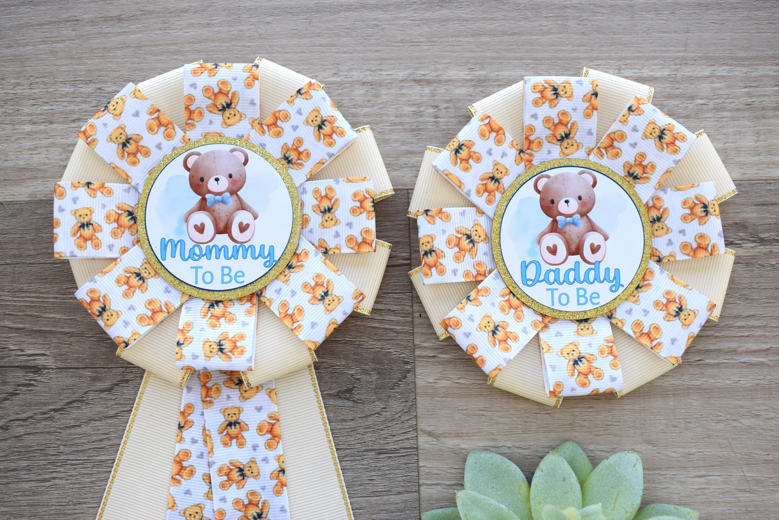 Boy Bear Baby Shower, Cream Bear Mommy To Be Ribbon Pin, Teddy Bear Daddy To Be Pin, Gender Reveal Baby Shower