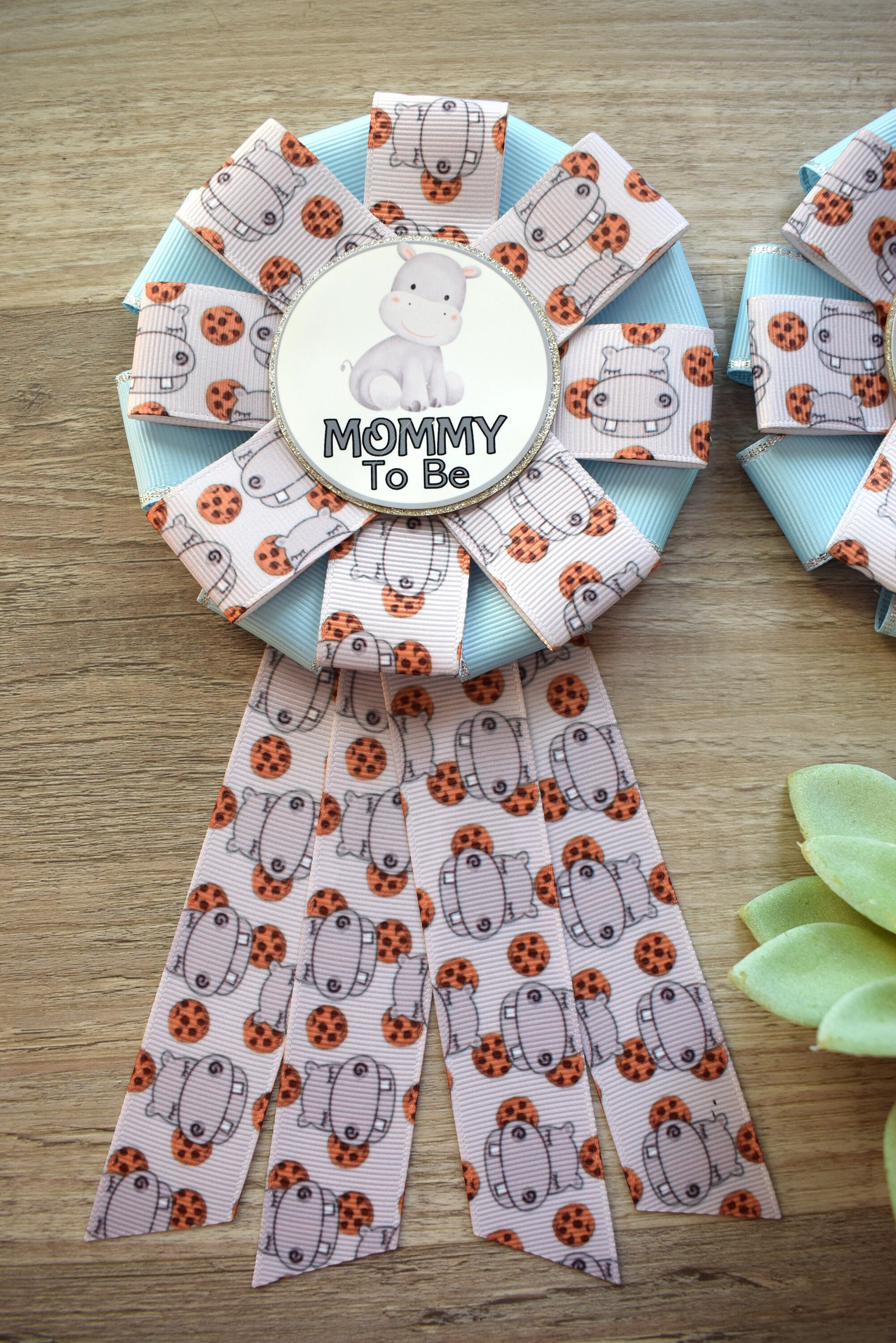 Blue Hippo Baby Shower, Hippo Mommy To Be Ribbon Pin, Hippo Gender Reveal Animal Daddy To Be Badge Pin, Parent's To Be Pin