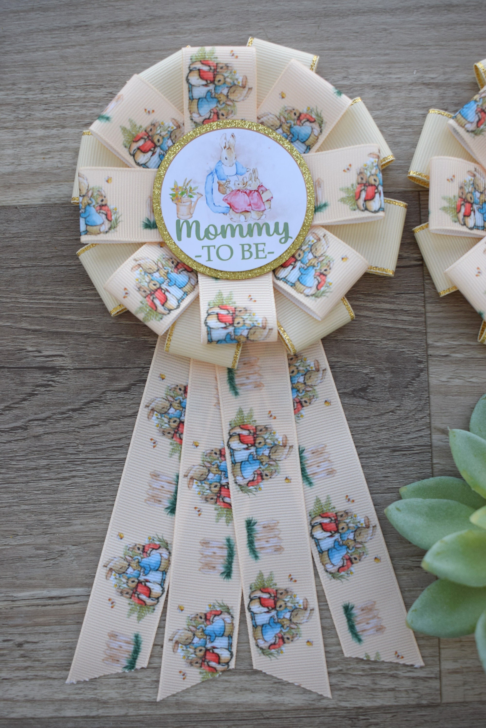 Neutral Gender Reveal Rabbit Baby Shower, Rabbit Bunny Mommy to Be Ribbon Pin, Daddy To Be Pin, Parent's To Be Pins
