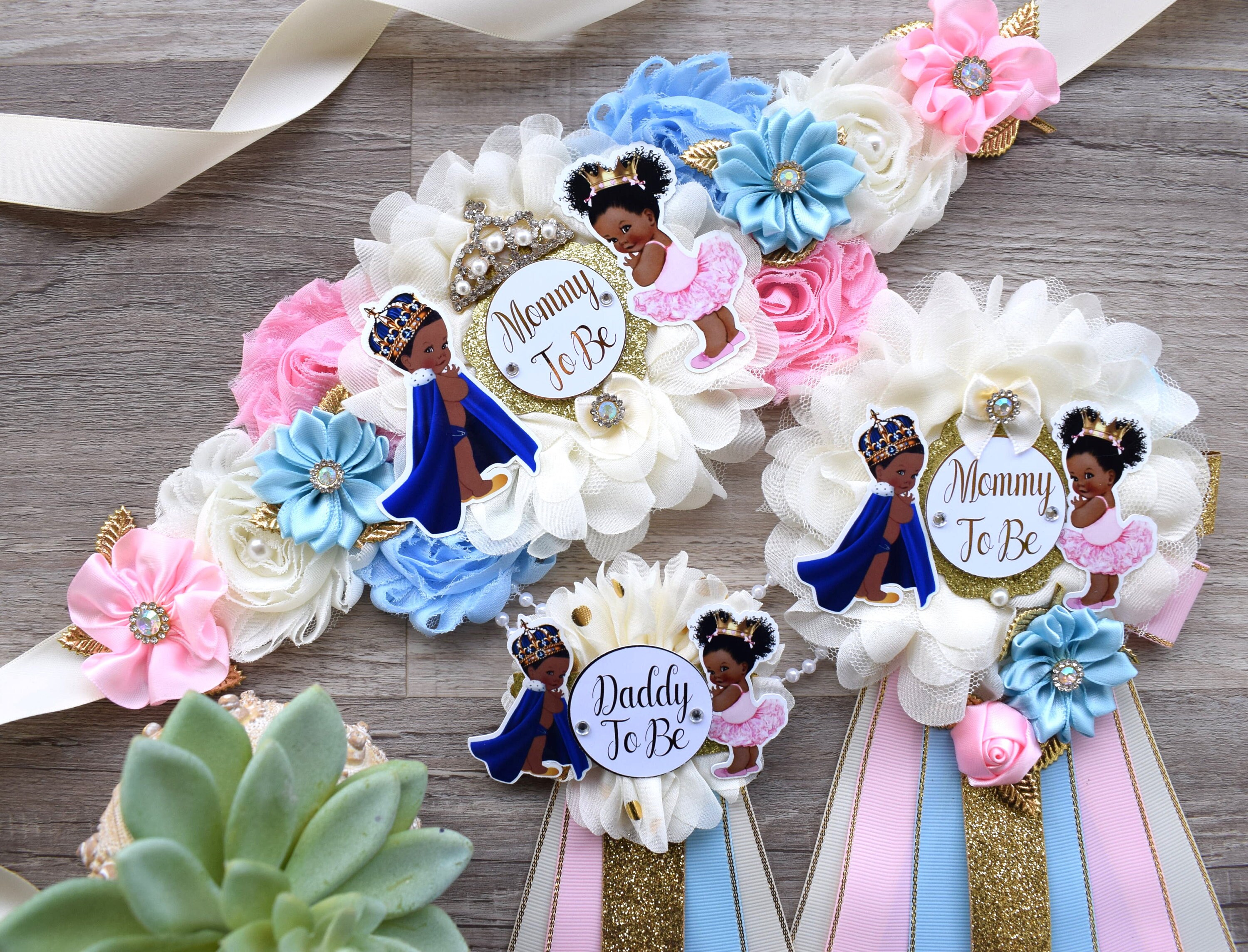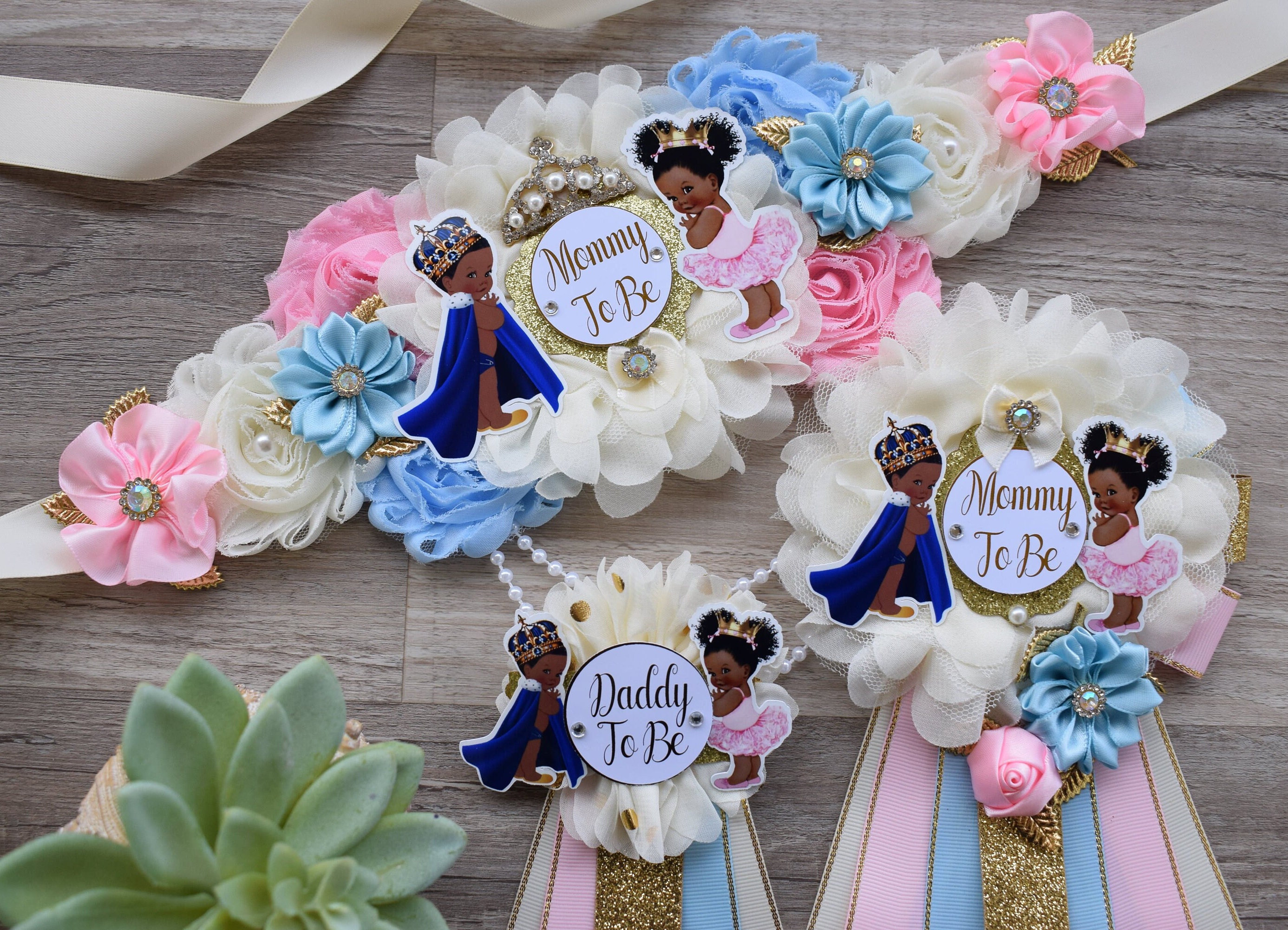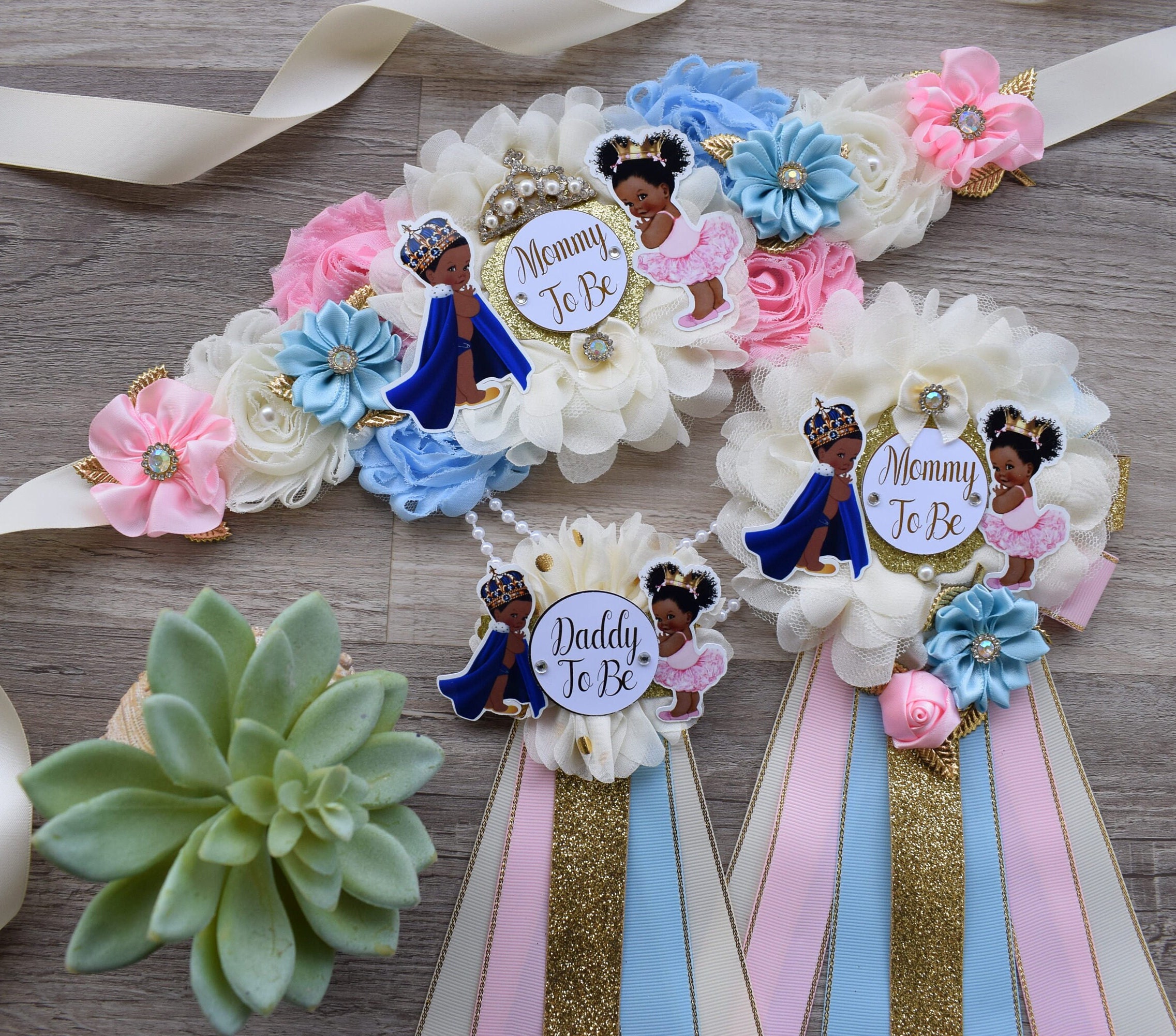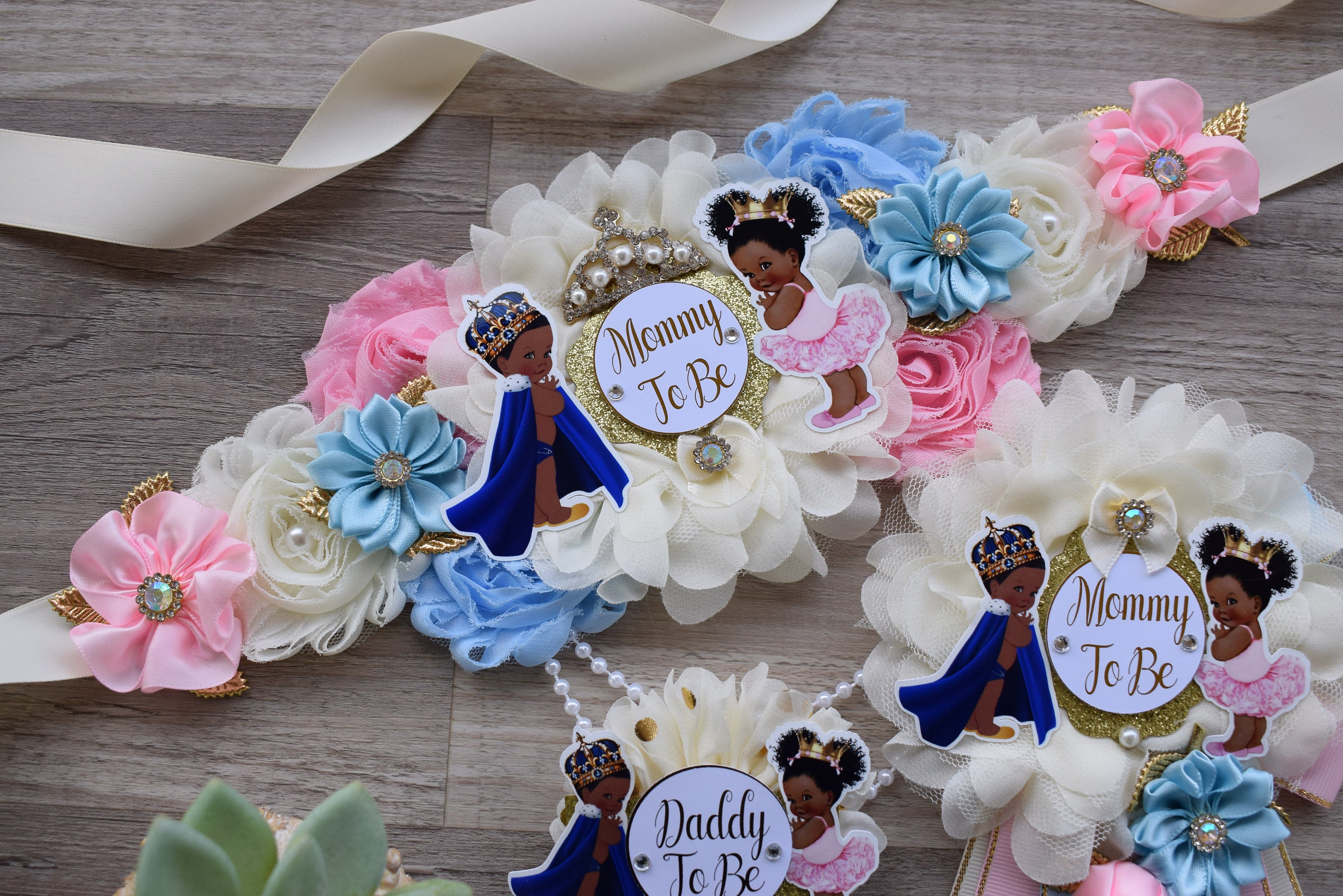 Prince & Princess Baby Shower, Girl and Boy Maternity Sash, Pink Gold Mommy To Be Pin, Daddy To Be Pin, Royal Baby Shower, Baby Shower Gift