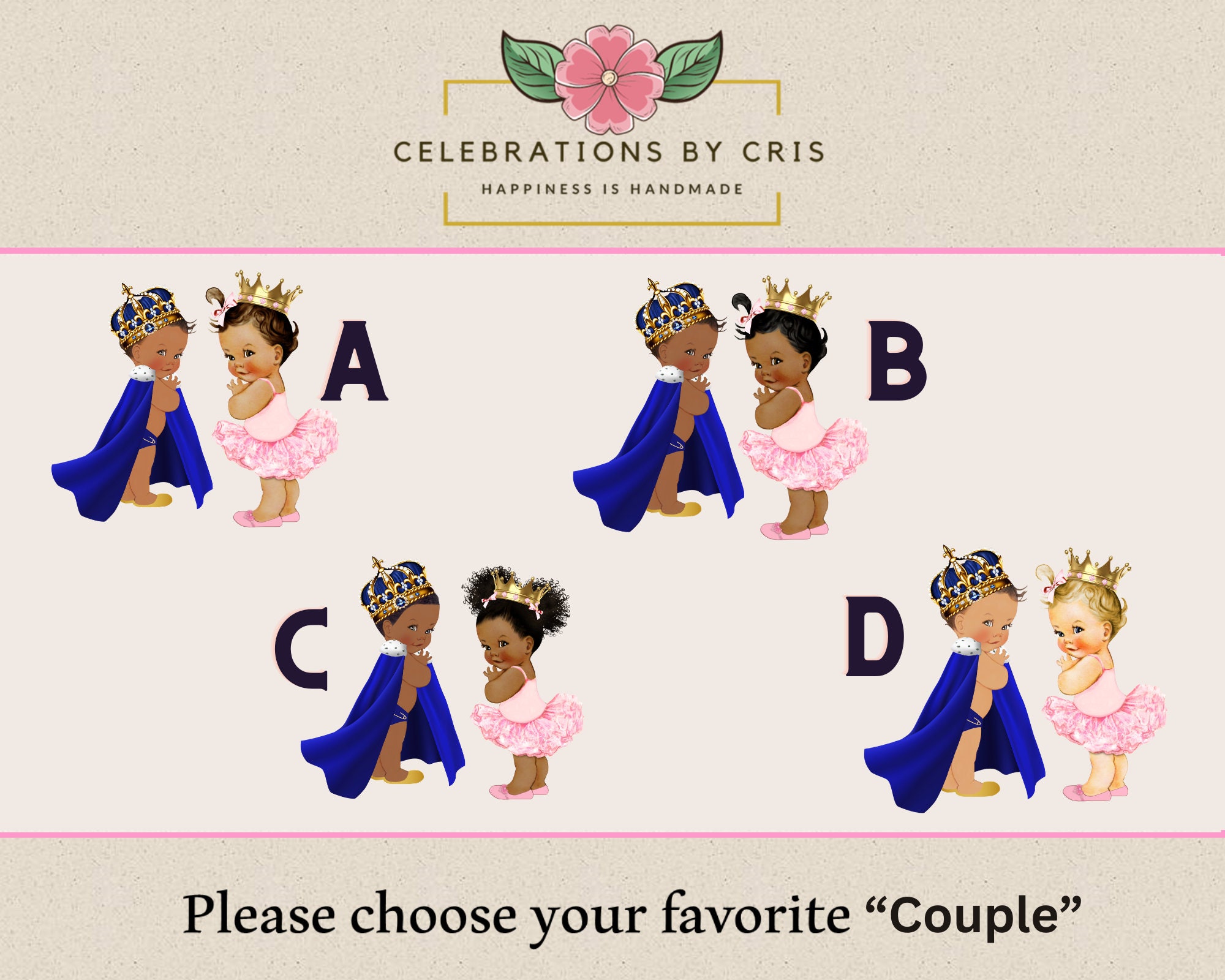 This Gold, Ivory, Royal & Pink Baby Shower Set is made especially for a Baby Shower or a Photo Prop.