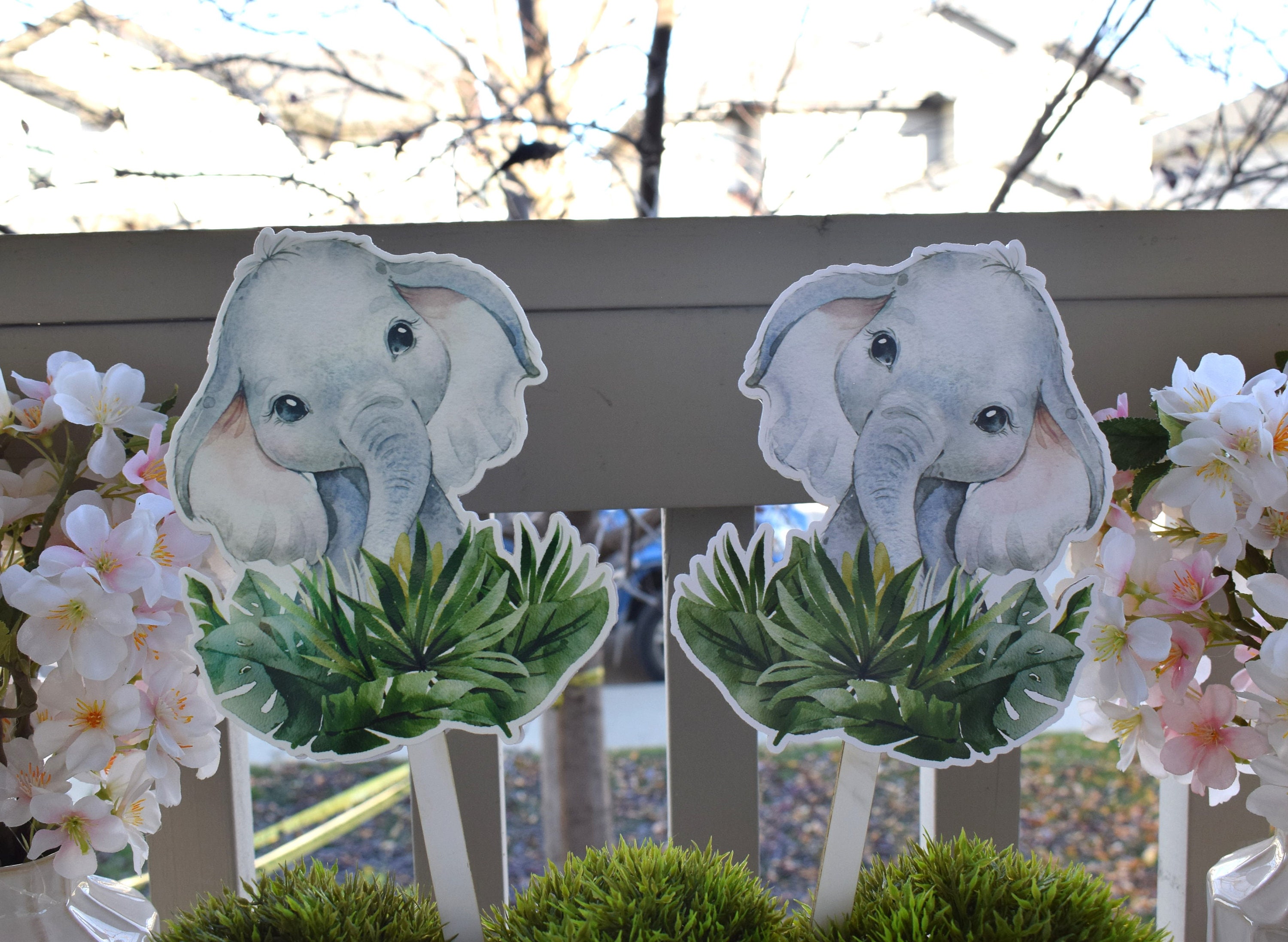 Elephant Cake Toppers, Safari Baby Shower Party, Elephant Baby Shower Centerpieces Decorations, Boy Room Nursery Decor, New Mom Gifts- S0001