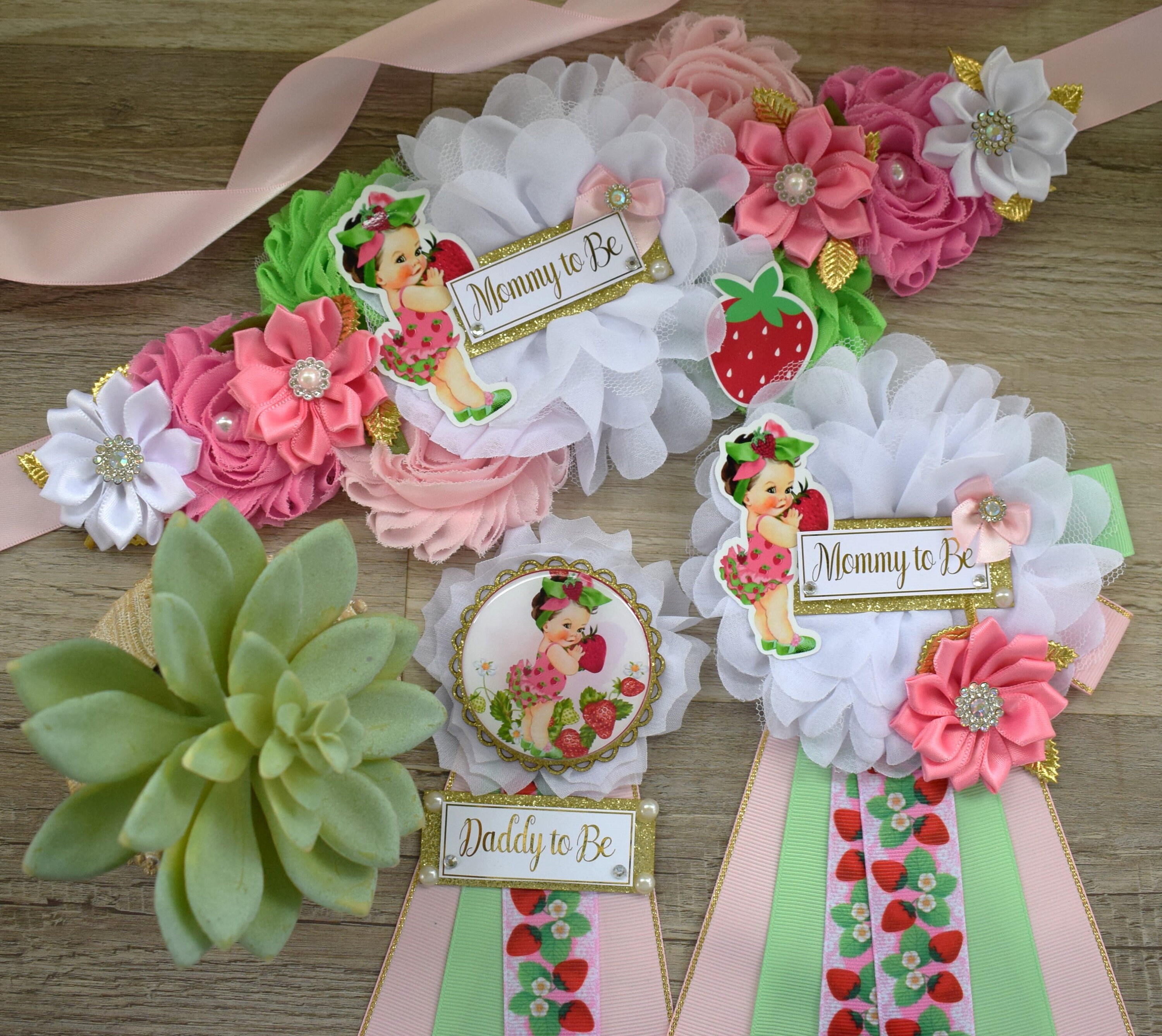 Strawberry Baby Shower, Girl Red Stawberry Maternity Sash, Mommy To Be Ribbon Pin, Daddy To Be Pin, Fruit Baby Shower, Custom
