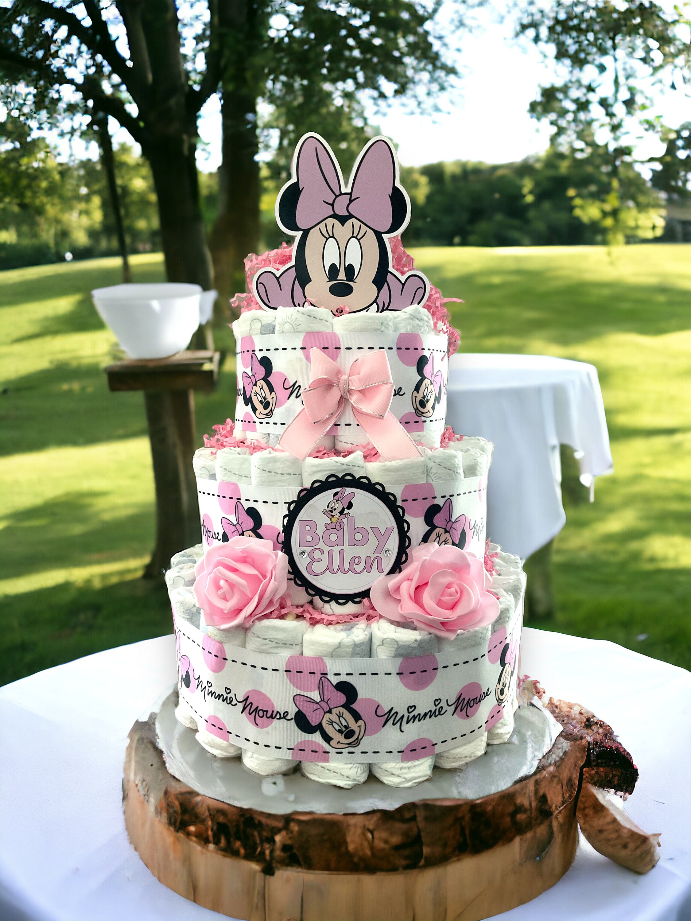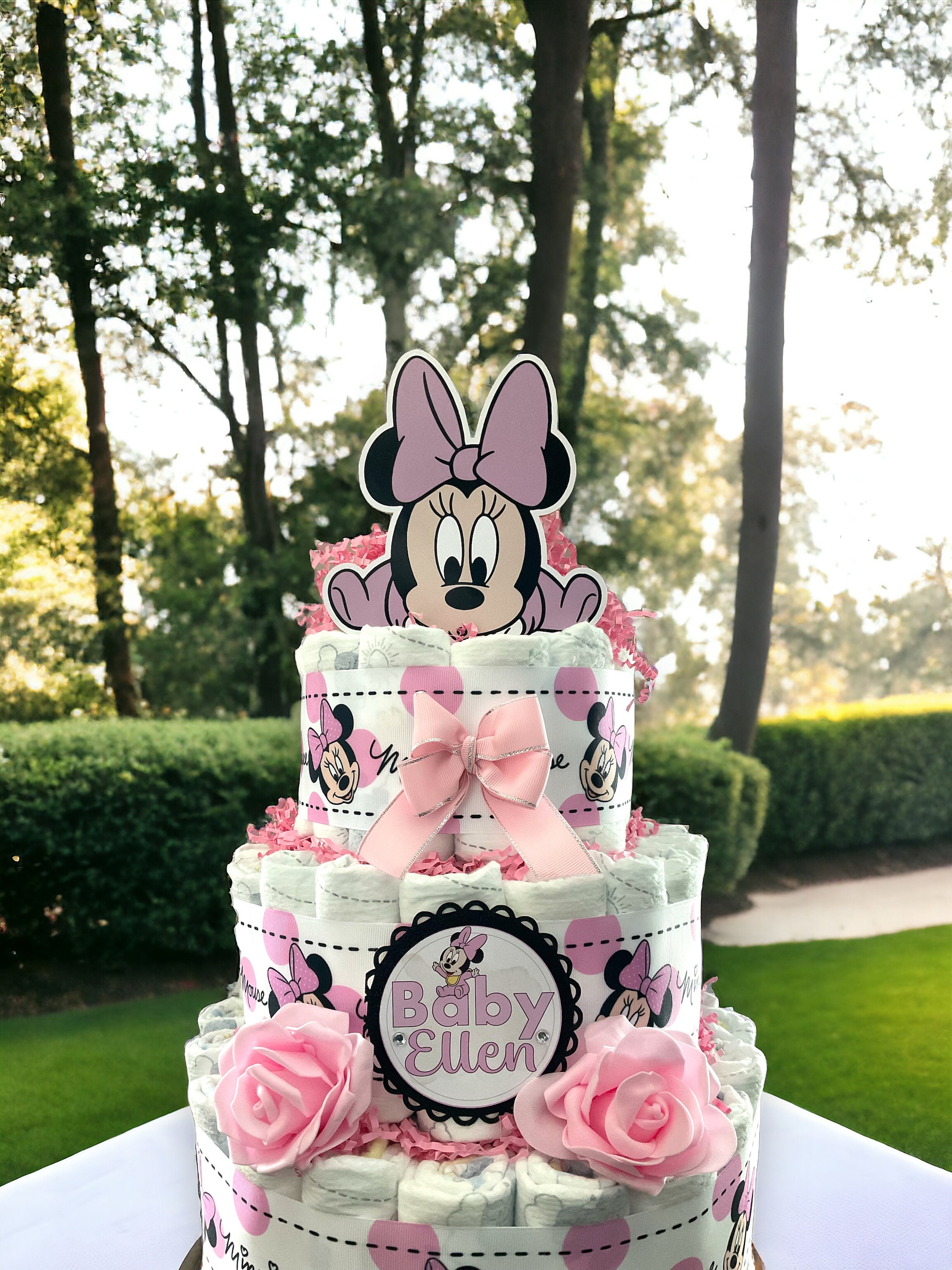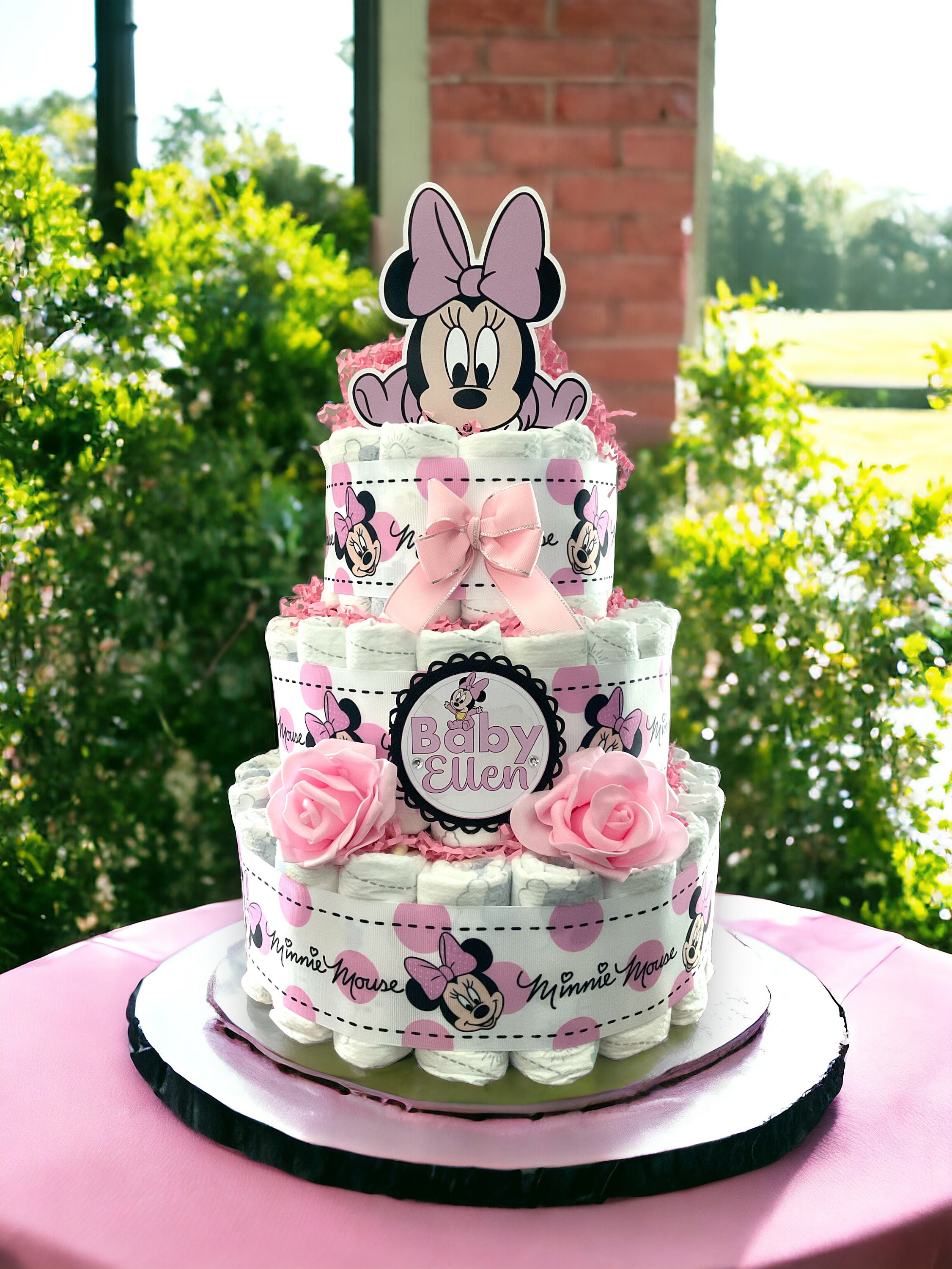 This Gorgeous Mouse Diaper 3 Tiers Cake are the perfect centerpieces for your baby shower. We can match any shower theme.