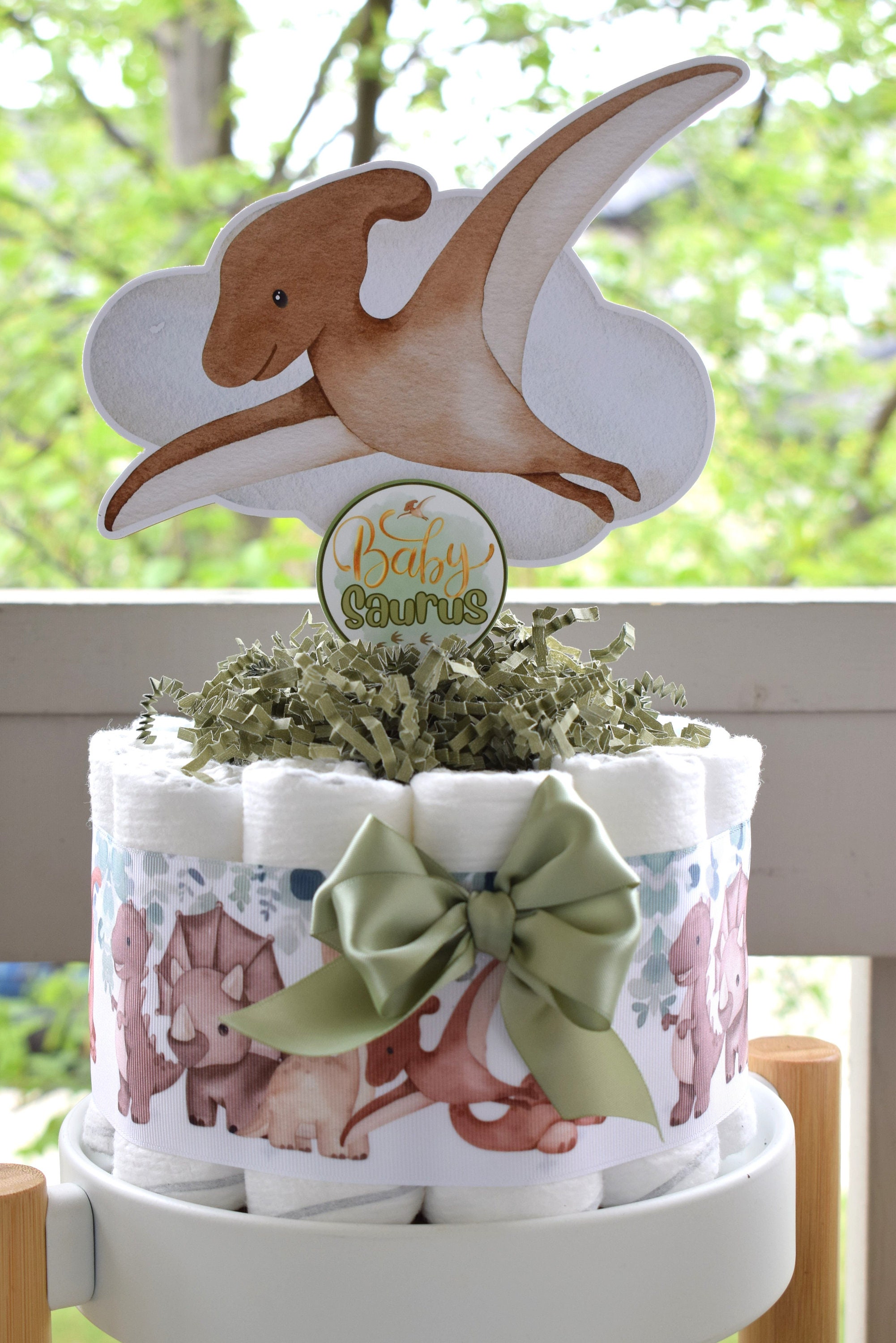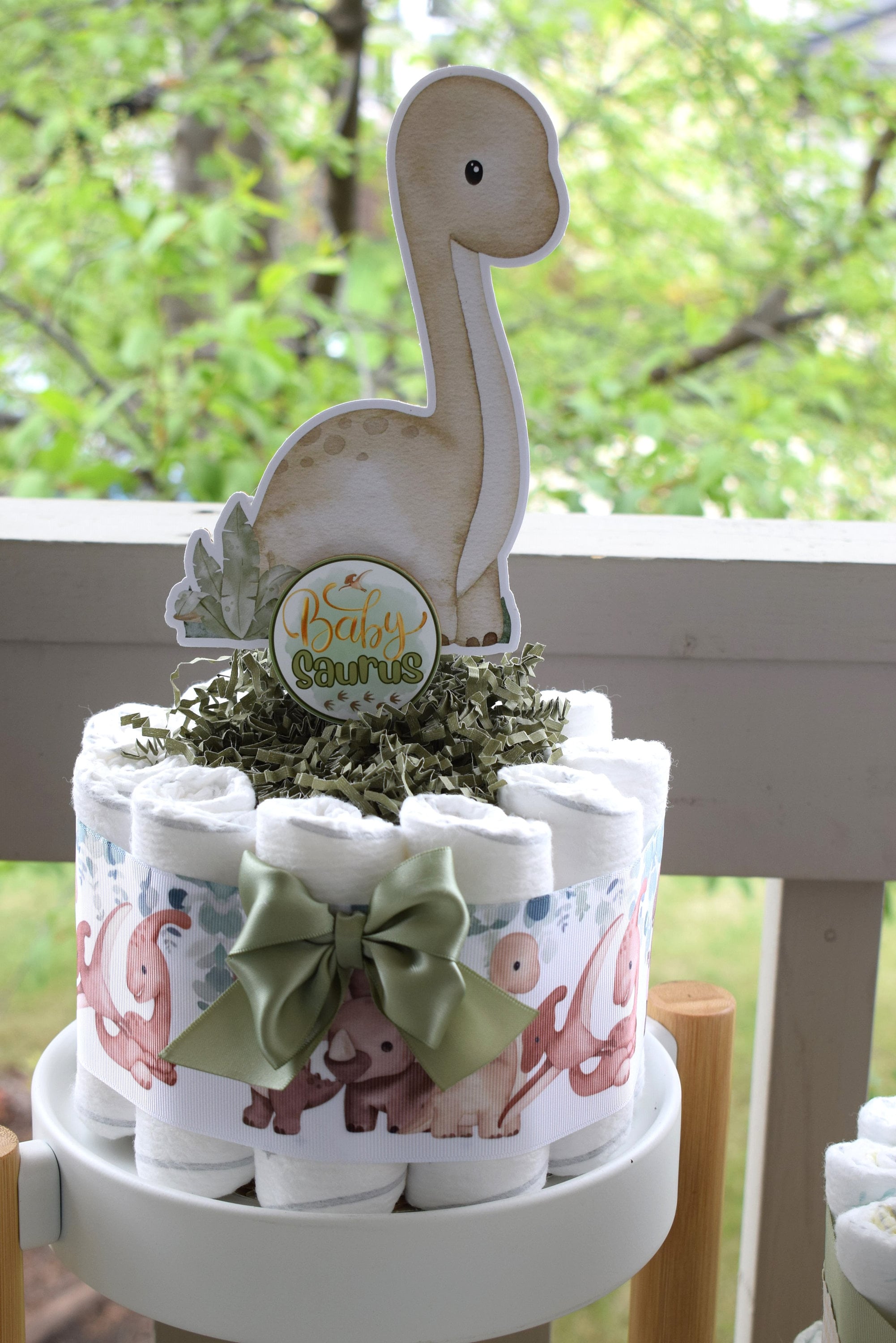 Boho Dinosaur Mini Diaper Cake Set Baby Shower, Neutral Dinosaur Centerpieces Decorations, Boy Room Nursery Decor, New Mom Gifts - S0002