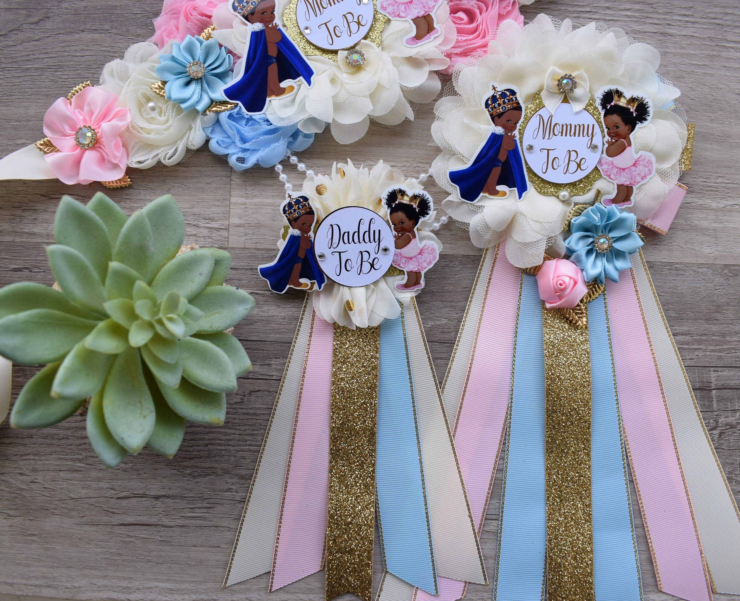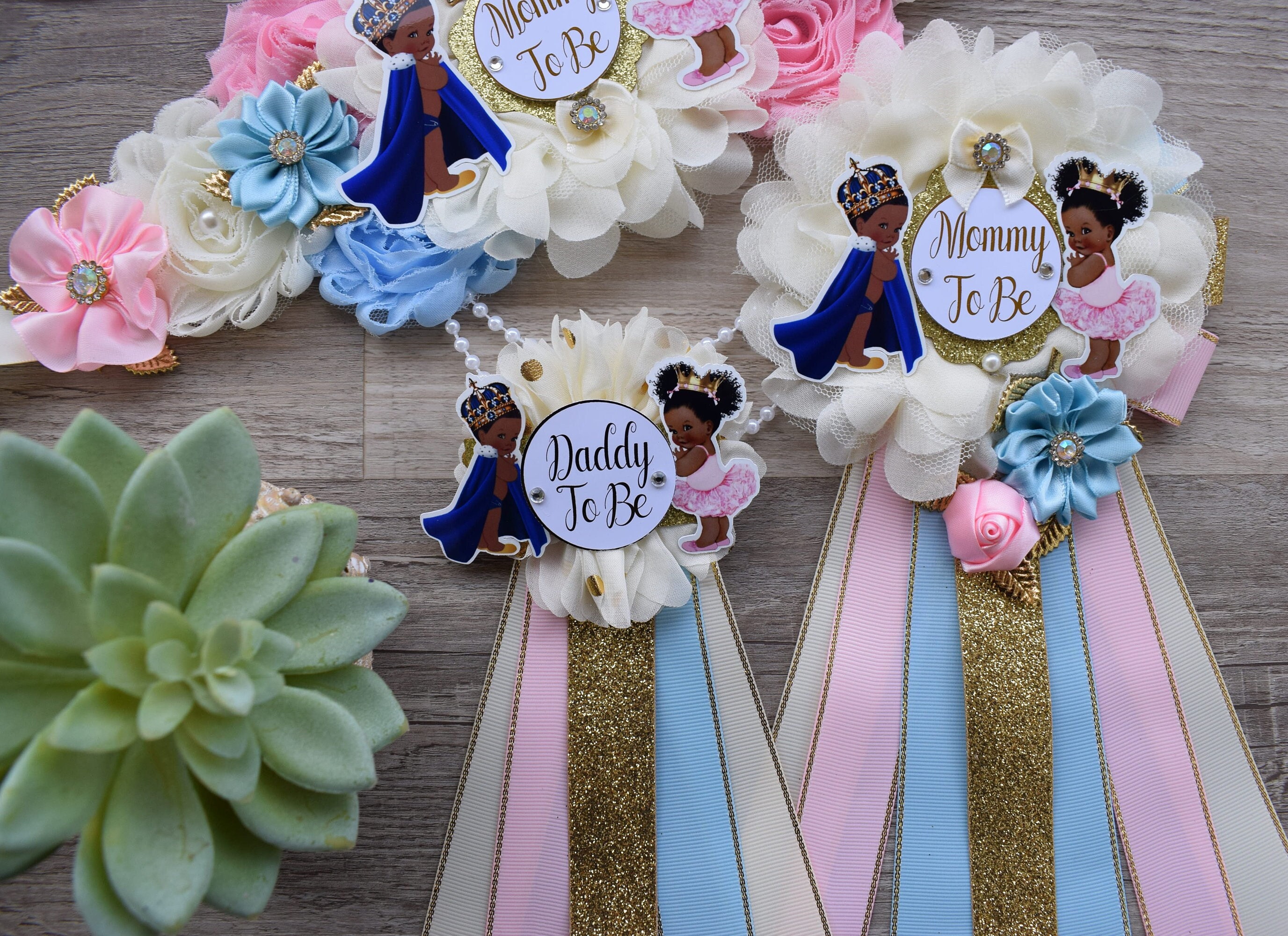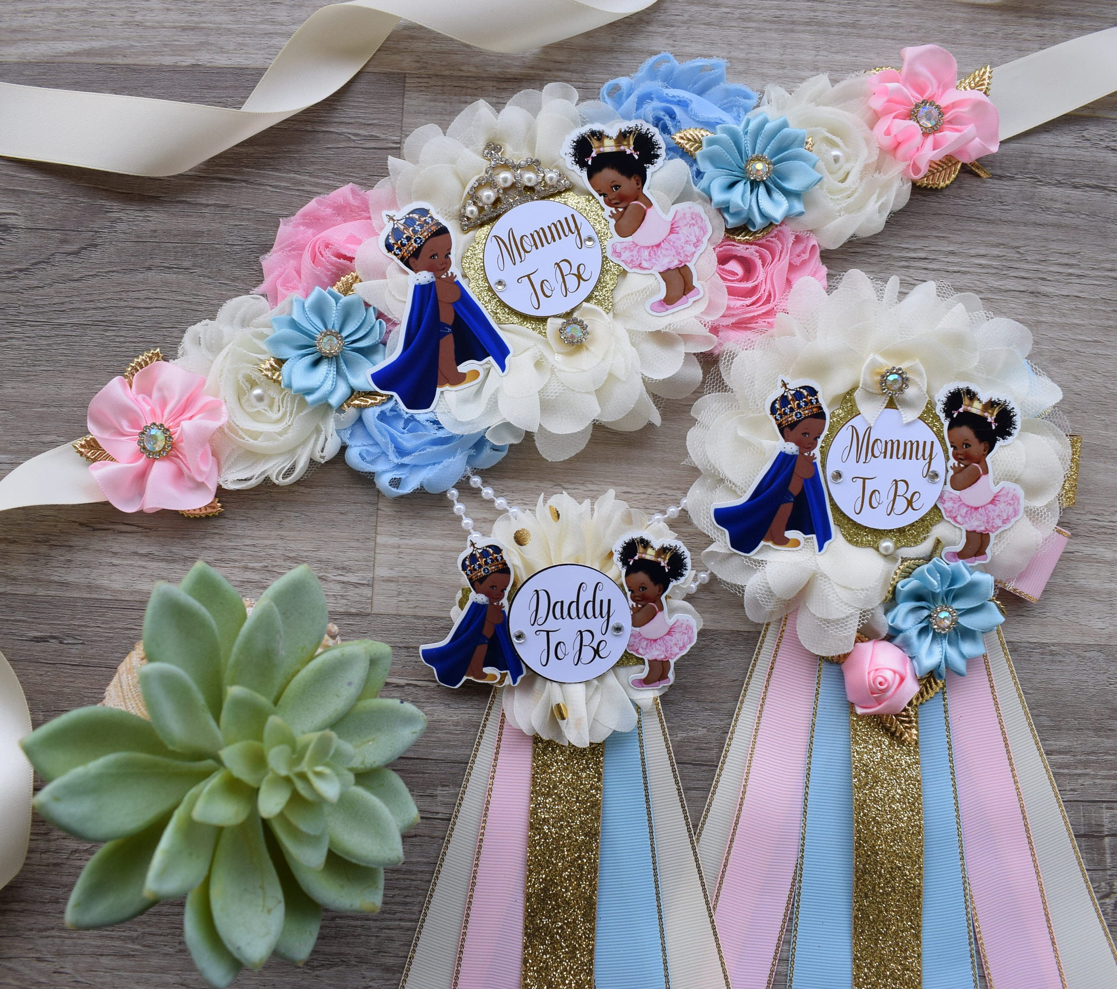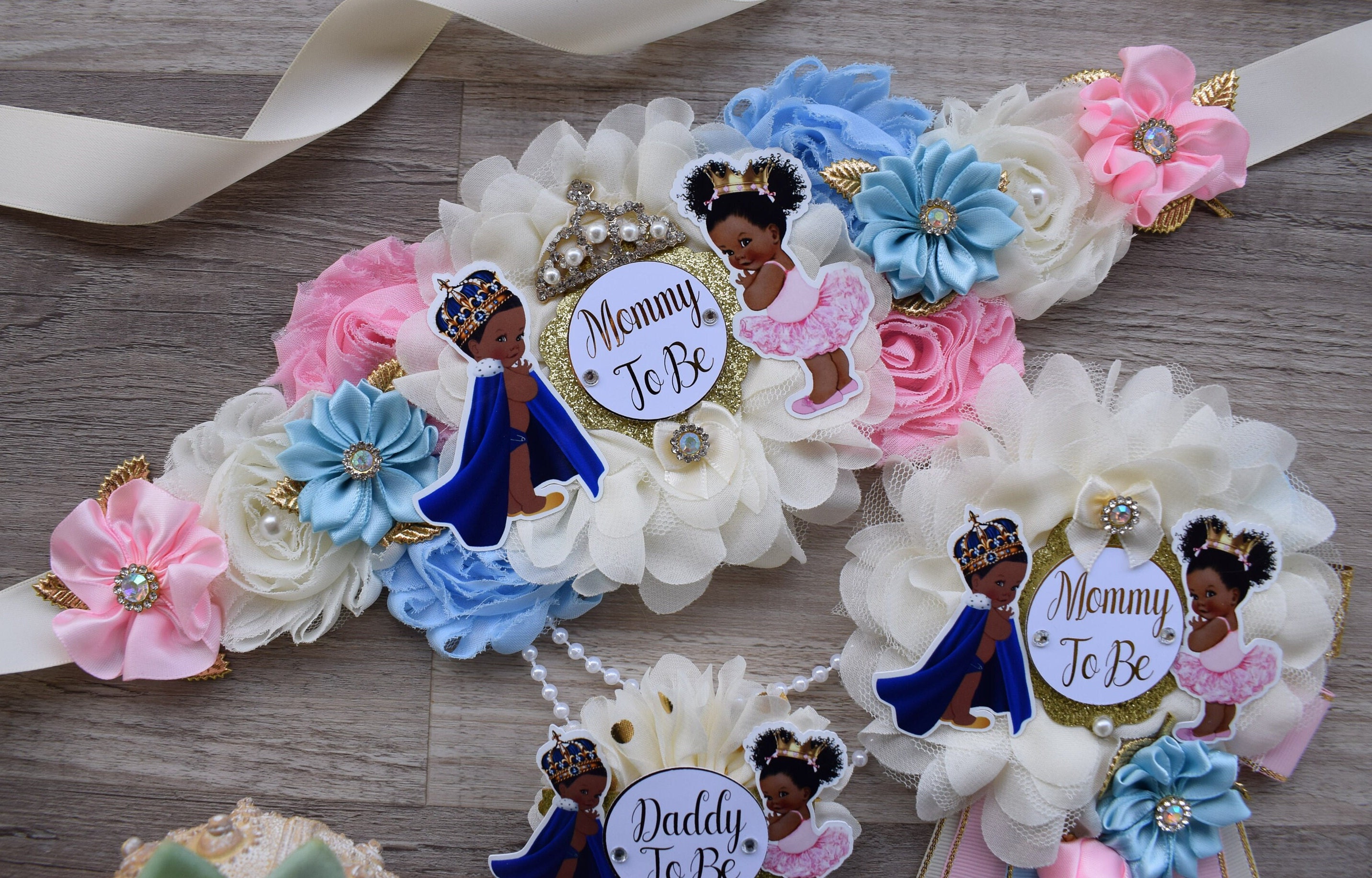 Prince & Princess Baby Shower, Girl and Boy Maternity Sash, Pink Gold Mommy To Be Pin, Daddy To Be Pin, Royal Baby Shower, Baby Shower Gift