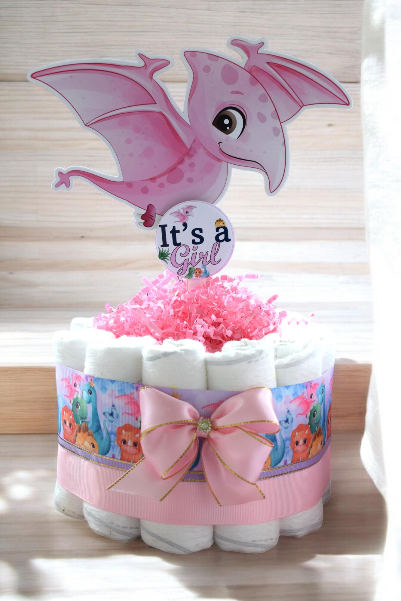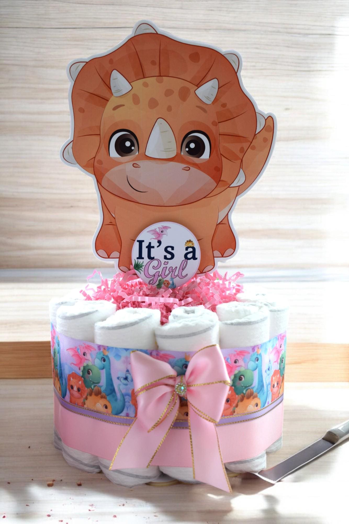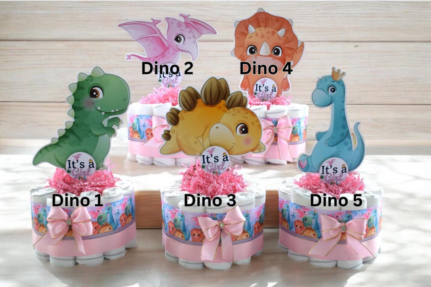 This Gorgeous Girl Dinosaur Mini Diaper Cake are the perfect centerpieces for your baby shower. We can match any shower theme.