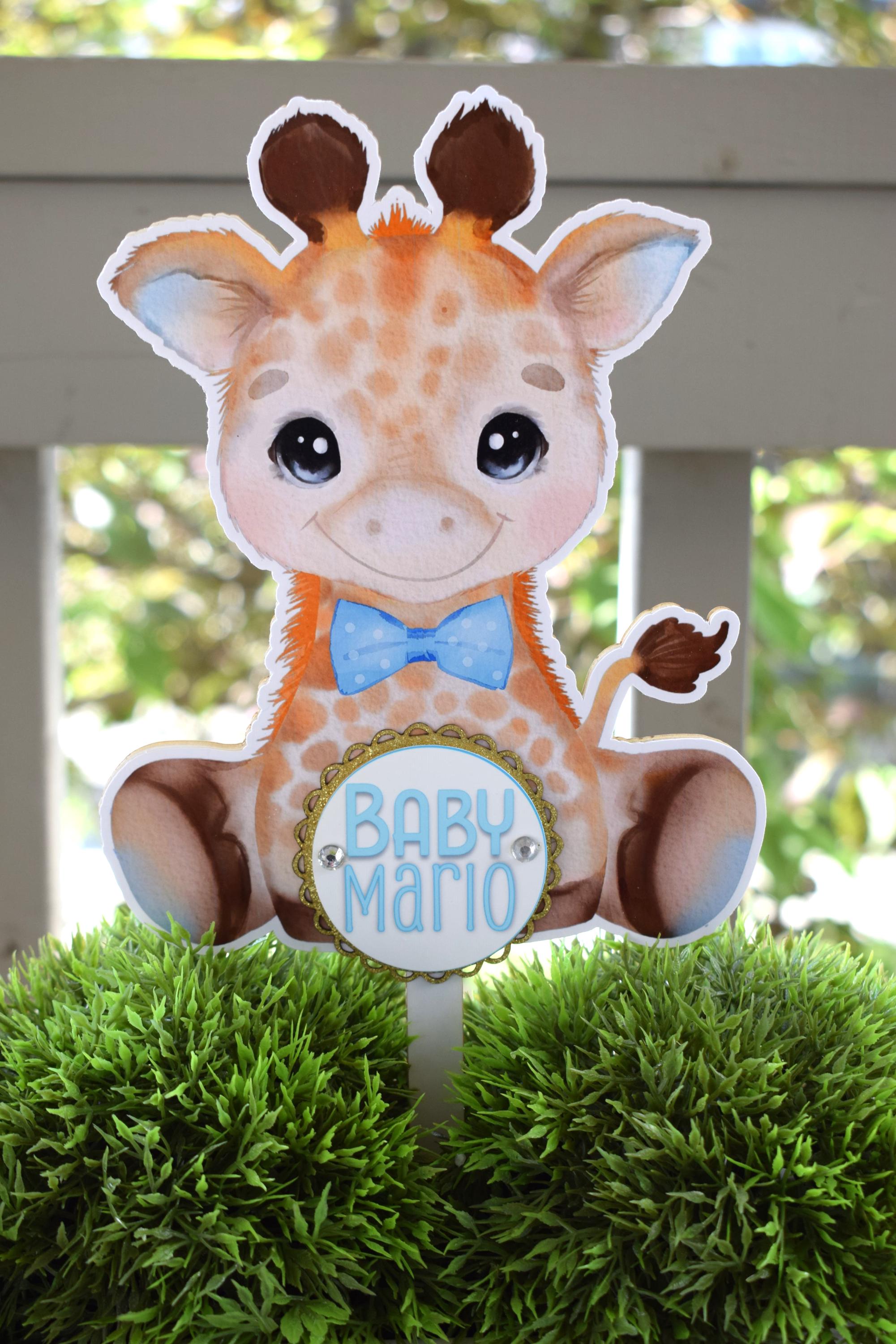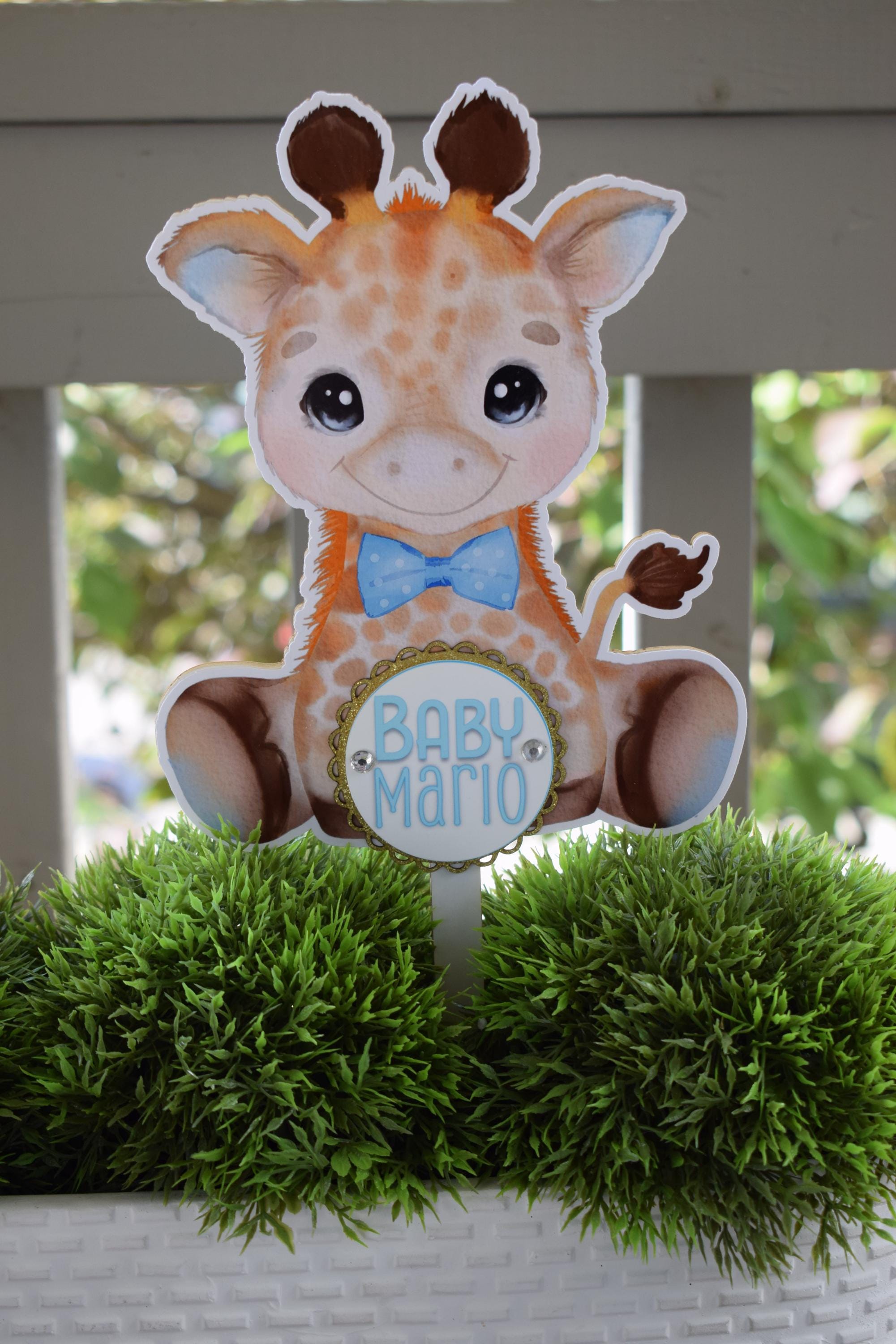Boy Giraffe Cake Toppers, Safari Baby Shower Party, Blue Giraffe Baby Shower Centerpieces Decorations, Boy Room Decor, New Mom Gifts - S0001