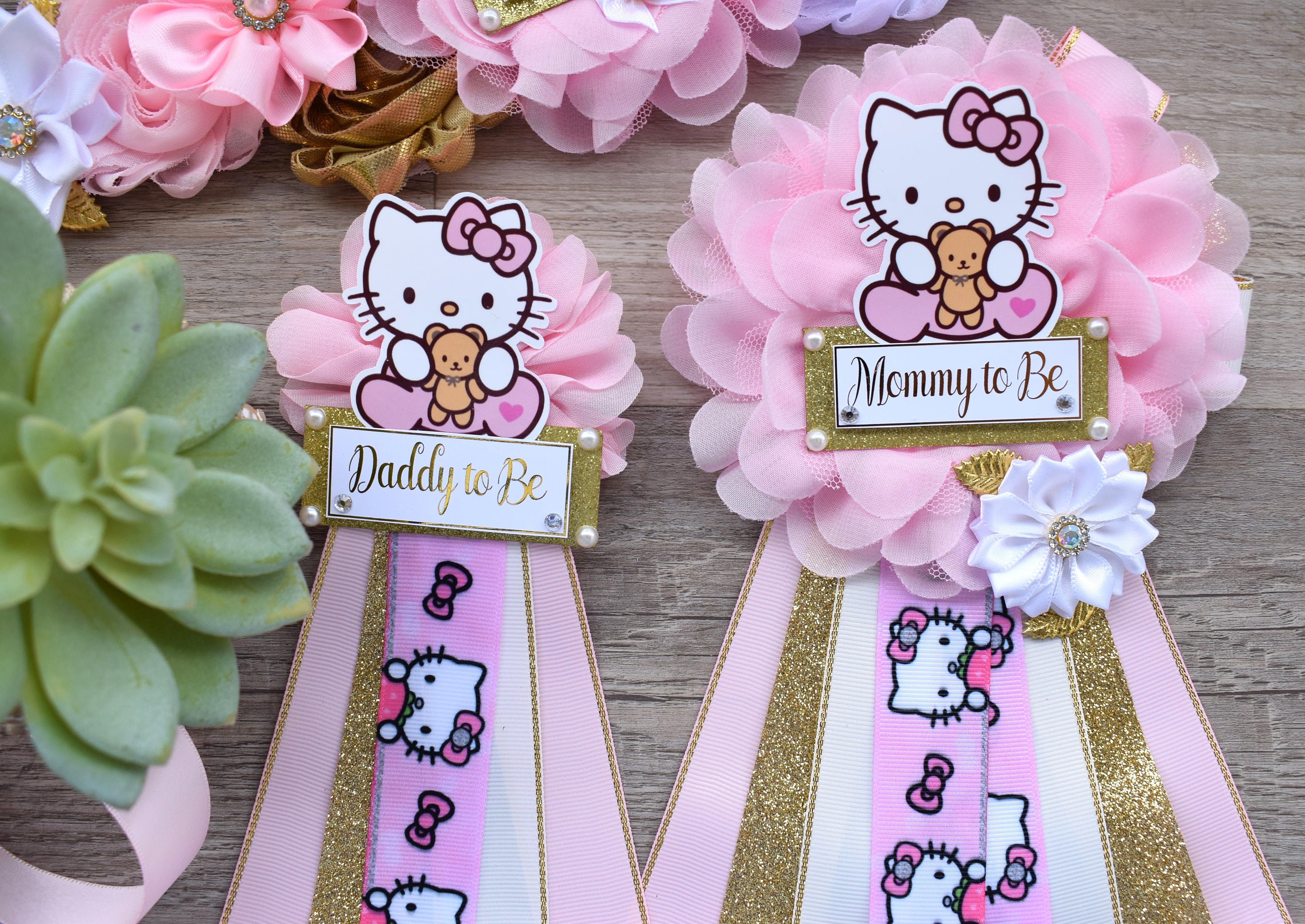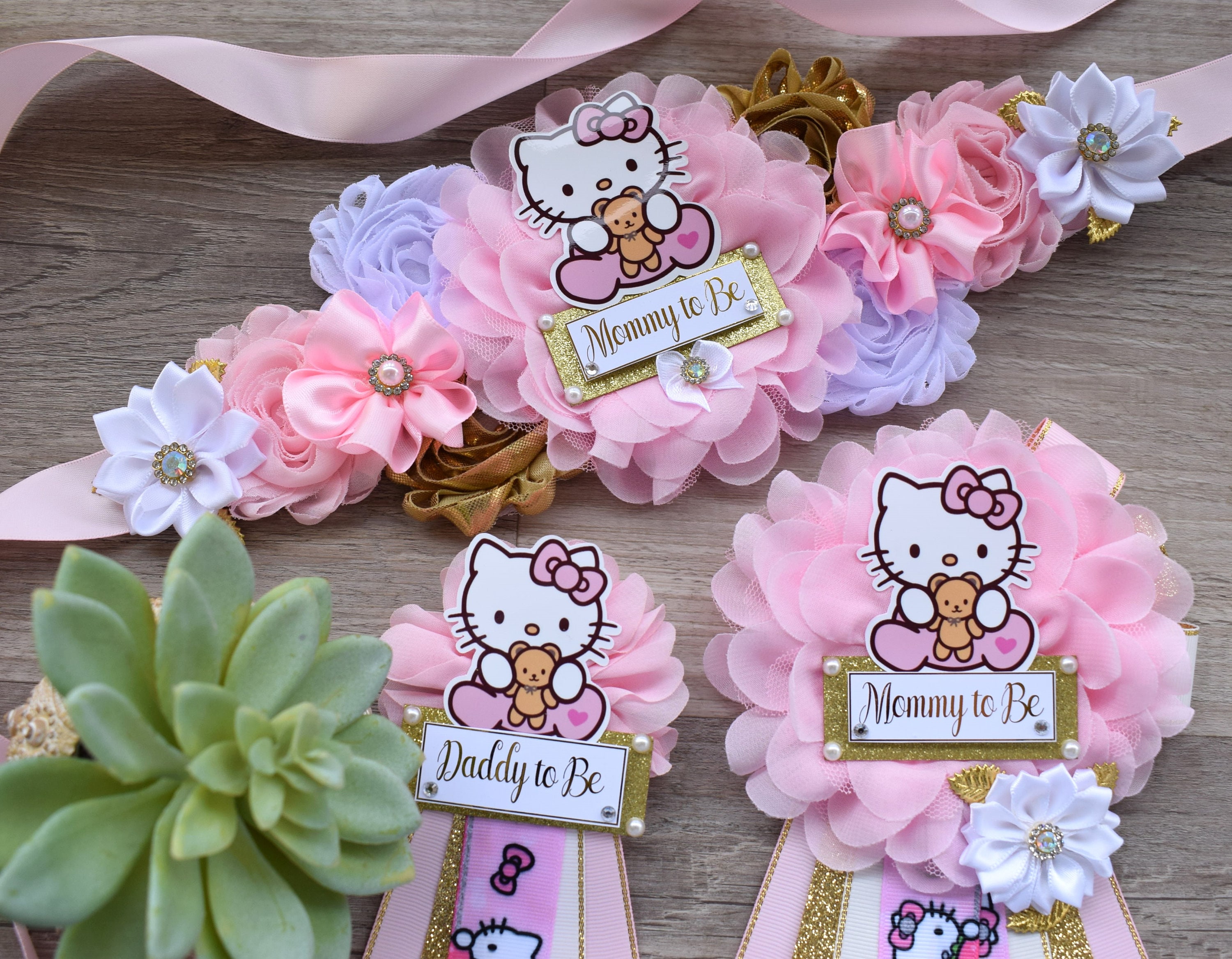 Girl Baby Shower, Maternity Sash, Girl Pink Gold White Baby Shower, Mommy to Be Pin, Daddy To Be Pin