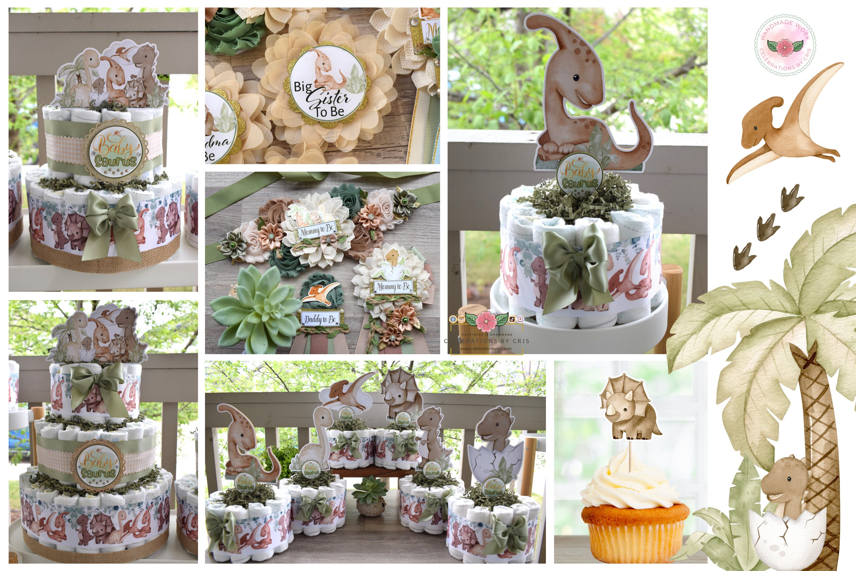 This Boho Dinosaur Diaper Cake Baby Shower was made especially for a Baby Shower or a Photo Prop.