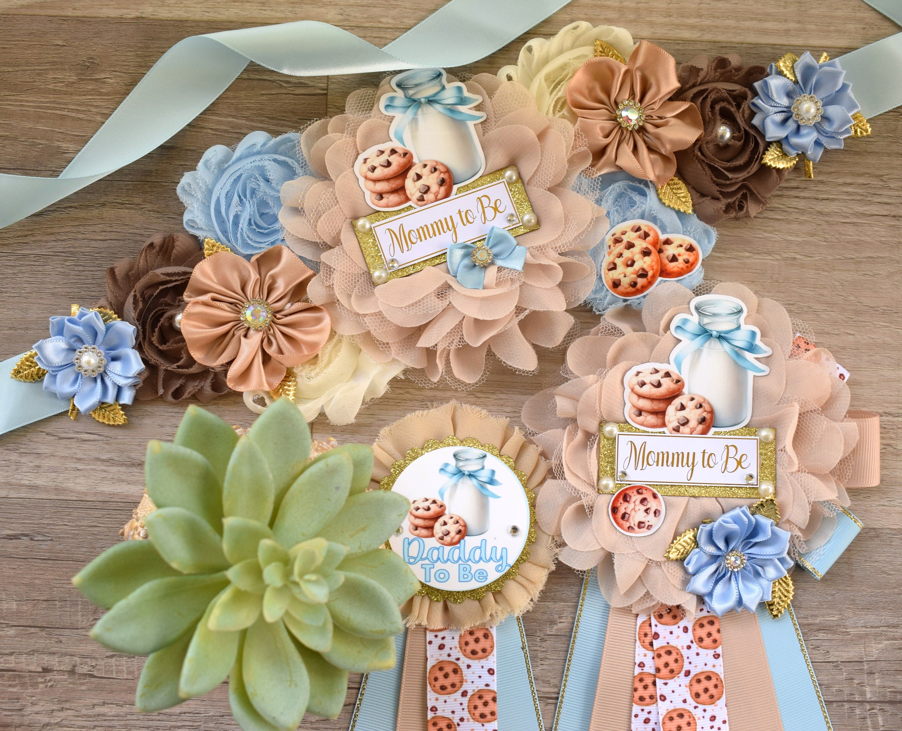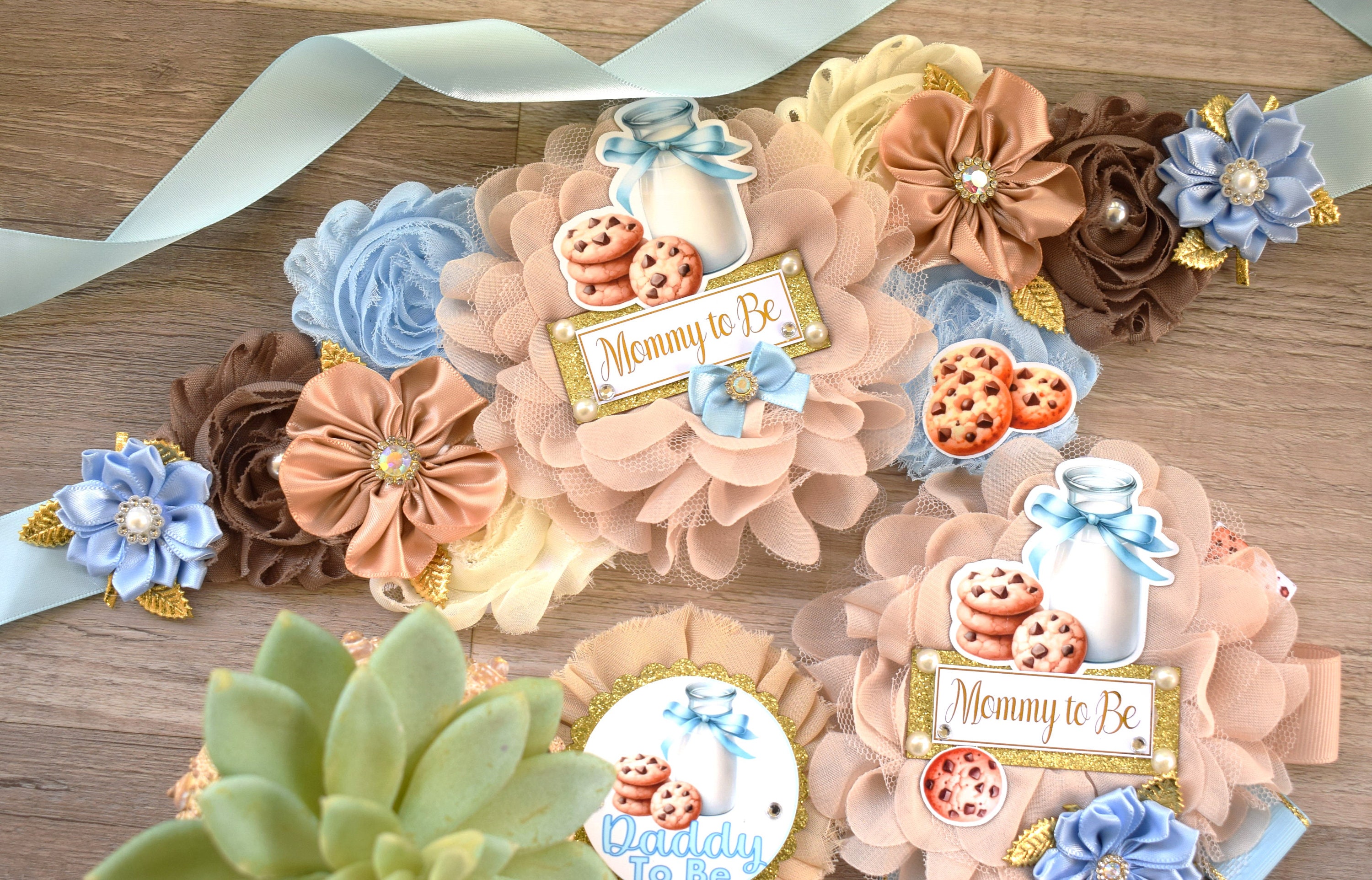 Cookie And Milk Baby Shower, Cookie Maternity Sash, Milk Mommy To Be Pin, Daddy To Be Pin, Custom Welcome