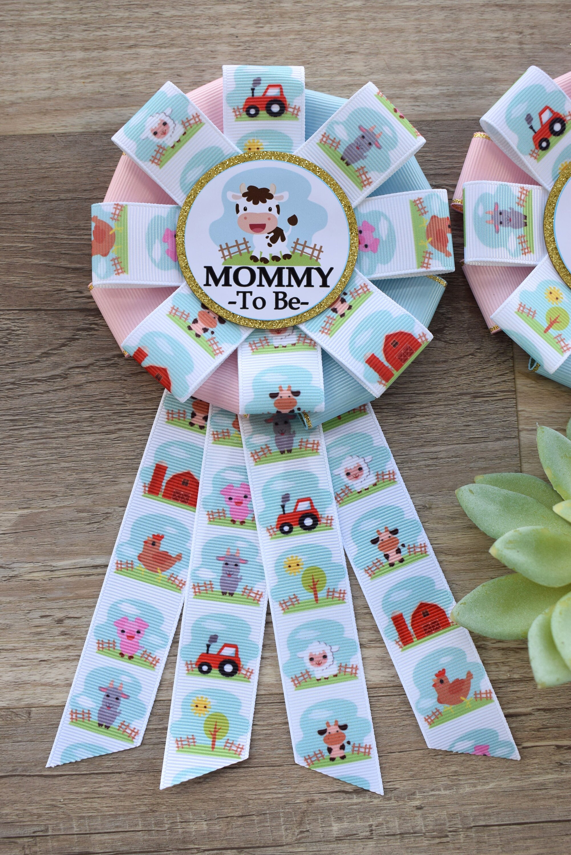 Farm Barn Animal Baby Shower, Cow Sheep Horse Mommy To Be Ribbon Pin, Daddy To Be Ribbon Pin