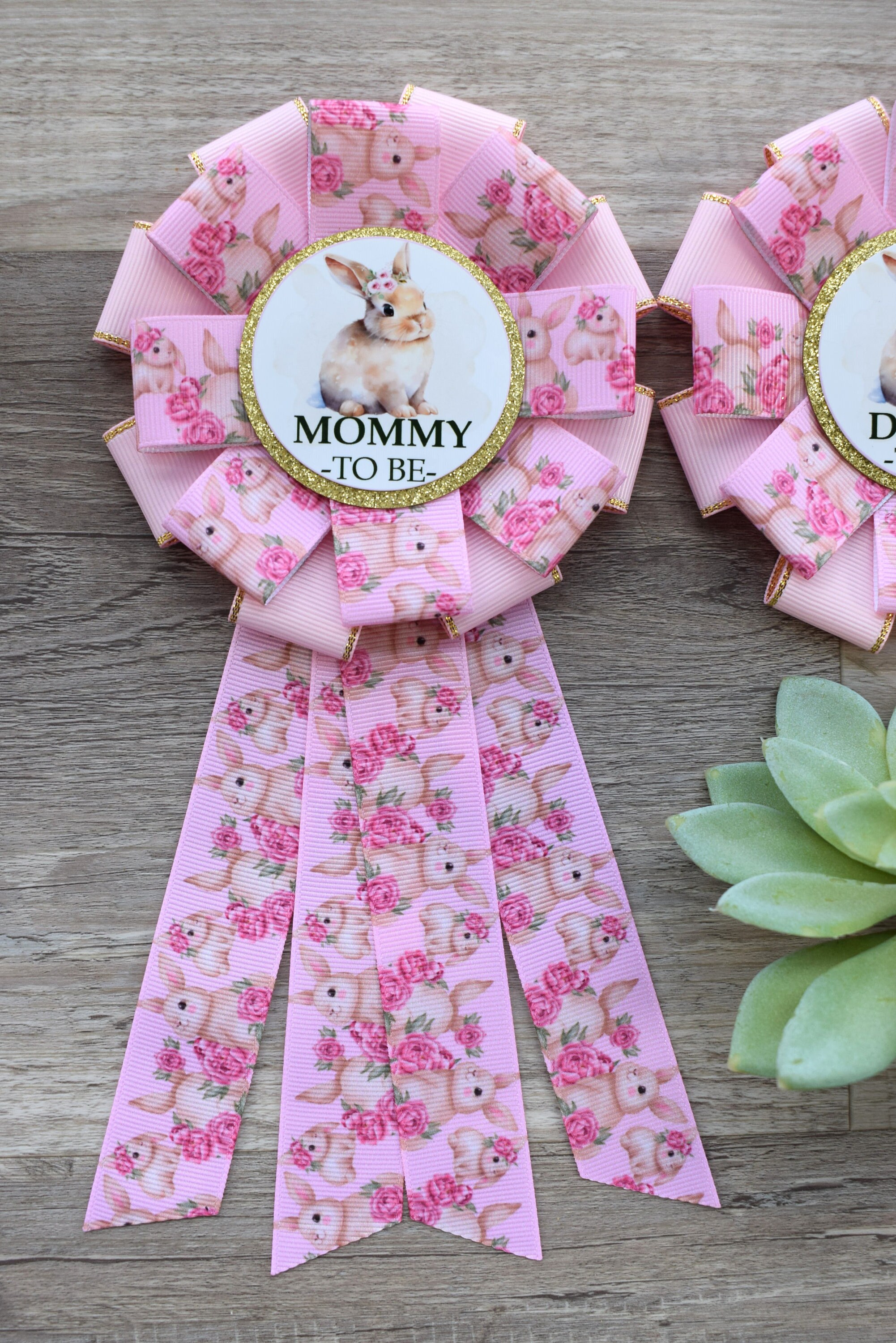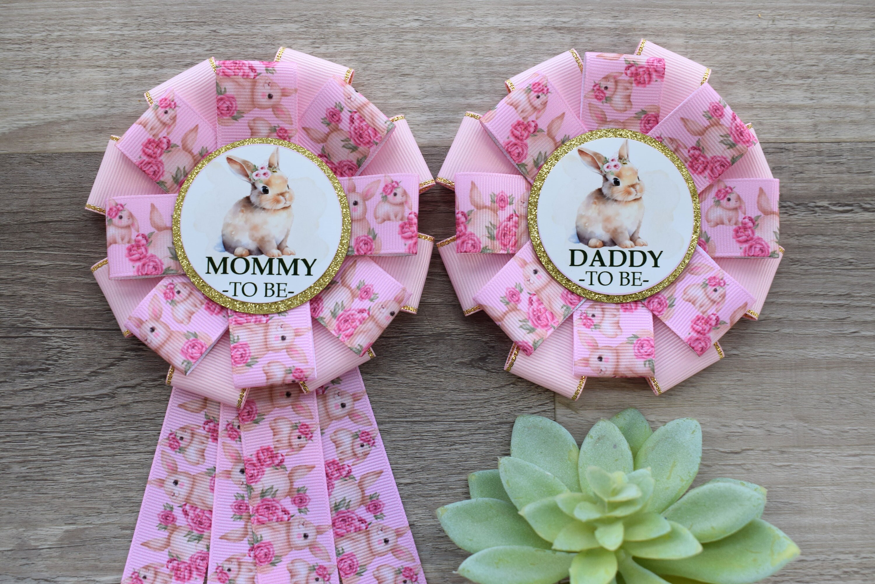 Pink Girl Rabbit Baby Shower, Easter Baby Shower, Girl Bunny Mommy to Be Ribbon Pin, Daddy To Be Pin