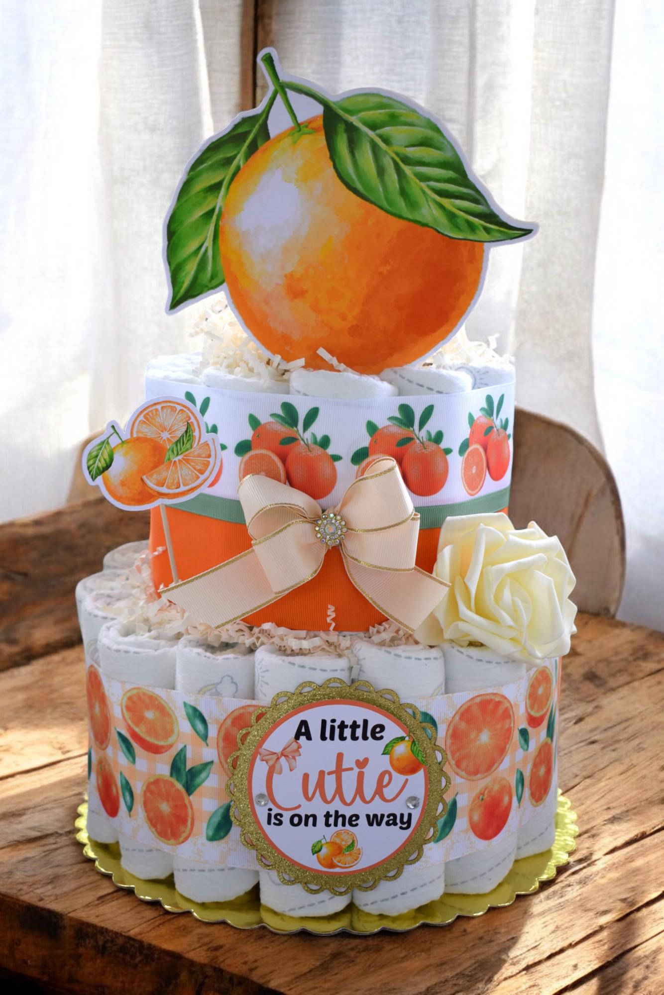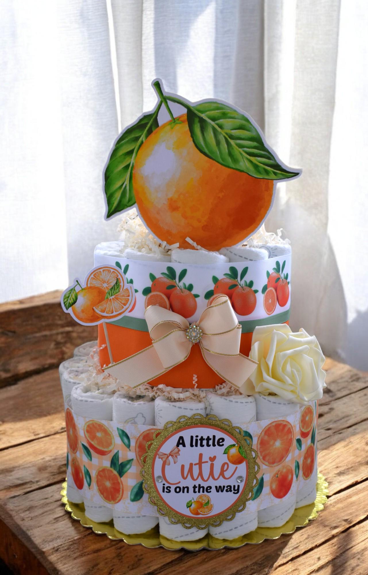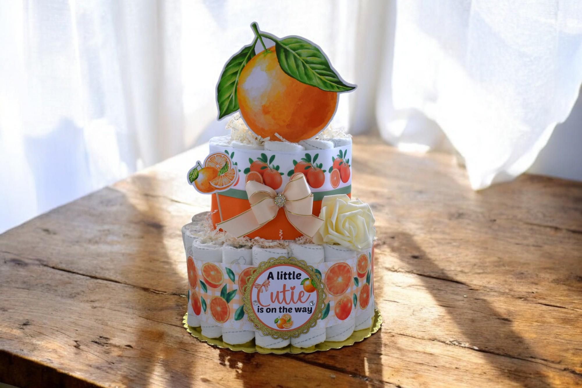 Orange Diaper Cake Baby Shower, A Little Cutie Is On The Way, Orange 2 Tier Diaper Cake Centerpieces Decor, Room Nursery Decor, New Mom Gift