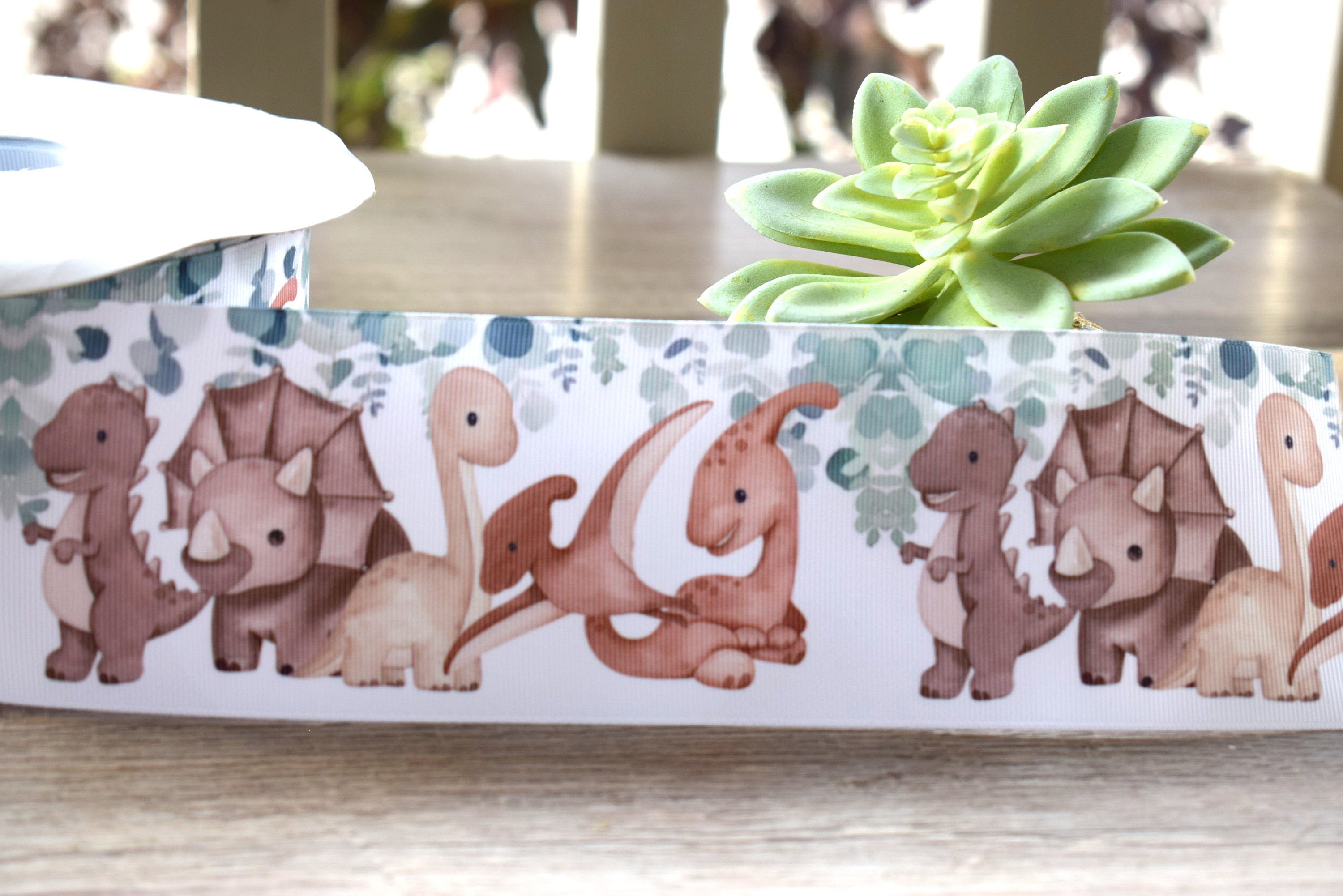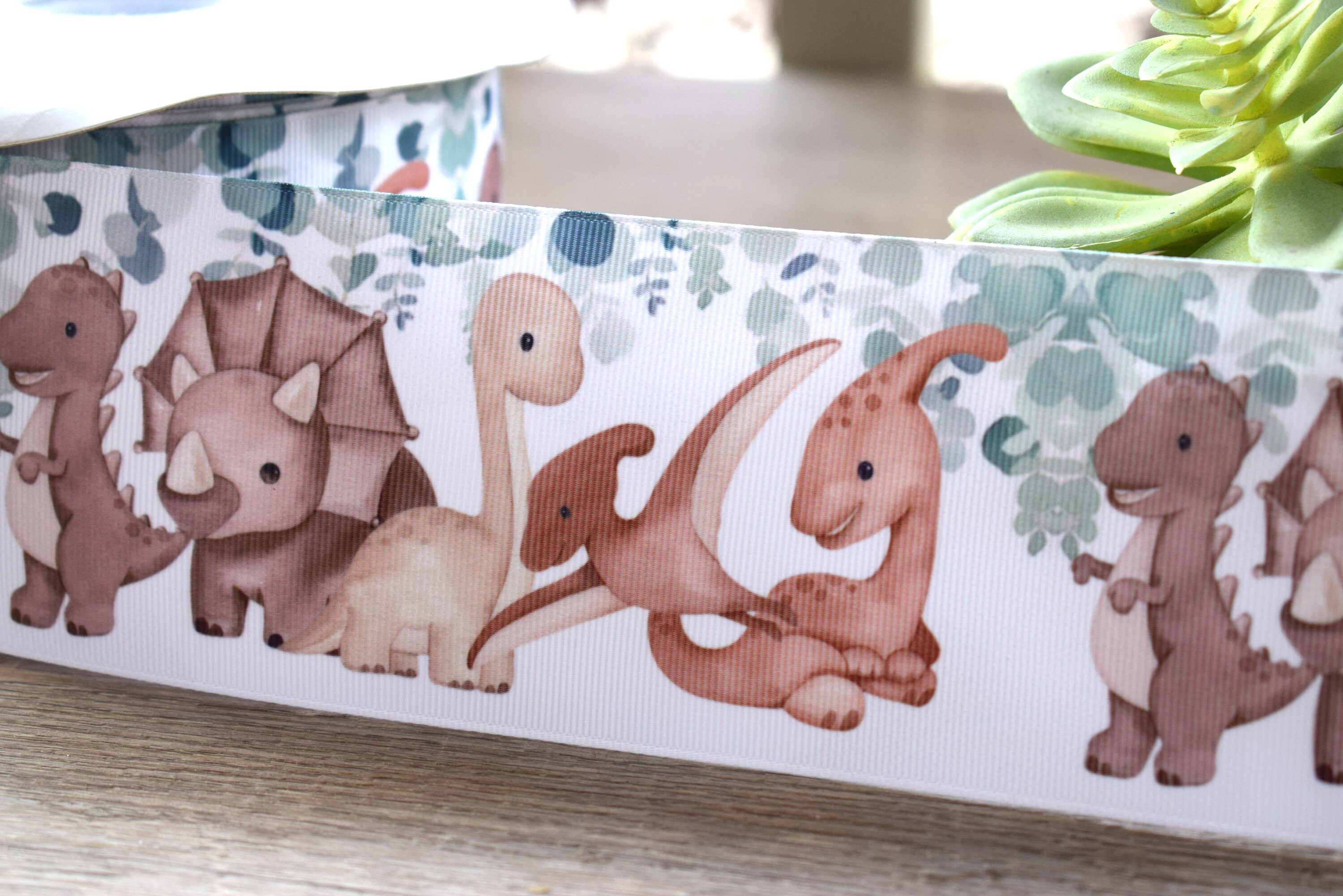 Boho Dinosaur Grosgrain Ribbon, Boy Baby Dinosaurs Ribbon, Neutral Dinosaurs, Grosgrain Ribbon || 3 Yards of Ribbon - 1" (25mm) - 3" (75mm)