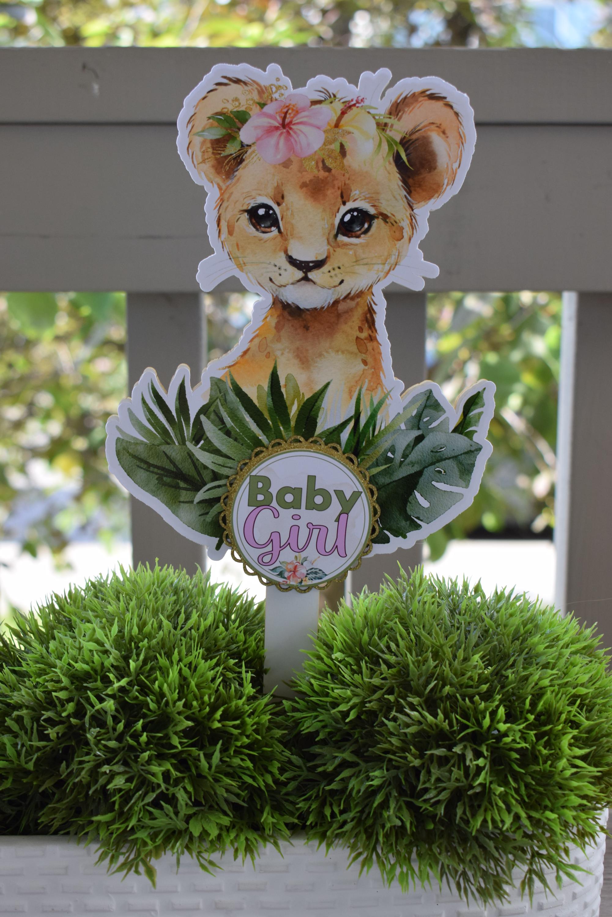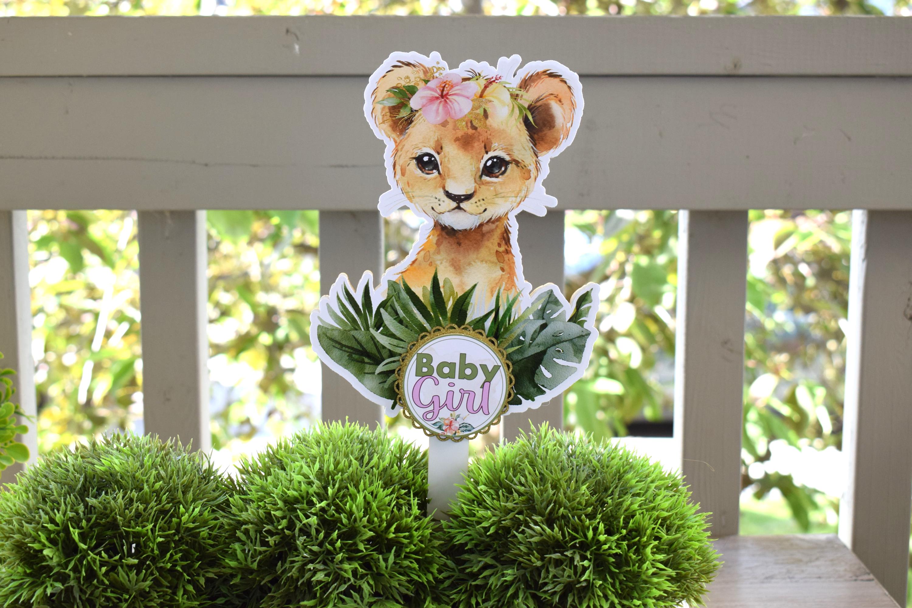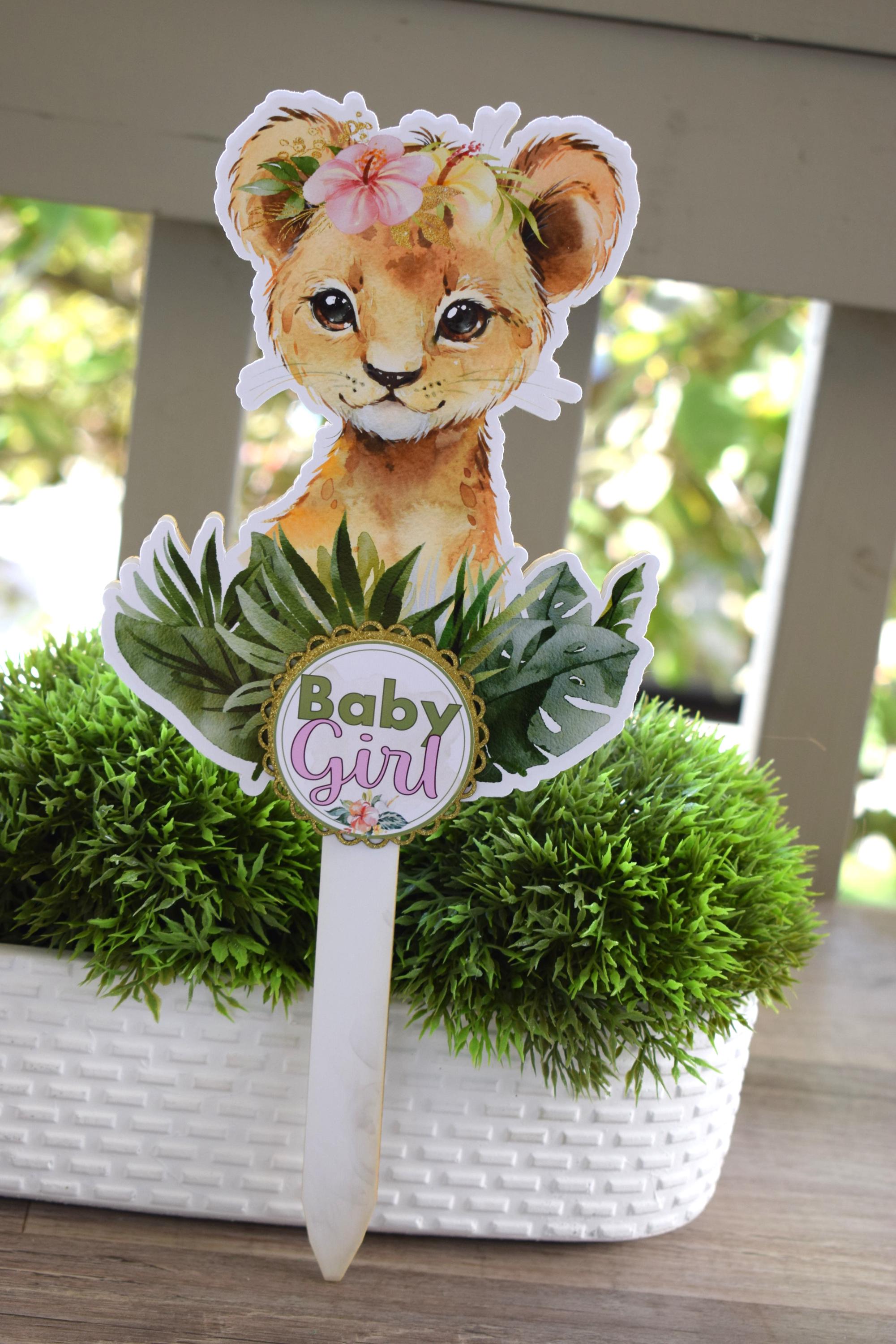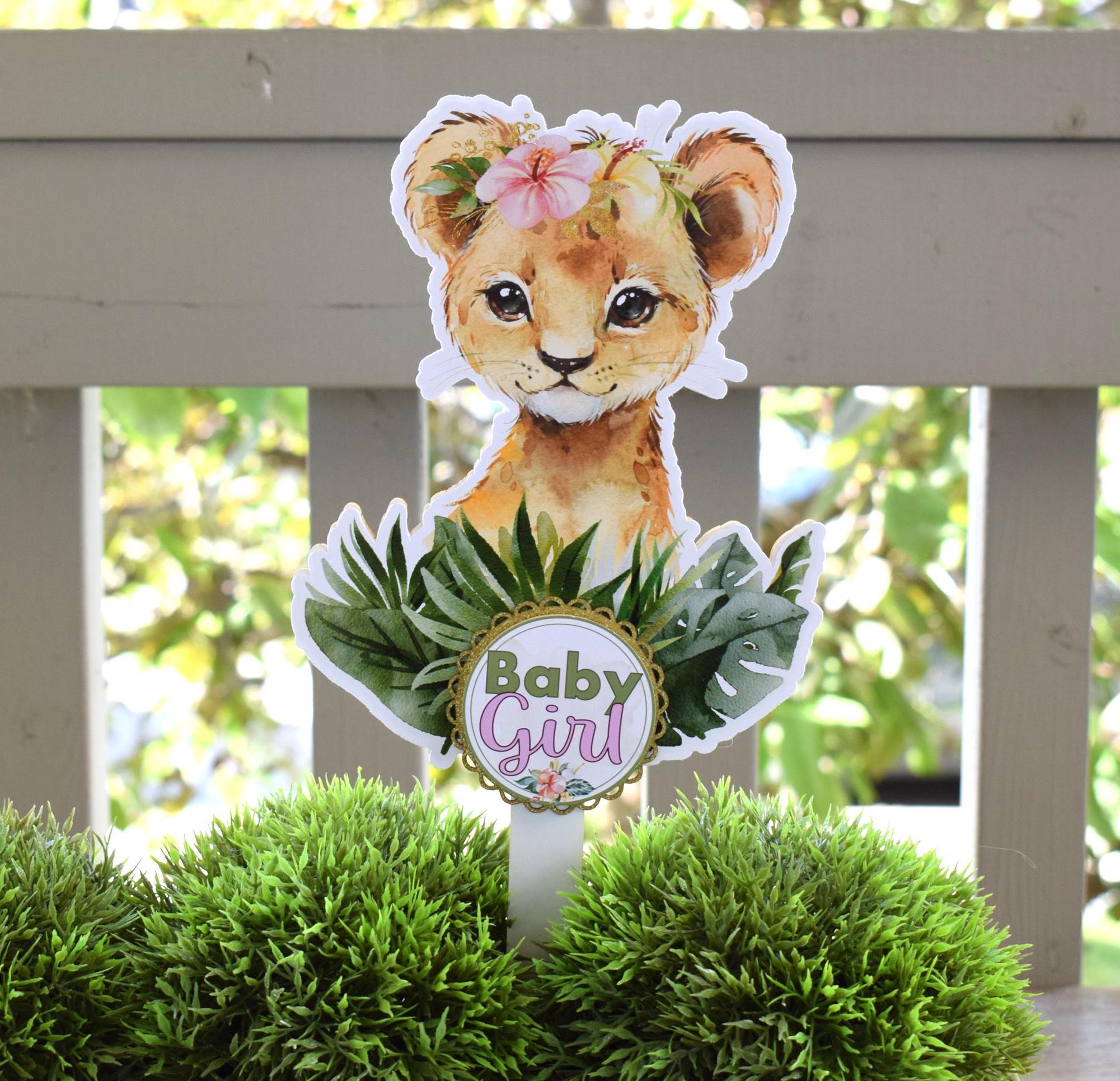 Girl Tropical Lion Cake Toppers, Safari Baby Shower Party, Lion King Baby Shower Centerpieces Decorations, Room Decor, New Mom Gifts - S0001