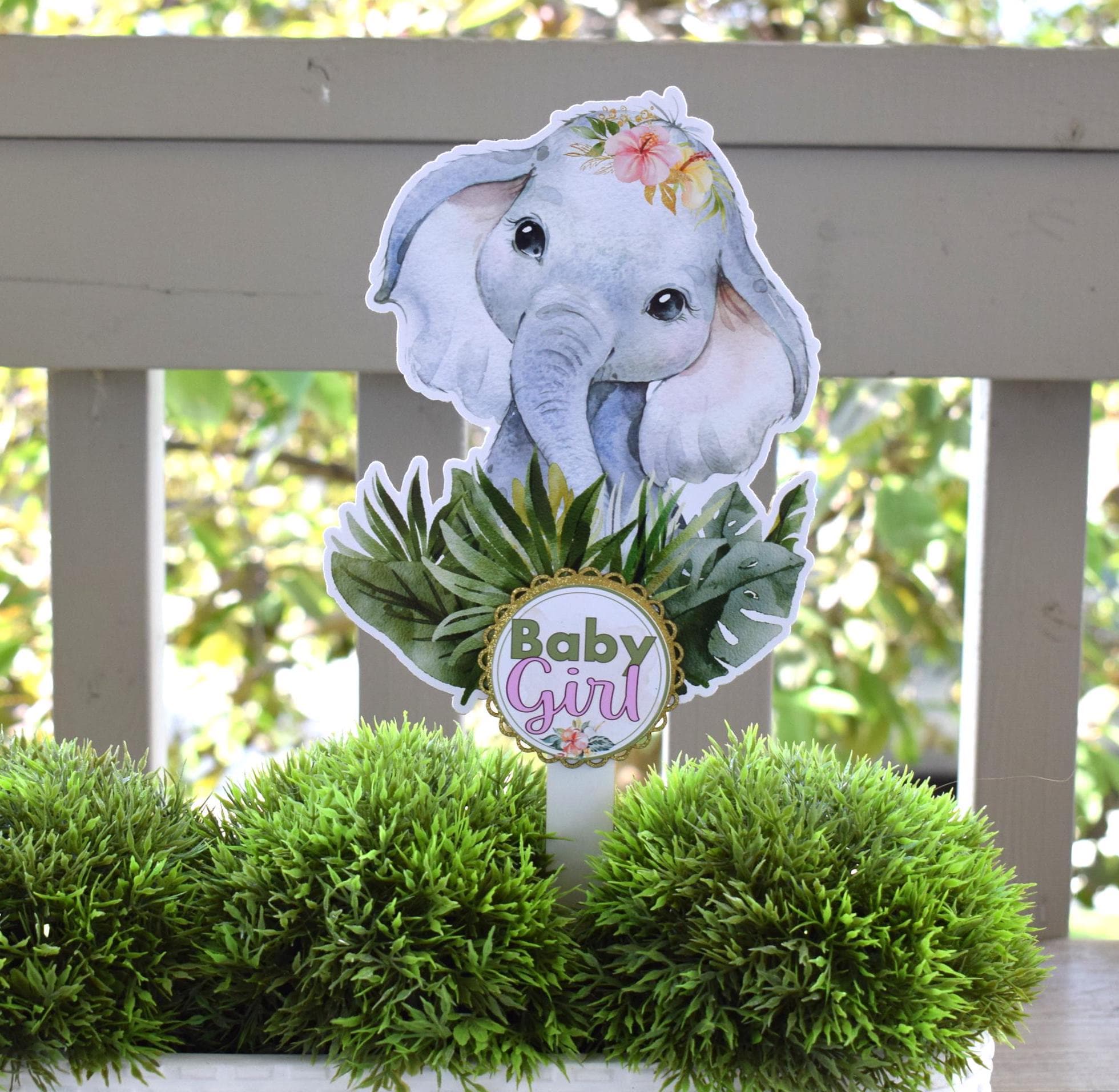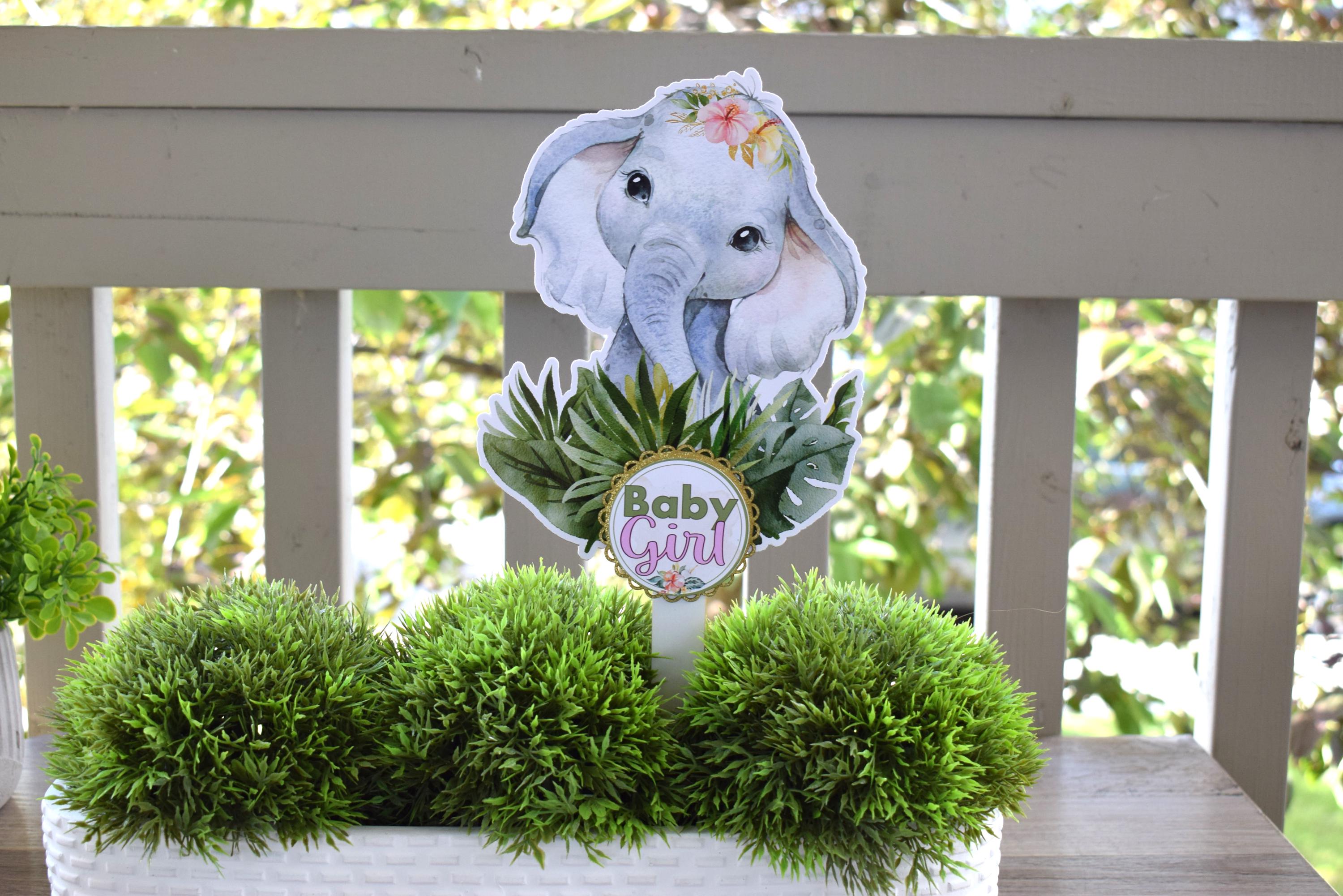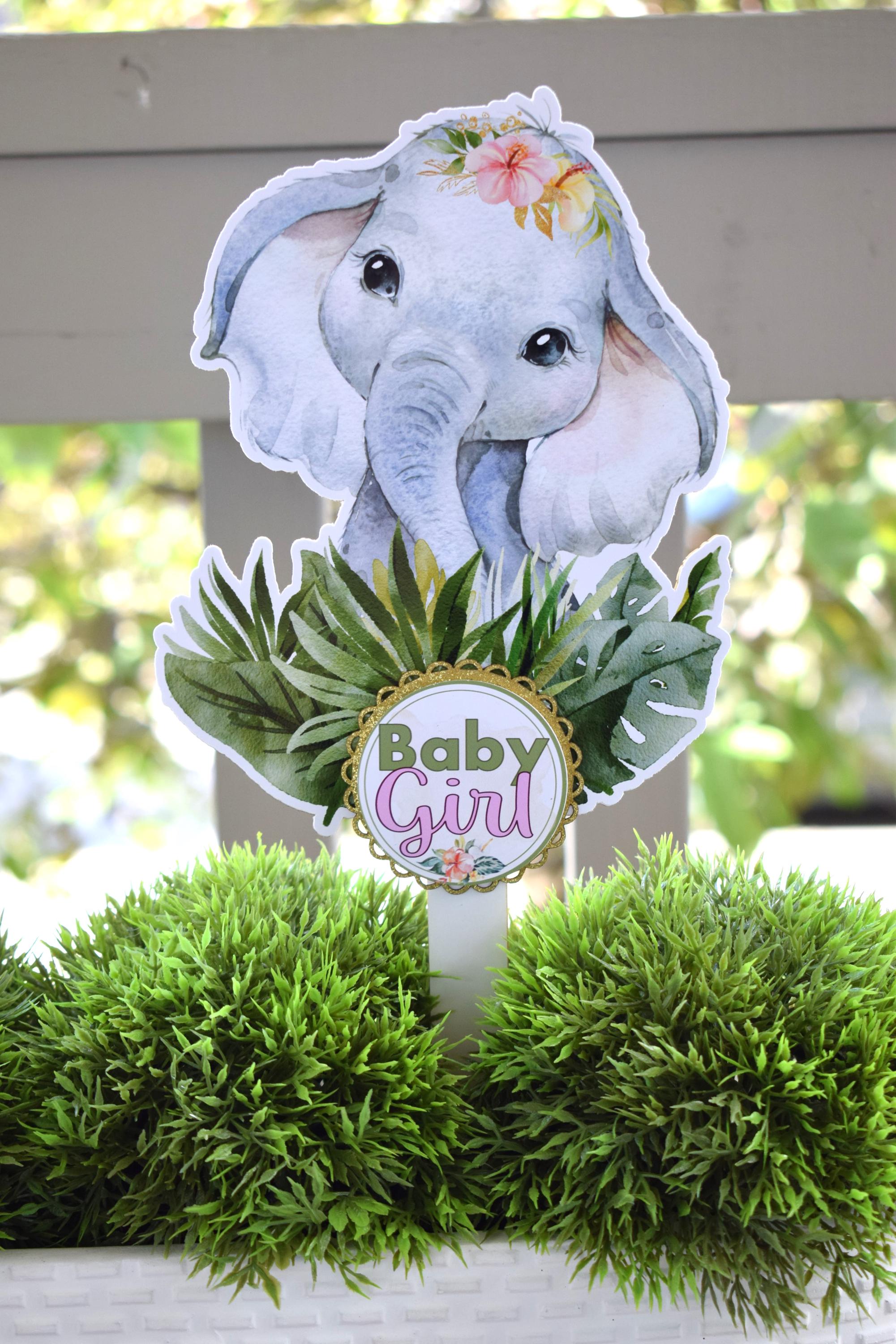 Girl Tropical Elephant Cake Toppers, Safari Baby Shower Party, Elephant Baby Shower Centerpieces Decorations, Room Decor, Mom Gifts- S0001