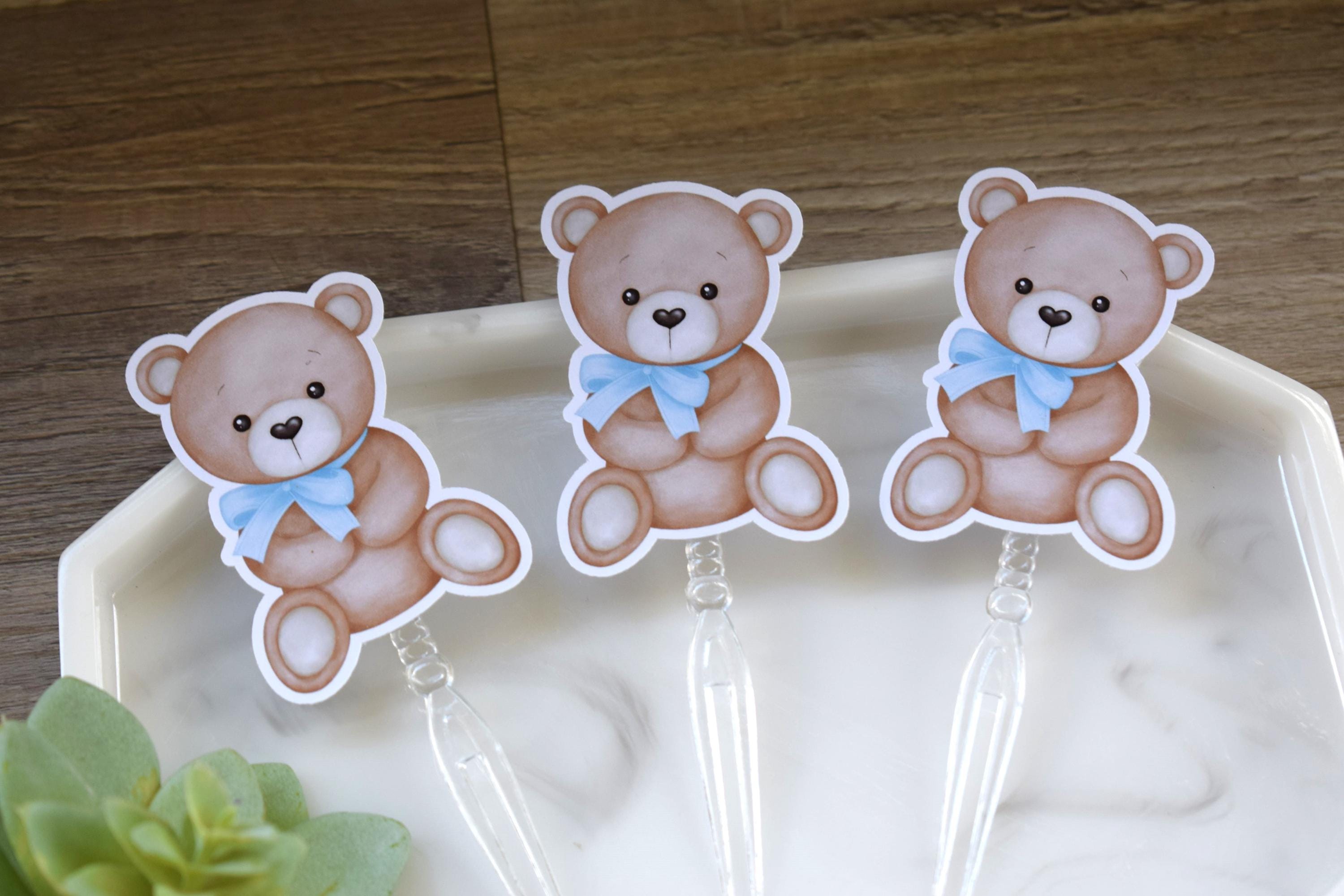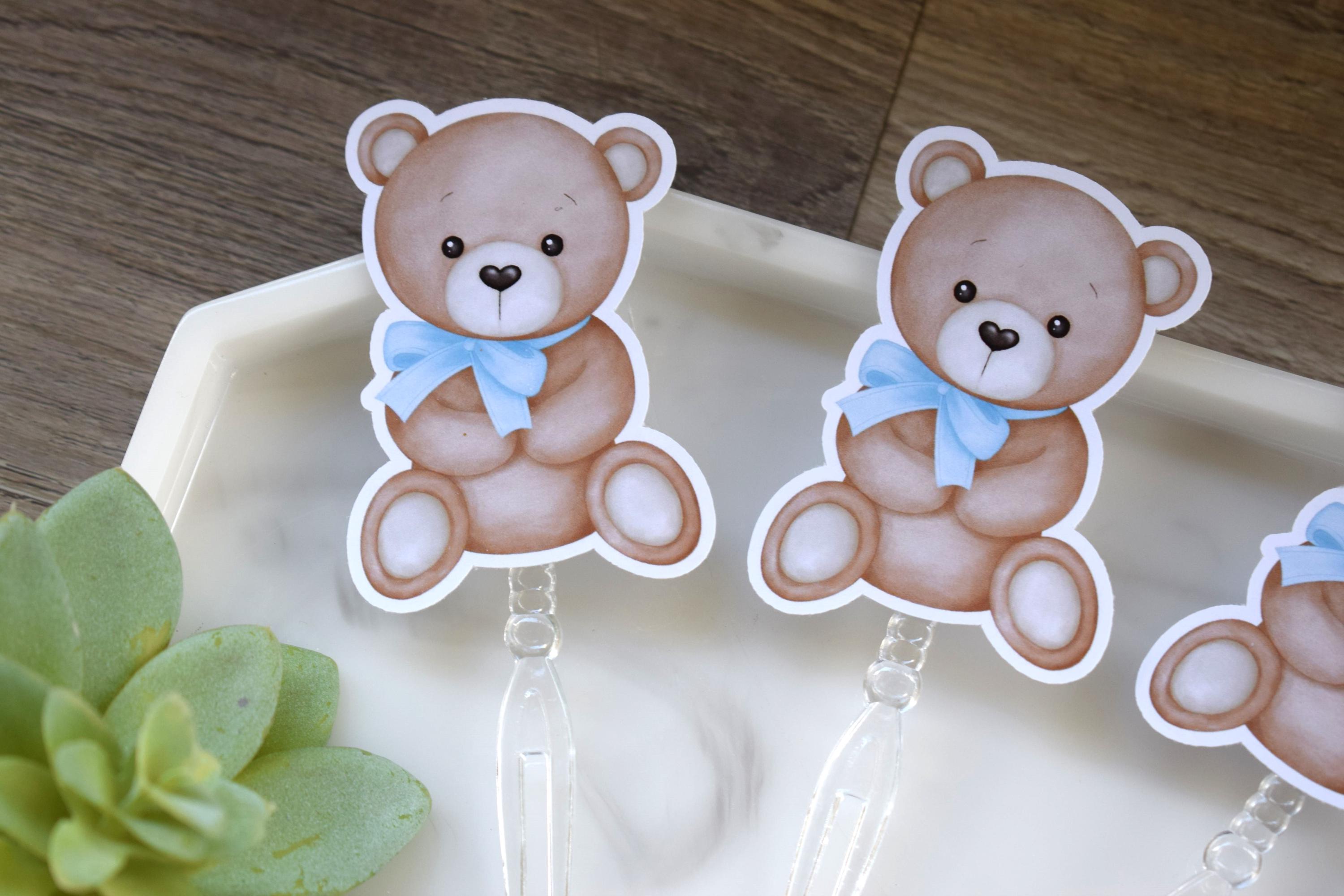 12 Boy Teddy Bear Cupcake Toppers, Baby Shower and Party, Cupcake, Bear Baby Shower Decorations - S00014