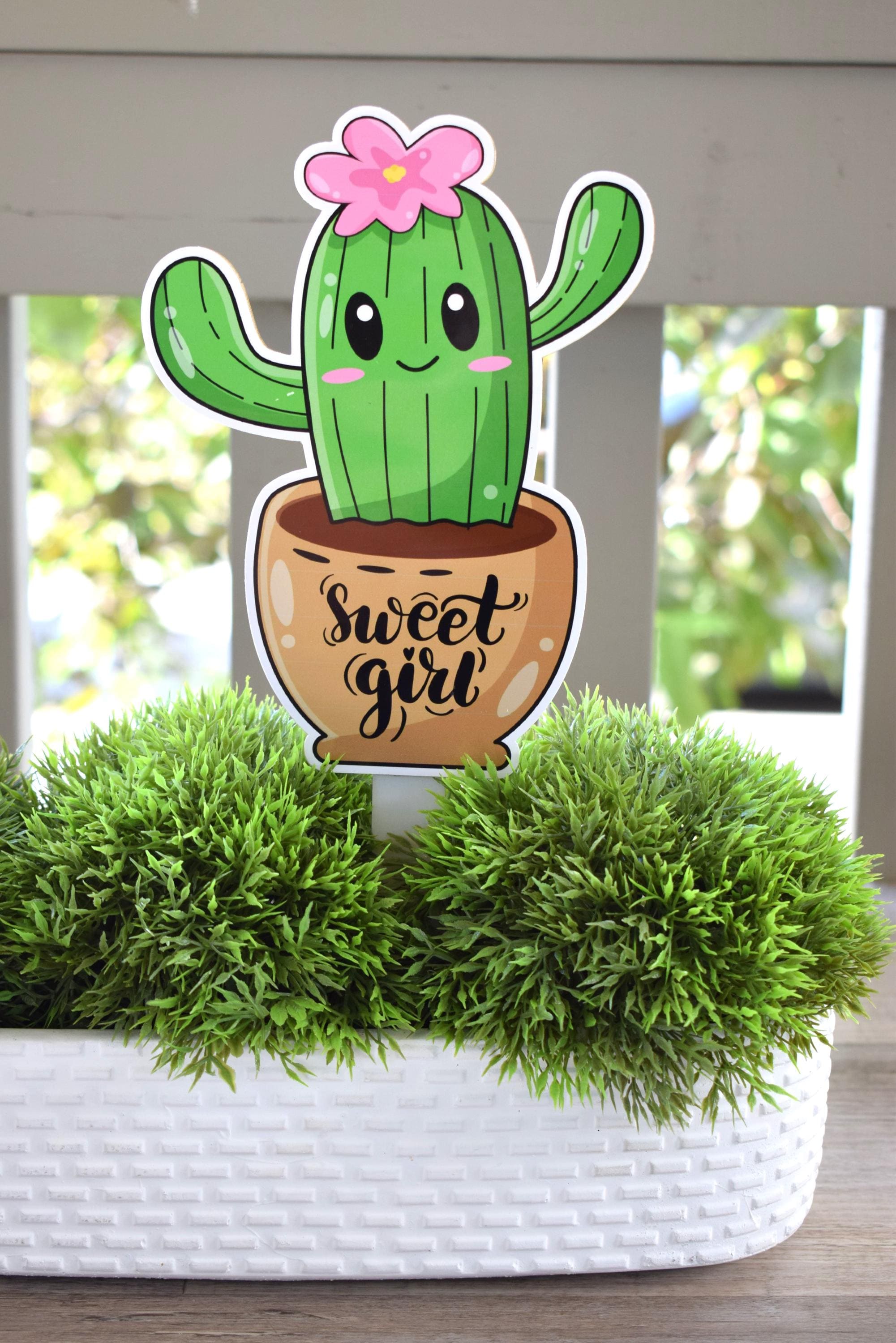 Girl Cactus Cake Toppers, Cactus Baby Shower Party, Flower Girl Cactus Baby Shower Centerpieces Decorations, Room Decor, Mom Gifts - S00015
