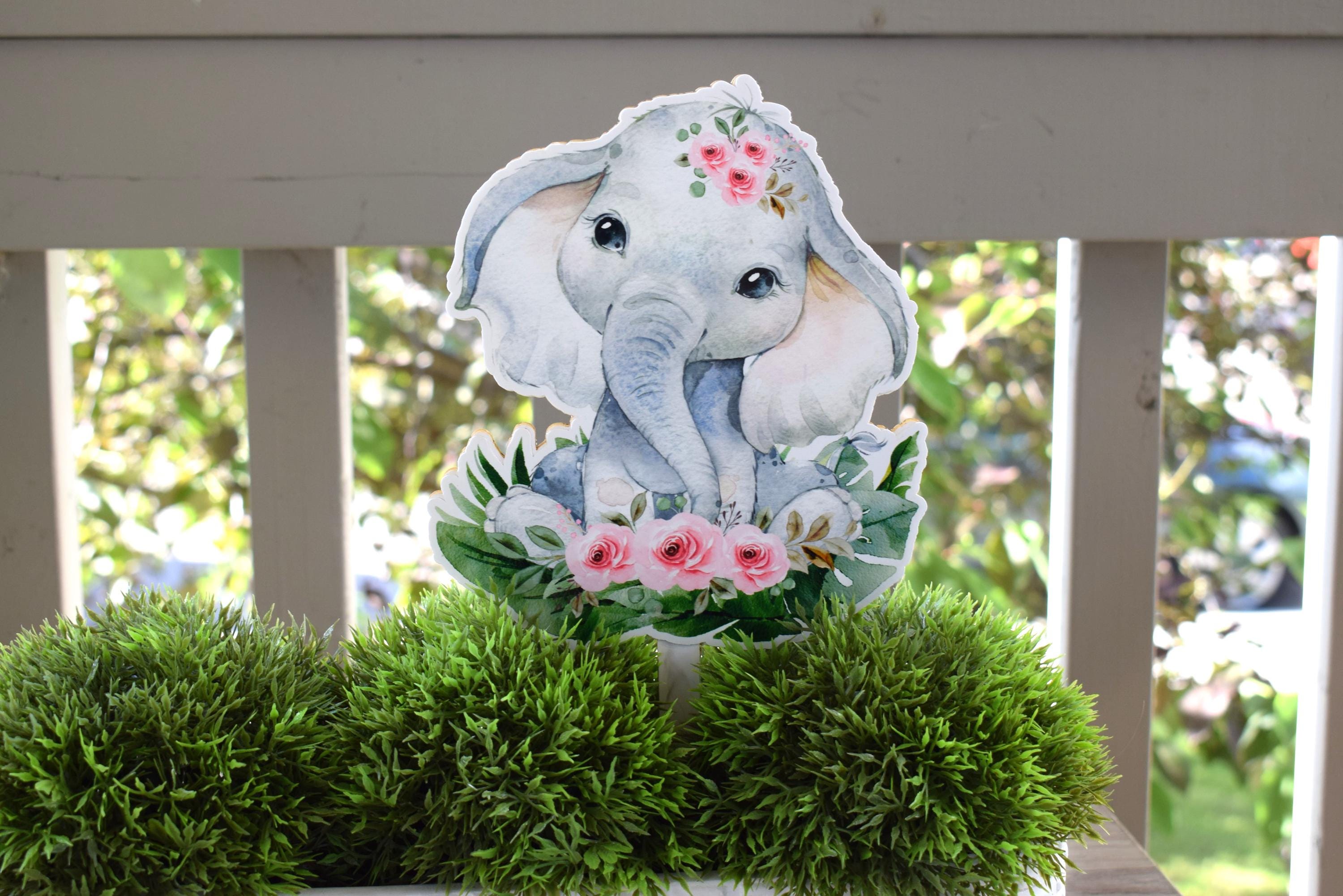 Girl Pink Rose Elephant Cake Toppers, Safari Baby Shower Party, Elephant Baby Shower Centerpieces Decorations, Room Decor, Mom Gifts- S0001