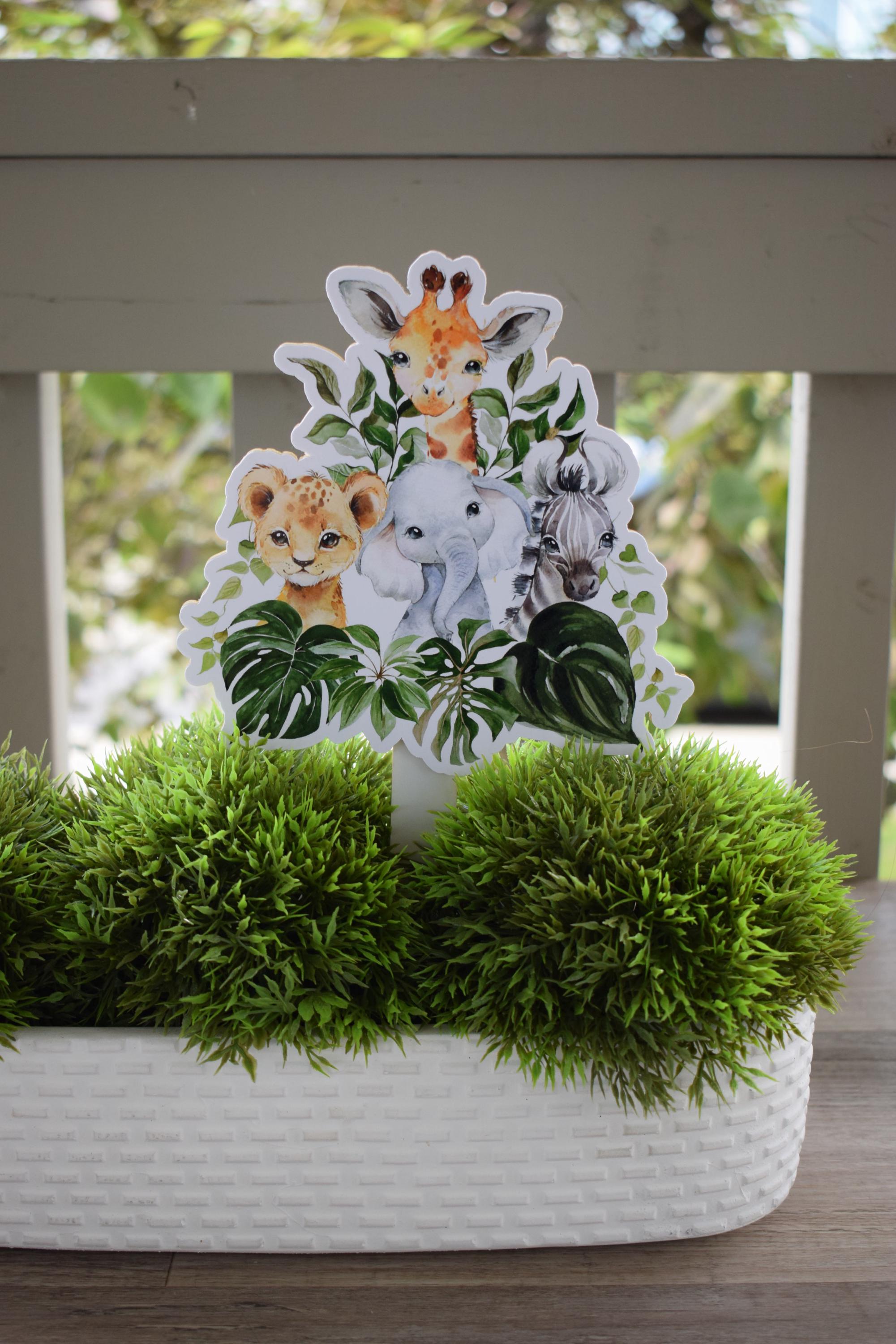 Jungle Safari Topper For Baby Shower Or Party, Party Decor, Baby Shower Centerpieces Decorations, Room Nursery Decor, New Mom Gifts - S0002